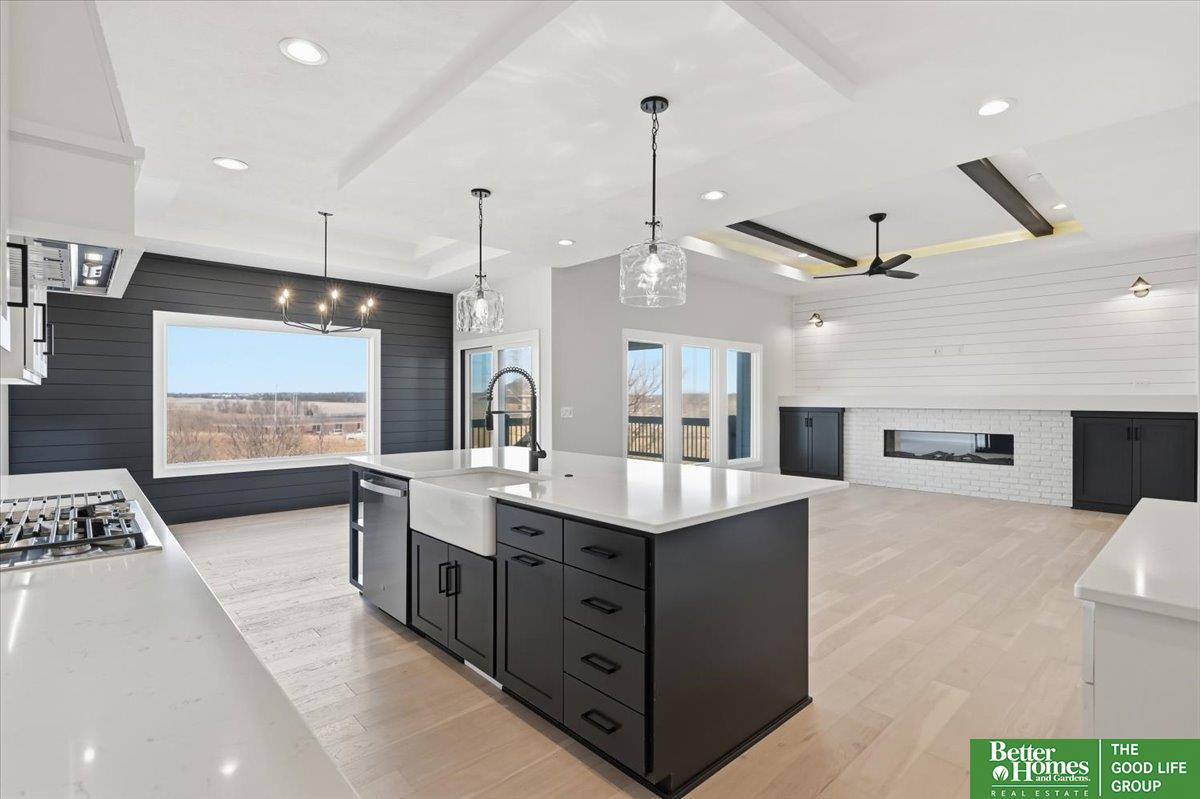 Showcase Homes beautiful split bedroom ranch plan w/ 4 car garage. On a west facing walk out lot! Generous upgrades and modern finishes throughout. Beautiful great room w/ linear fireplace, shiplap wall & built in cabinets that make a big statement. Gorgeous kitchen w/ custom cabinets and shelving, 36" gas cooktop, soft close drawers & doors, wood cabinet hood, large island w/ quartz countertops & spacious walk-in pantry. Private primary suite tucked away from the main part of the home and other bedrooms. Primary has large closet that connects to laundry room. Awesome finished basement w/ large rec area as well as 2nd fireplace and wet bar with tabletop island, 2 bedrooms w/ walk in closets, 3/4 bath, and large storage room. The house is a must see! Will be complete 6/15/2026. Photos of same floorplan but different home. List agent has equity.