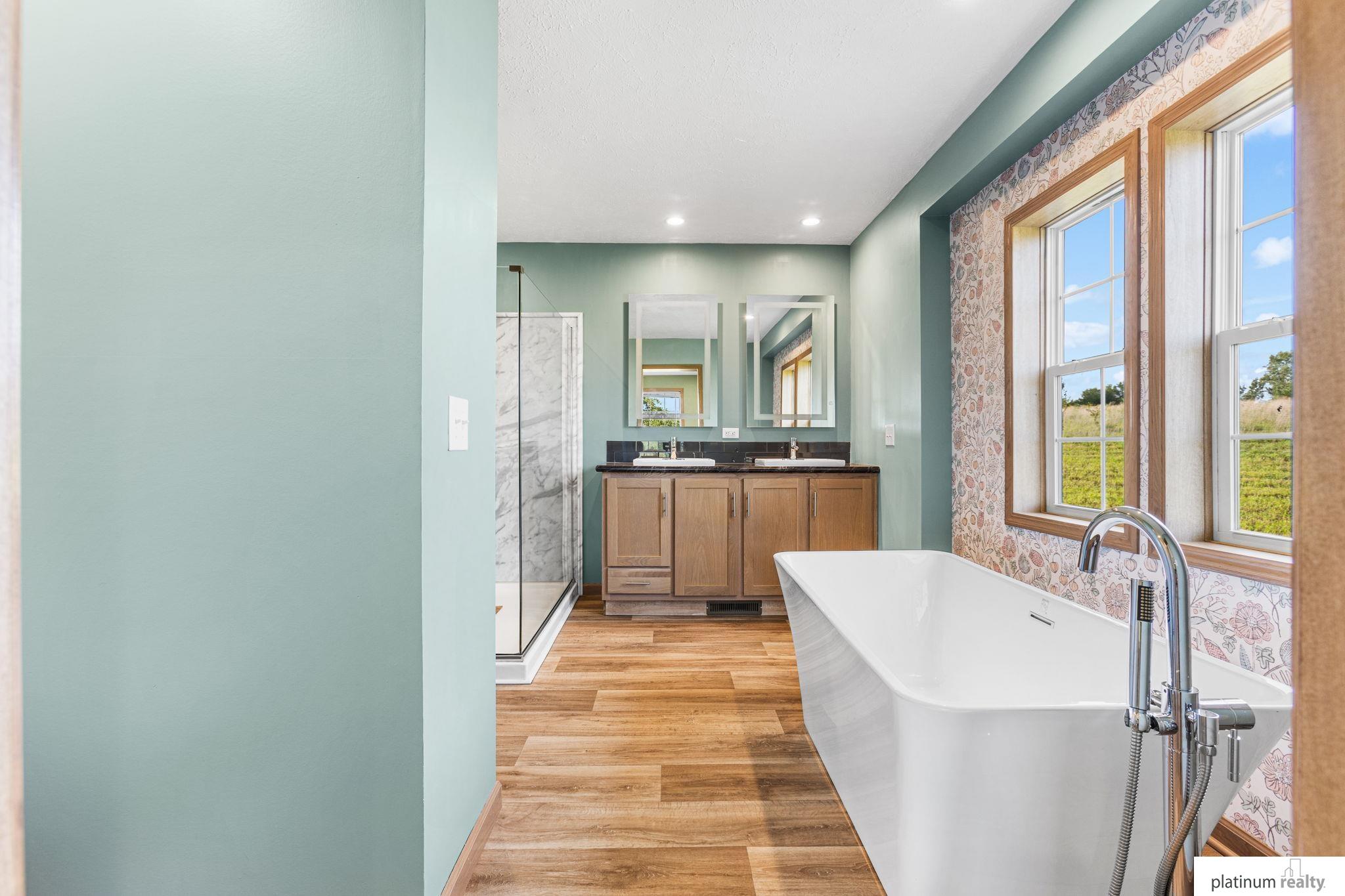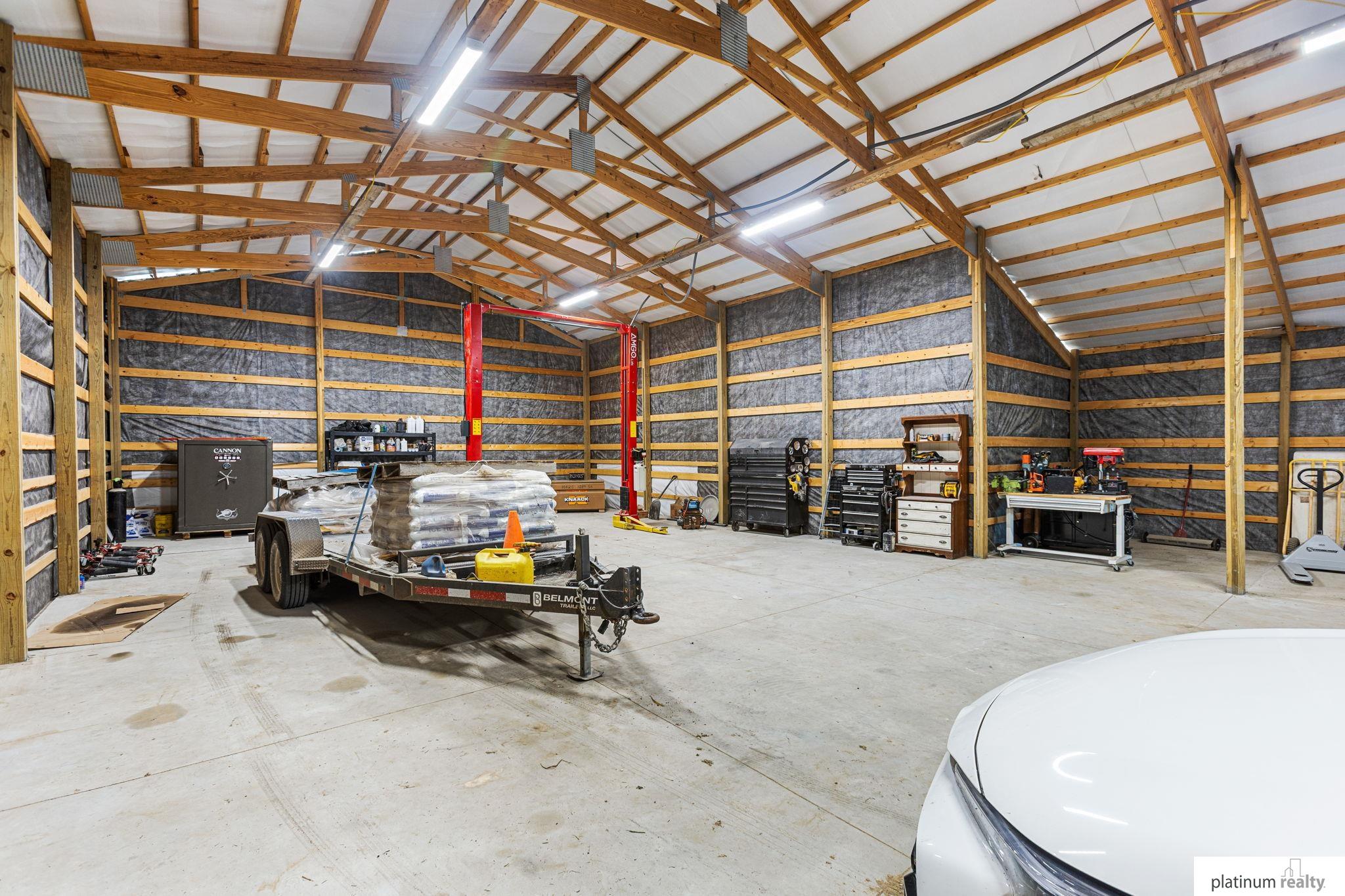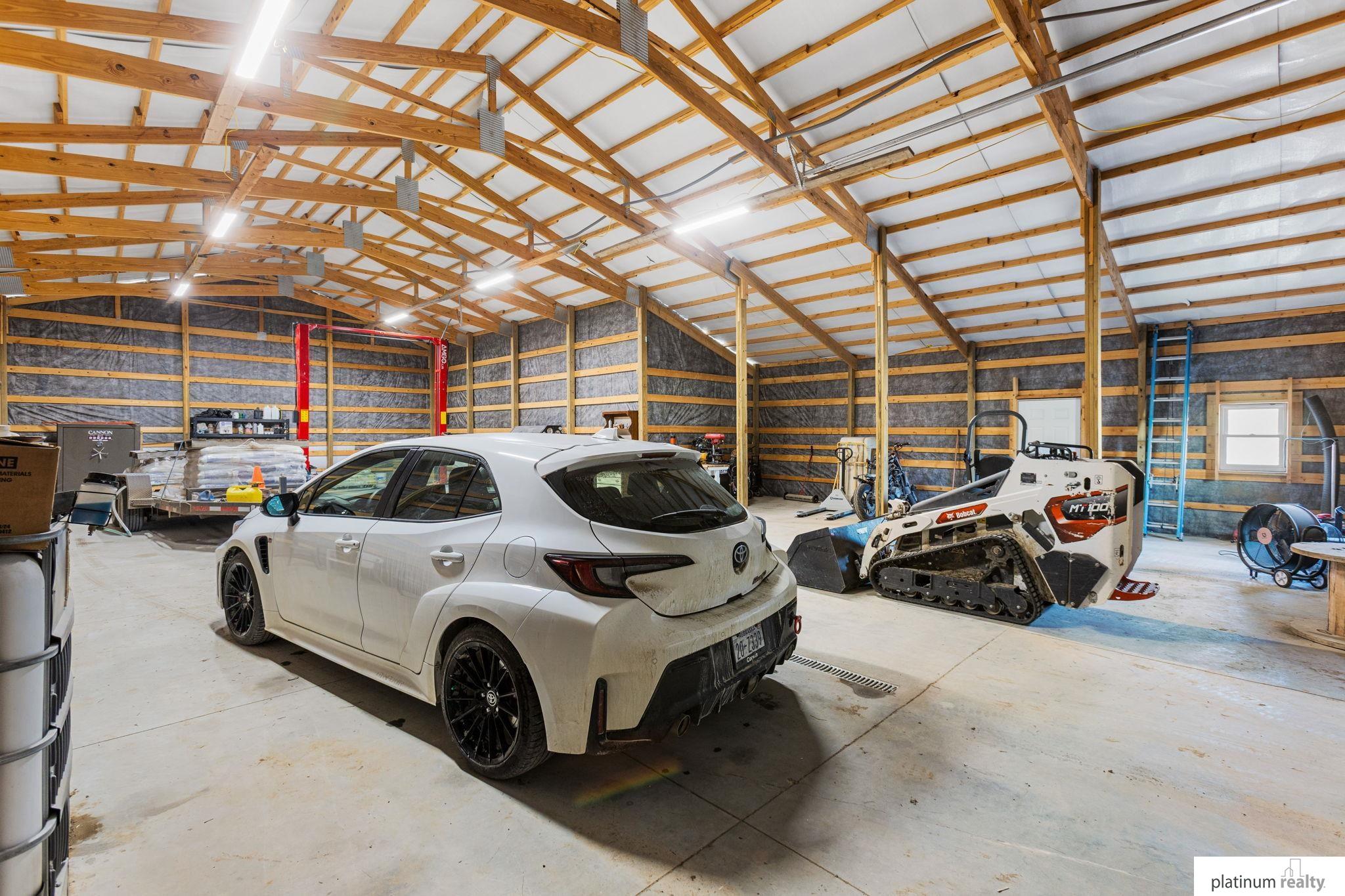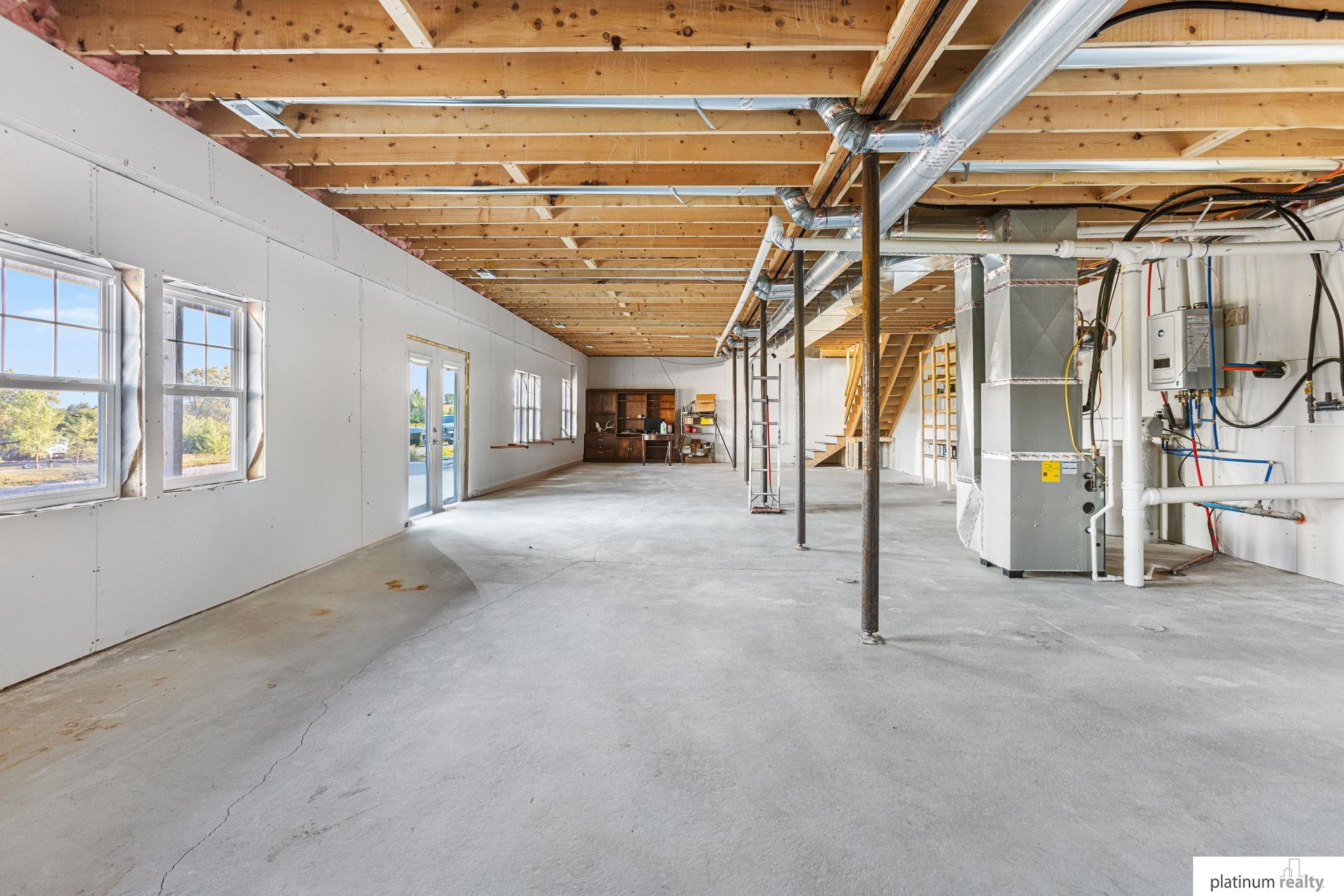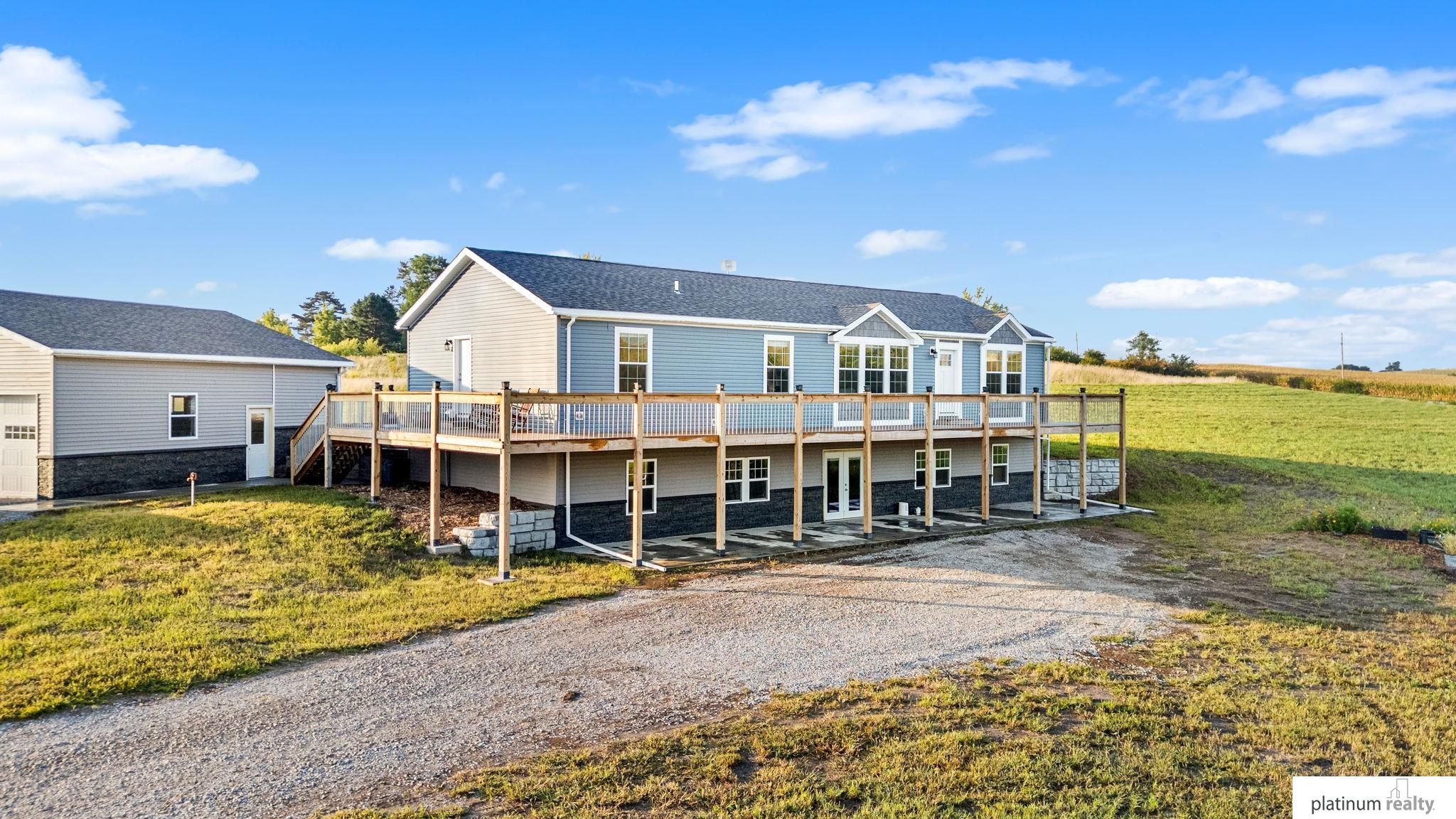 Nestled on 23.71 acres of serene countryside, this stunning open-concept ranch blends sleek modern design with tranquil rural living. Step from the sweeping front deck—perfect for morning coffee or evening hosting— & into a spacious living area, boasting ample storage & electric fireplace. Kitchen is outfitted with a gas range, stainless steel appliances, rich cabinetry, & ample sized pantry. Primary suite offers a spa like en-suite bath- double vanity, expansive shower, soaker tub, & generous walk-in closet. Two additional bedrooms, full bathroom, & spacious laundry room complete the main floor. Downstairs, the unfinished walkout basement is ready for your final touches- plumbed for full bath & wet bar. Outside, a 3-car garage— plumbed for 1/2 bath (32x32) & separate shop (30x64 + 12x32) offer endless possibilities for hobbies, storage, & workspace. Wood boiler is pipelined to supply warmth to all interiors— ensuring easy & costless heating. New roof on house in 2026.