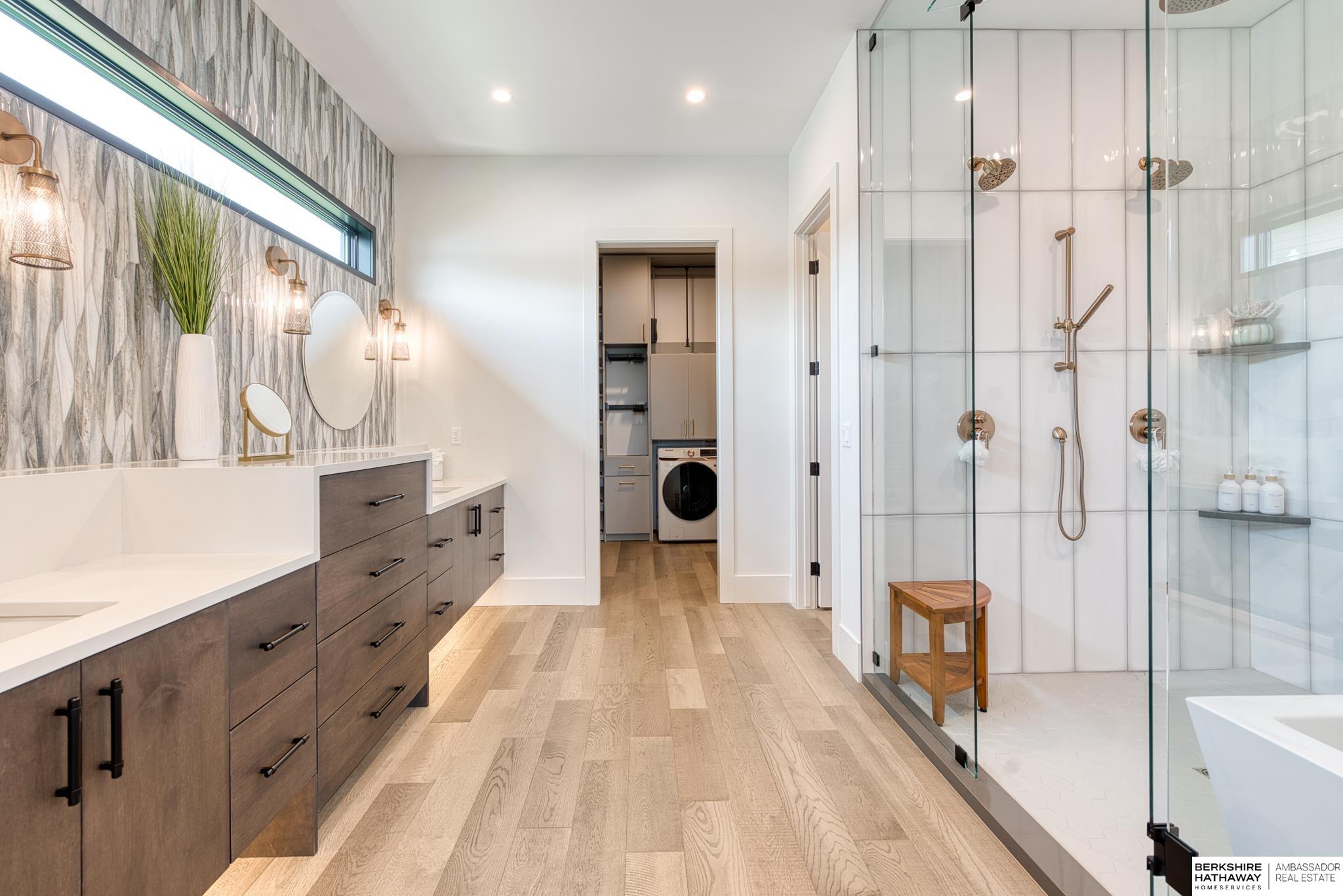 MODEL HOME - 2023 Street of Dreams winner. Built by Art of a Craftsman, this stunning Hills Farm lake house blends modern living with hints of rustic character. The 1.5-story design showcases clean lines, soaring 20-foot ceilings, and an abundance of natural light. Inside, you'll find 4 spacious bedrooms, 5 stylish bathrooms, and 2 offices. Primary suite offers a luxurious wet-room spa escape connected to a custom closet with a secondary laundry. Modern glass railing accents the loft living area, while the oversized 3-car garage provides generous space. Entertain in style at the speakeasy-inspired bar, where moody lighting and upscale finishes create an unforgettable atmosphere. Double doors open to a resort-like outdoor setting featuring an outdoor kitchen and covered living & dining areas. A perfect blend of luxury, comfort, and character, this home is a true showcase of timeless design and modern living. Photos are of similar home.