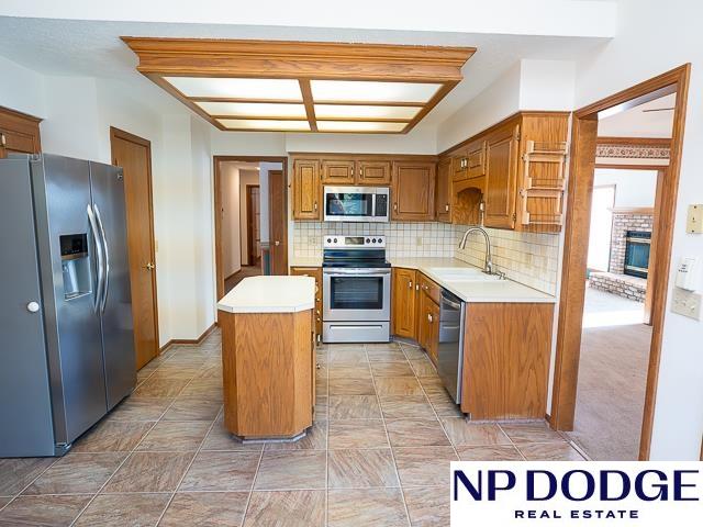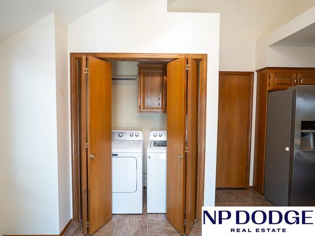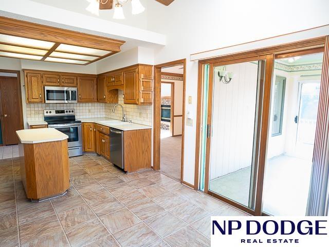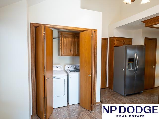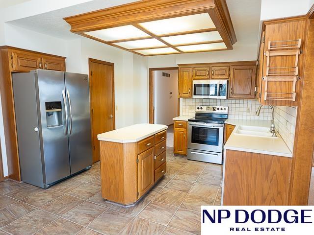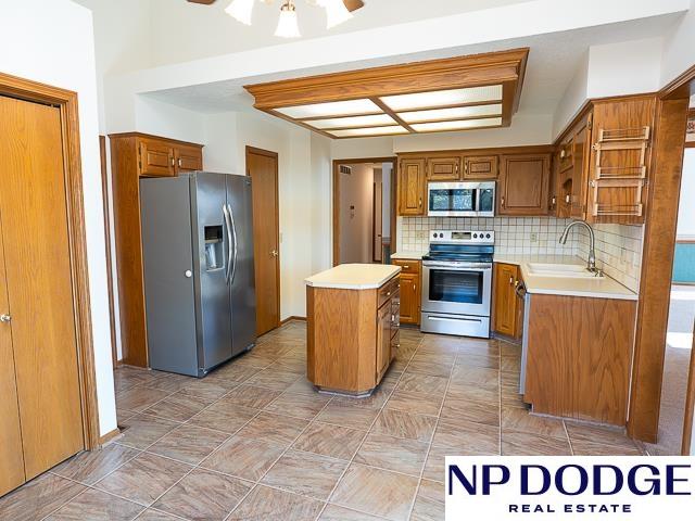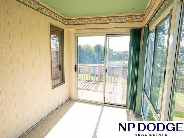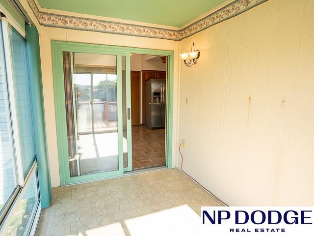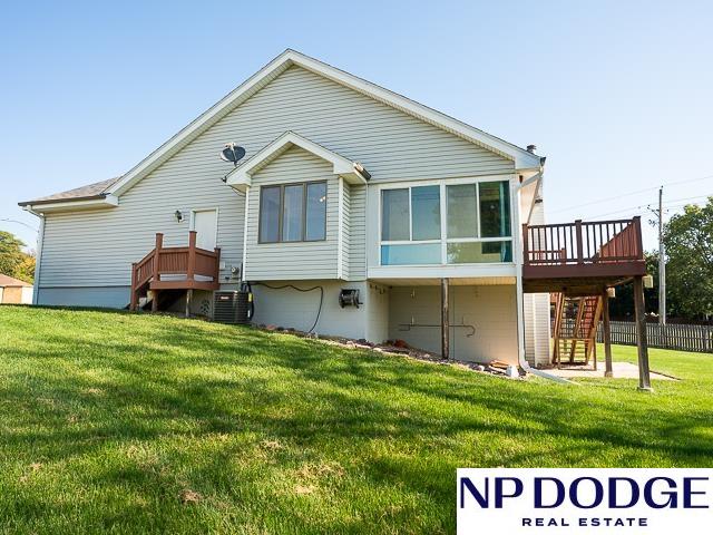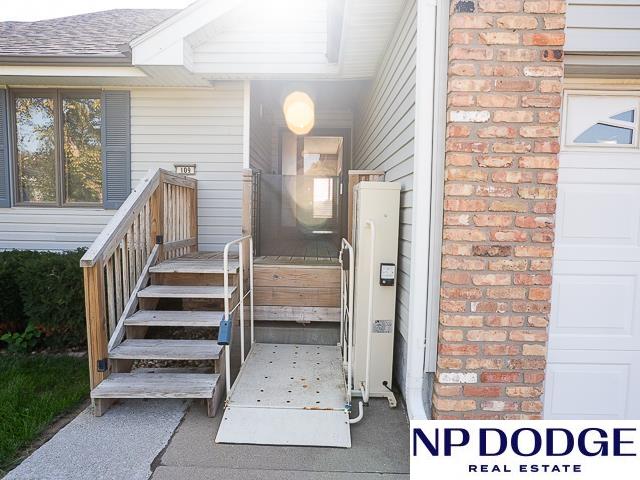 Tucked away in a quiet cul-de-sac in Papillion’s Cottonwood neighborhood, this charming ranch home is full of potential! It features two cozy fireplaces, a bright 3-season room perfect for relaxing or entertaining, and an unfinished walk-out basement ready for your custom touch. Thoughtful accessibility features include an elevator to the front door and a zero-entry primary shower. The spacious, fully fenced backyard offers endless possibilities for outdoor fun, gardening, or simply enjoying your own private retreat. While it may need a few cosmetic updates, this home has great bones, character, and a location that’s hard to beat. Whether you're looking to renovate or move right in and make it your own over time, this is a fantastic opportunity to build equity and create your dream home in one of Papillion’s wonderful neighborhoods!