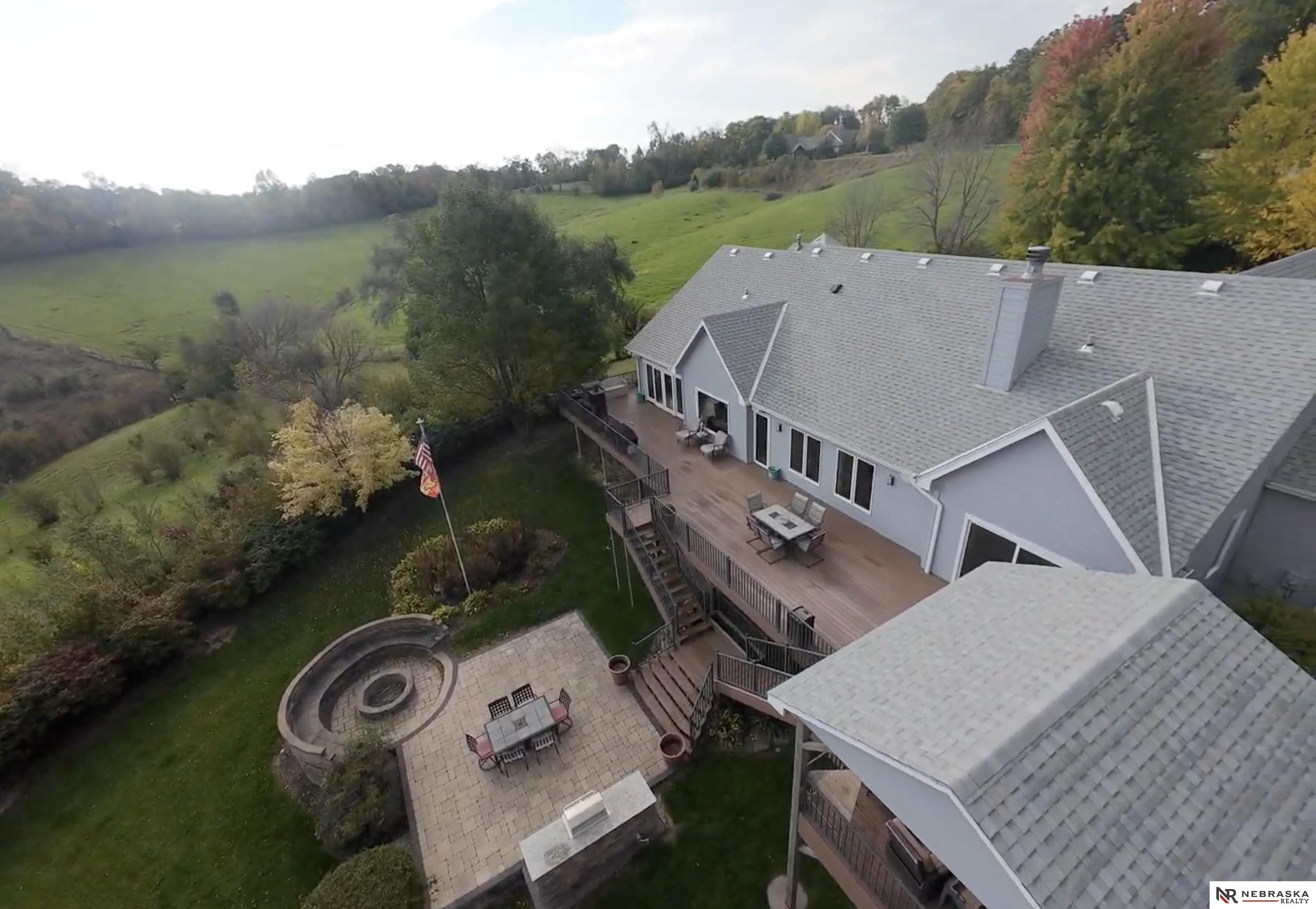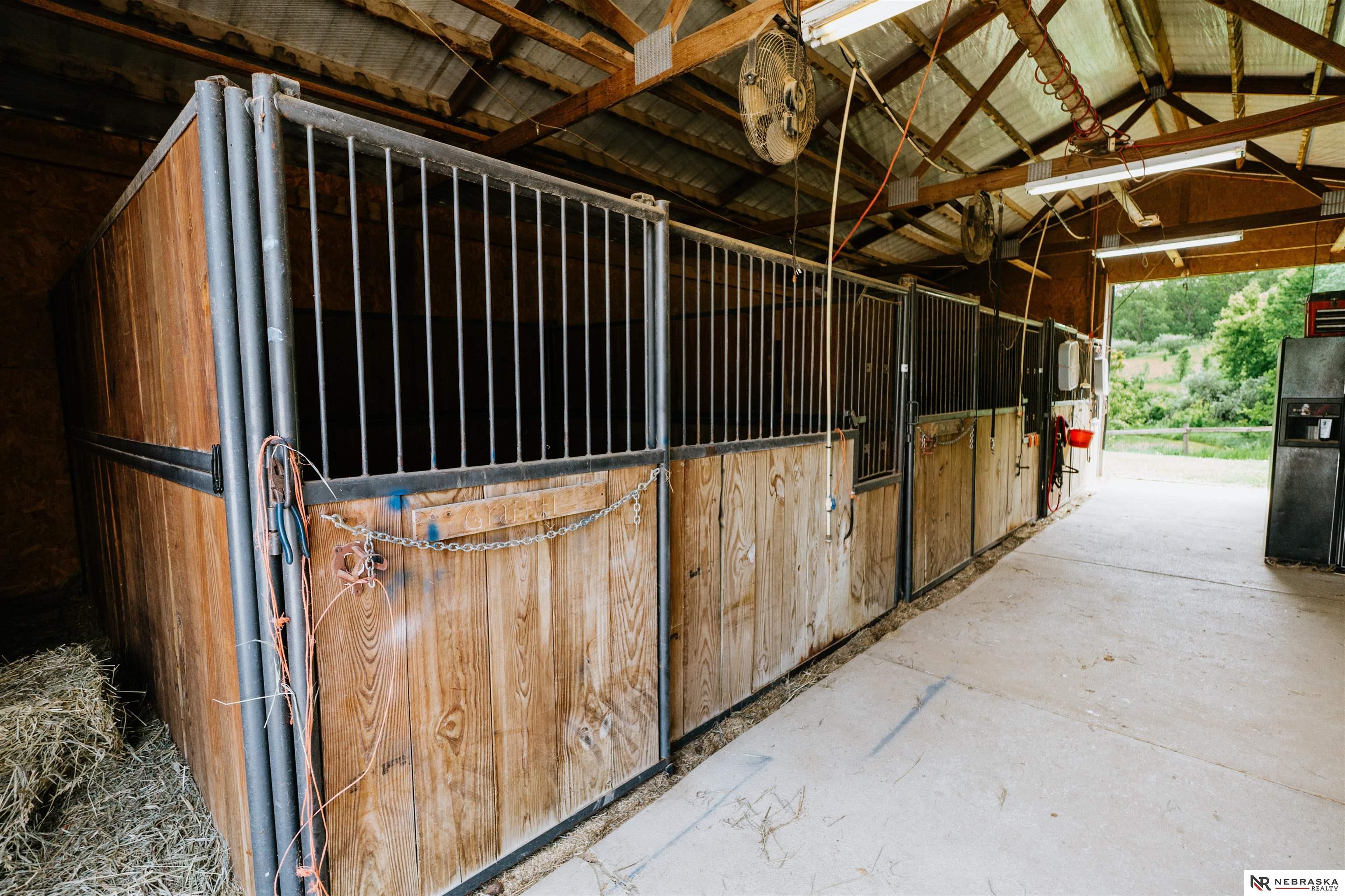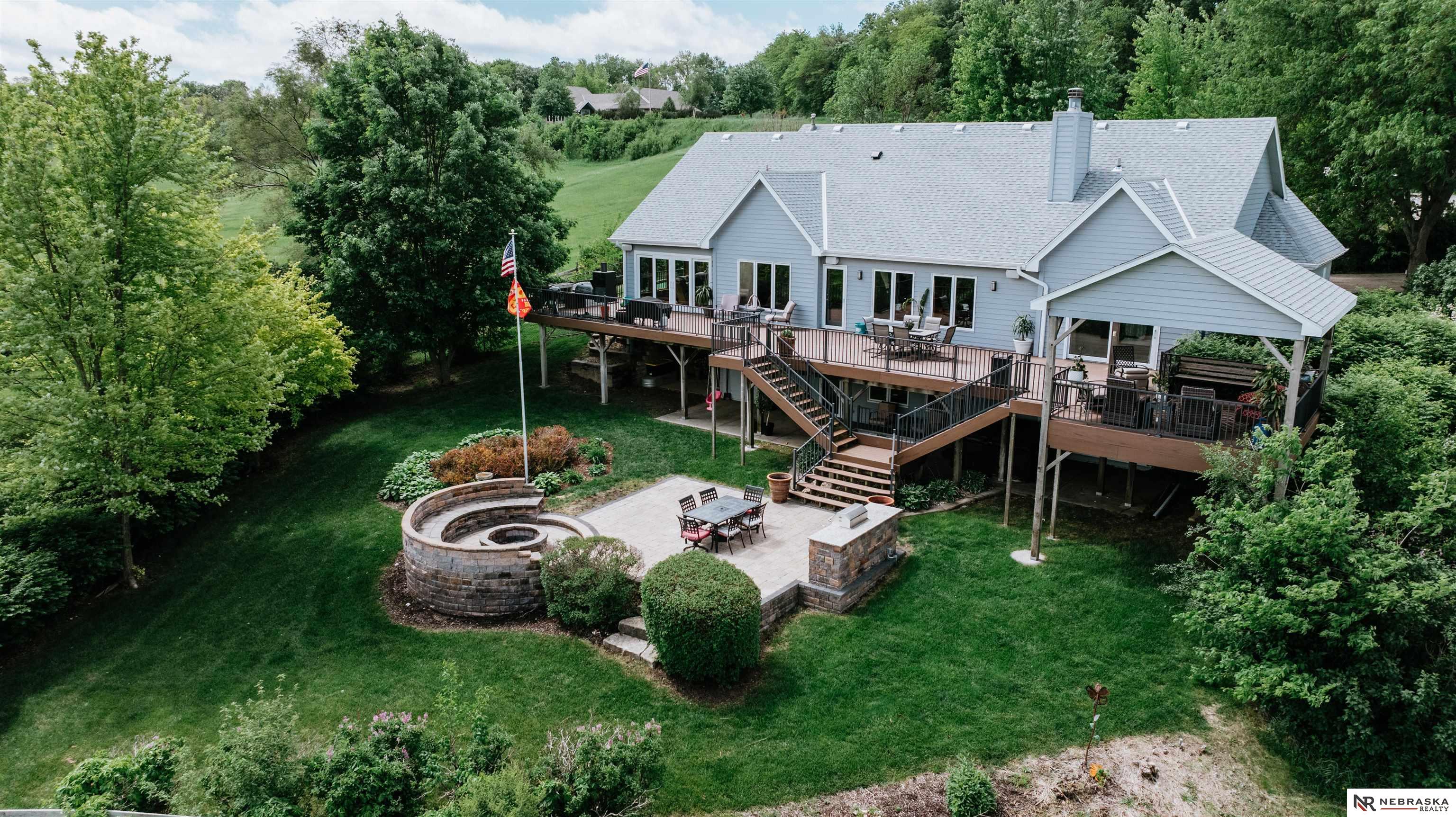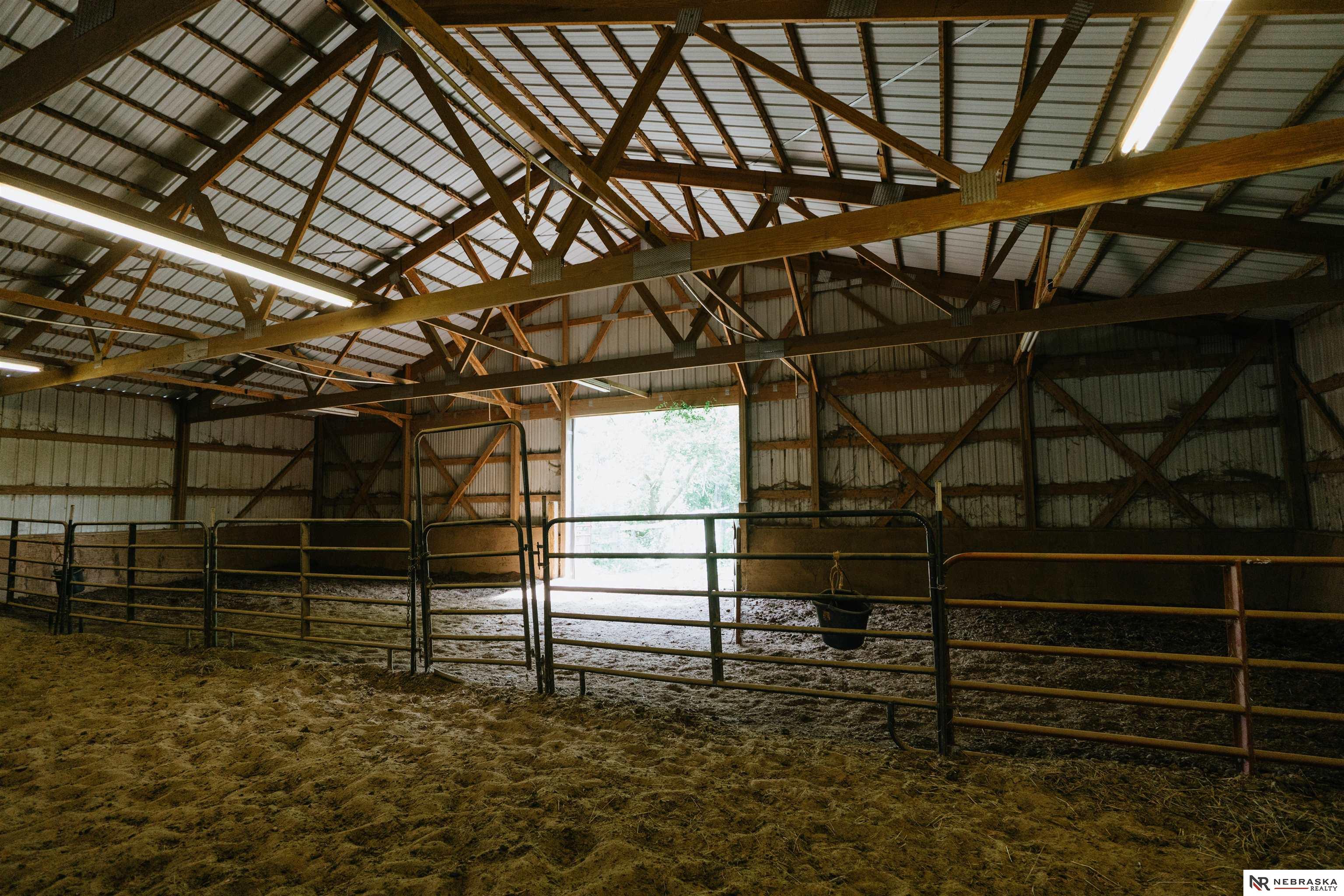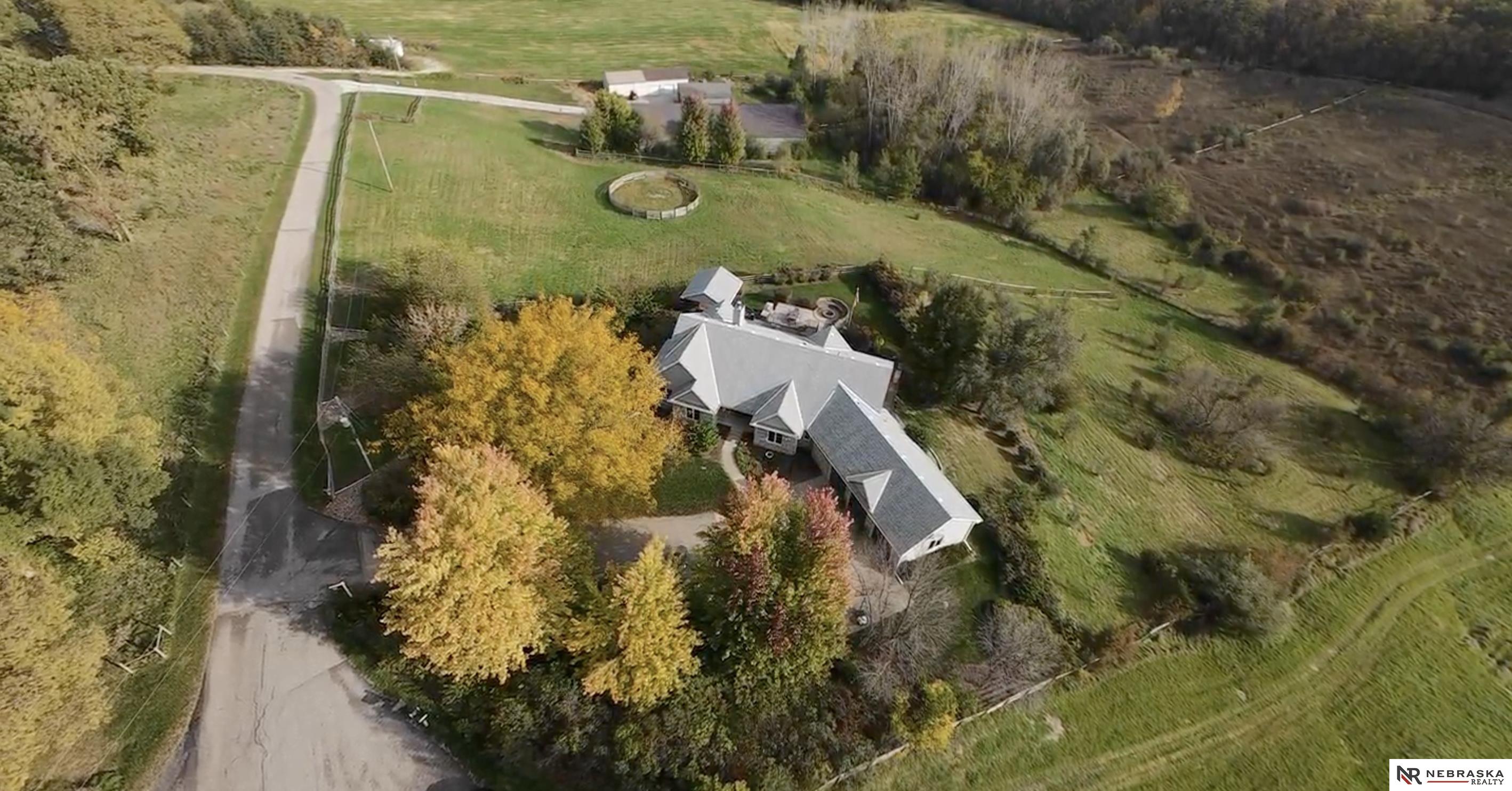 Beautifully updated ranch home on 9.47± serene acres just minutes from Omaha! The main level now features fresh, modern paint that brightens the open layout, highlighted by a stone fireplace and stunning views. The chef’s kitchen includes stainless steel appliances, a huge island, double oven, beverage fridges, and walk-in pantry. The spacious primary suite offers deck access, dual walk-in closets, whirlpool tub, and walk-in shower. The finished basement is perfect for entertaining with a home theater, wet bar, and two additional bedrooms. Outdoor living shines with a wraparound deck, gazebo, 10-person spa, fire pit, and outdoor kitchen. Acreage includes multiple fenced areas and three versatile outbuildings, including a large indoor arena and barn. A peaceful, private retreat with thoughtful details throughout—truly a rare find so close to the city! AMA.