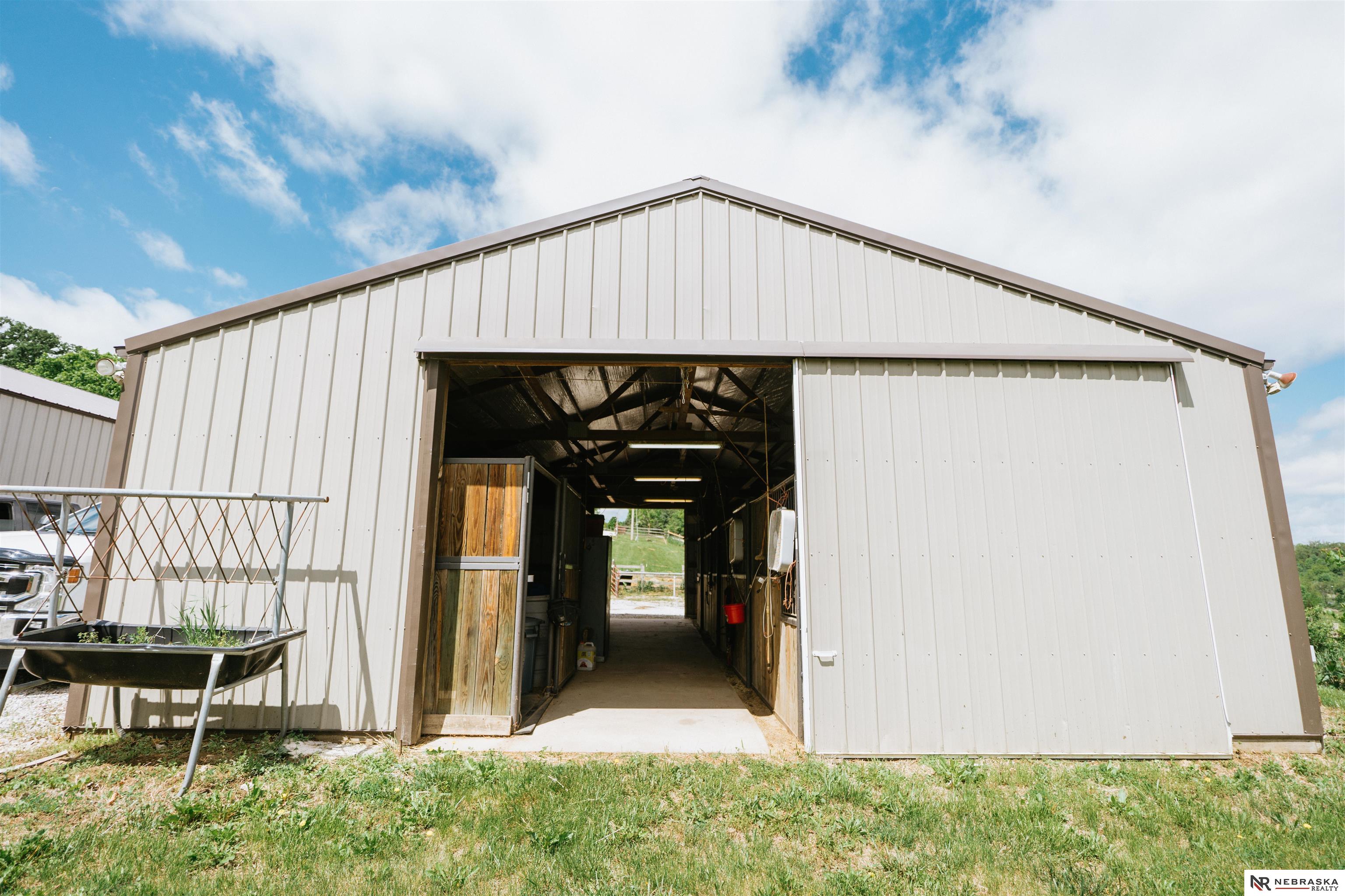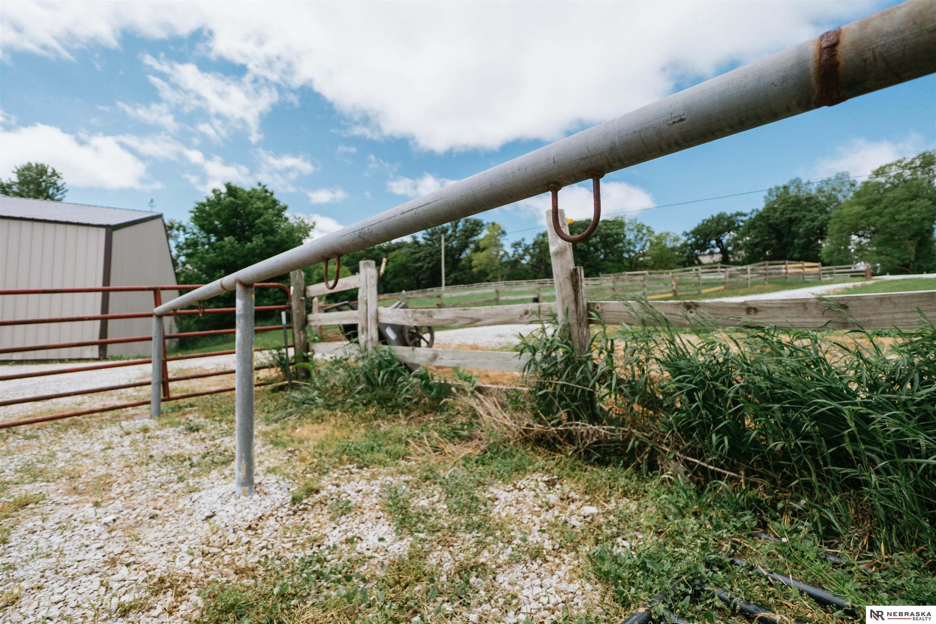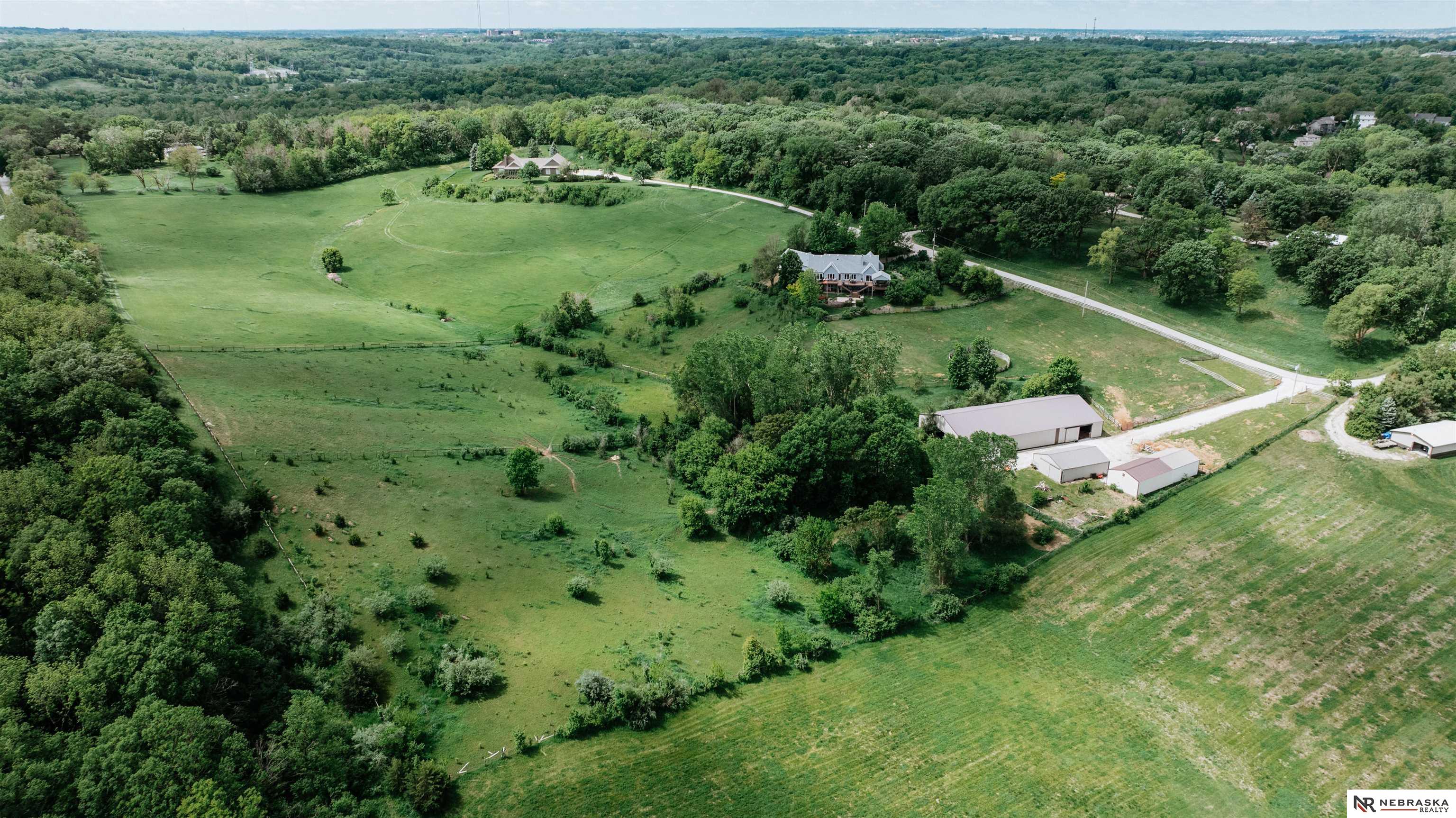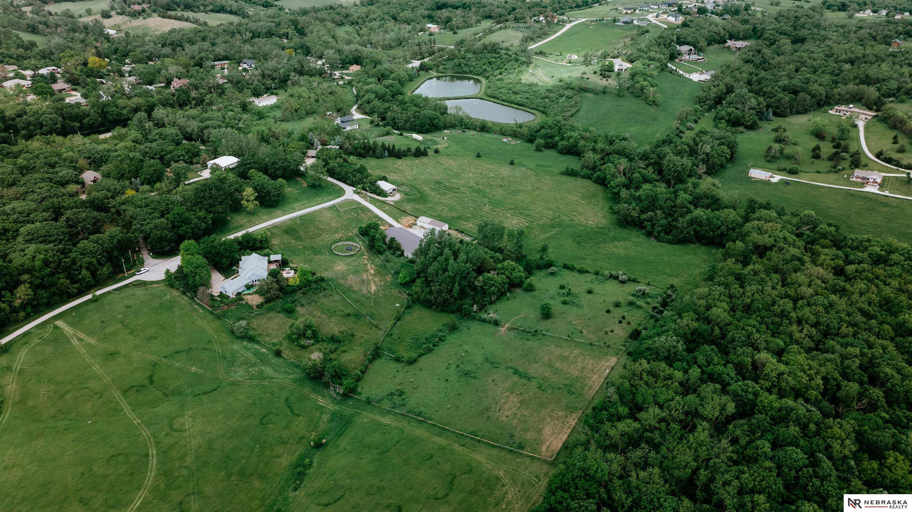 Beautifully updated ranch home on 9.47± serene acres just minutes from Omaha! The main level now features fresh, modern paint that brightens the open layout, highlighted by a stone fireplace and stunning views. The chef’s kitchen includes stainless steel appliances, a huge island, double oven, beverage fridges, and walk-in pantry. The spacious primary suite offers deck access, dual walk-in closets, whirlpool tub, and walk-in shower. The finished basement is perfect for entertaining with a home theater, wet bar, and two additional bedrooms. Outdoor living shines with a wraparound deck, gazebo, 10-person spa, fire pit, and outdoor kitchen. Acreage includes multiple fenced areas and three versatile outbuildings, including a large indoor arena and barn. A peaceful, private retreat with thoughtful details throughout—truly a rare find so close to the city! AMA.