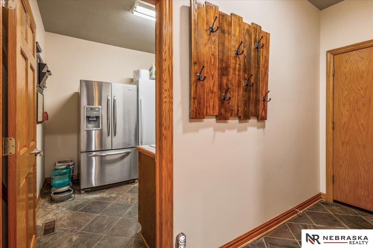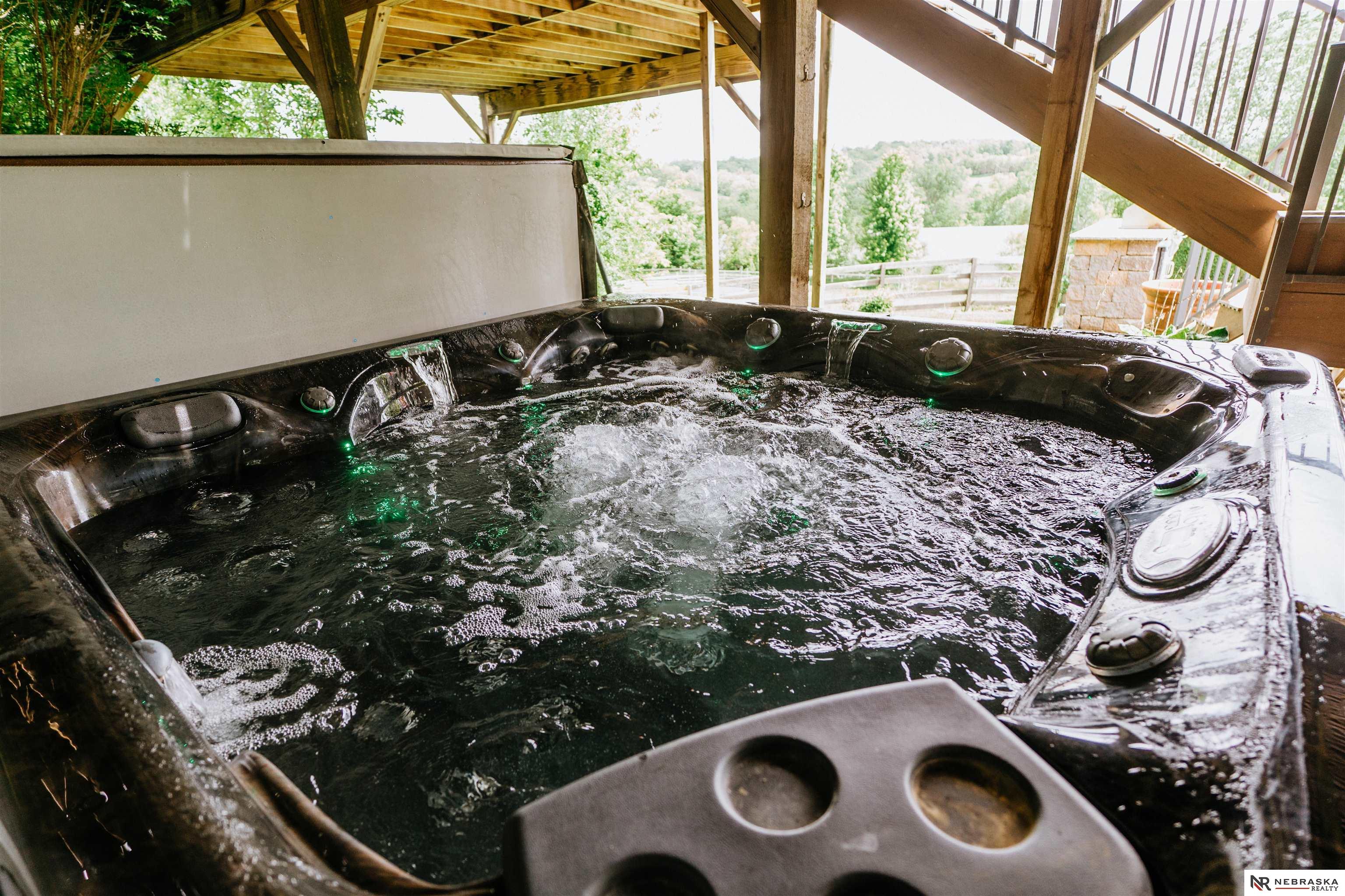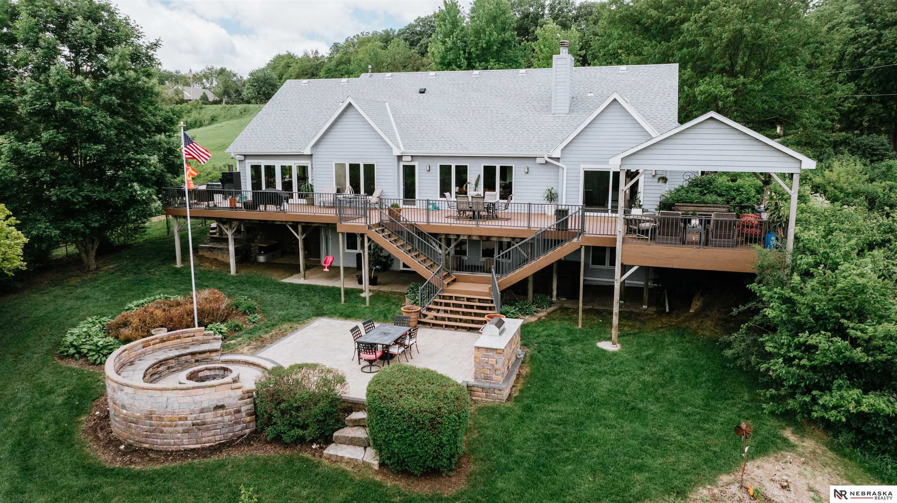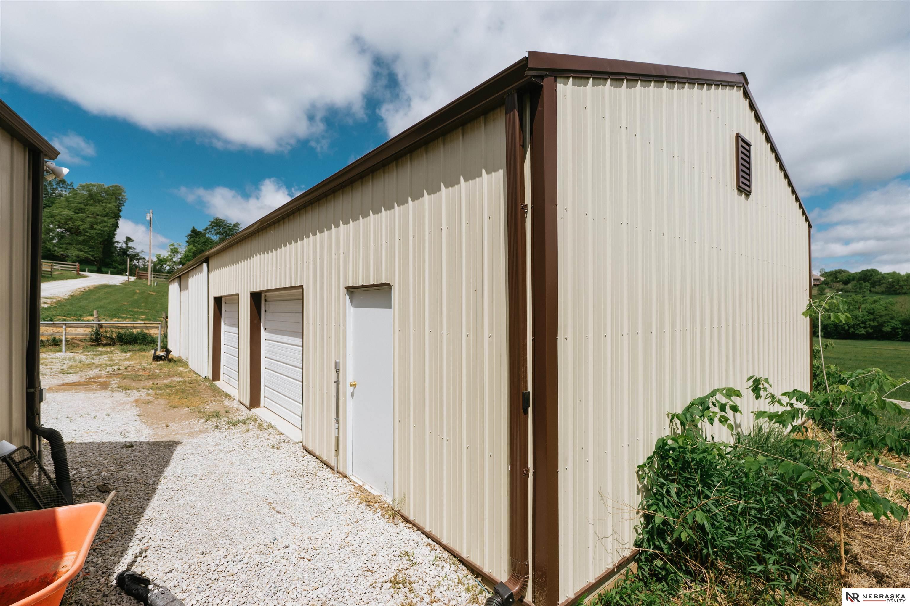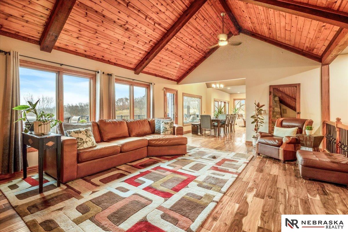 Beautifully updated ranch home on 9.47± serene acres just minutes from Omaha! The main level now features fresh, modern paint that brightens the open layout, highlighted by a stone fireplace and stunning views. The chef’s kitchen includes stainless steel appliances, a huge island, double oven, beverage fridges, and walk-in pantry. The spacious primary suite offers deck access, dual walk-in closets, whirlpool tub, and walk-in shower. The finished basement is perfect for entertaining with a home theater, wet bar, and two additional bedrooms. Outdoor living shines with a wraparound deck, gazebo, 10-person spa, fire pit, and outdoor kitchen. Acreage includes multiple fenced areas and three versatile outbuildings, including a large indoor arena and barn. A peaceful, private retreat with thoughtful details throughout—truly a rare find so close to the city! AMA.