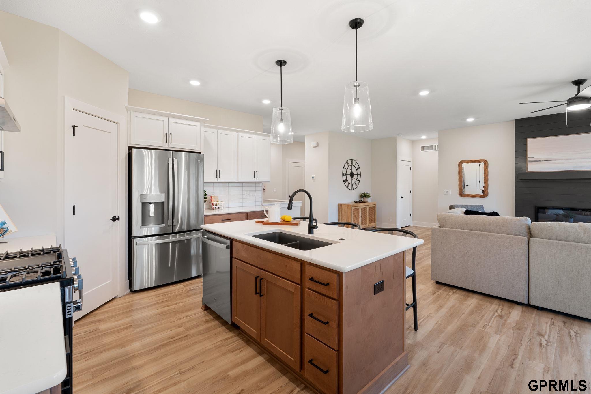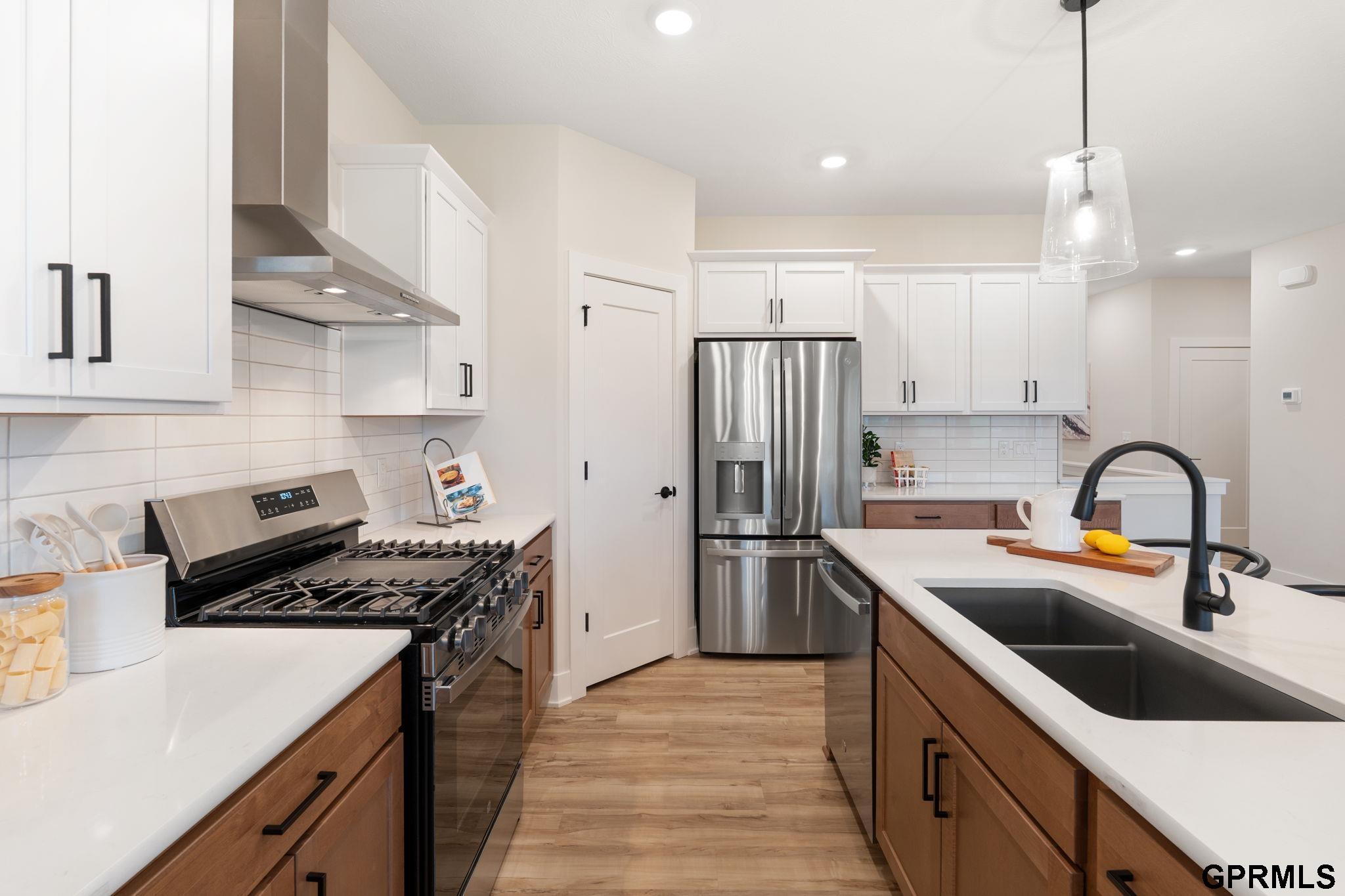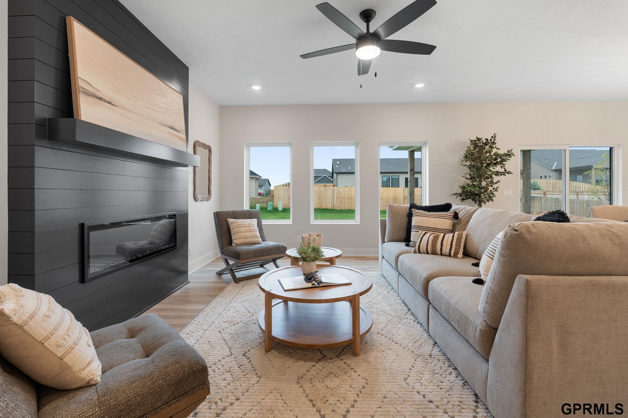 BUILD THIS HOUSE TODAY! The Minden by THI Builders features 5 bedrooms, 3 bathrooms, a fully finished basement, and a 3-car garage. Designed with quality finishes built to last, including quartz countertops, LVP flooring on the main floor, and carpet in all bedrooms. The open-concept main floor flows from the great room to the dining area and kitchen, which includes stainless-steel GE appliances, a large island, ample cabinet storage, and a corner walk-in pantry. Main floor laundry and a drop zone add convenience. The split-bedroom layout separates two bedrooms from the primary suite with ensuite and walk-in closet. The finished basement adds 2 bedrooms, a 3/4 bath, and a large rec room. Photos are of a previously sold Minden floor plan. Build this plan in 8–10 months! Visit our completed model at 21706 Parkview Drive, Gretna, NE.