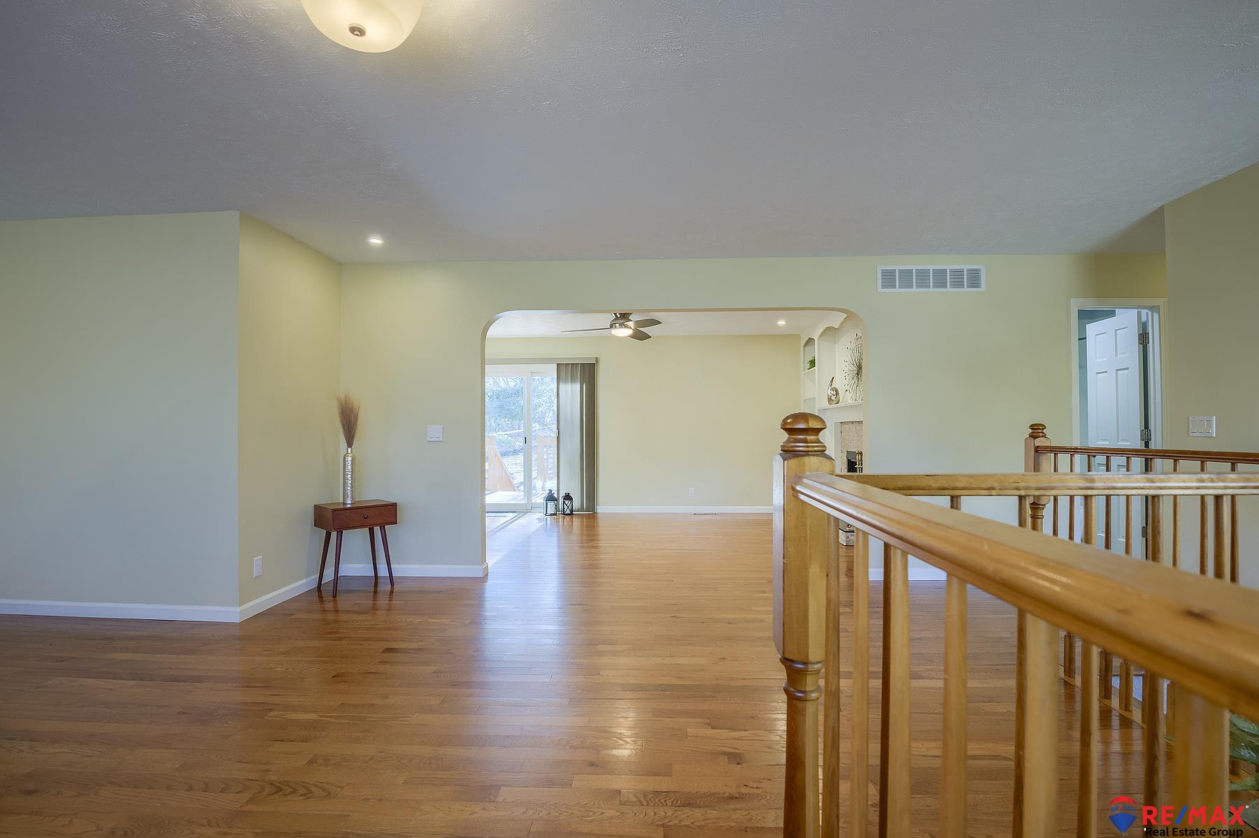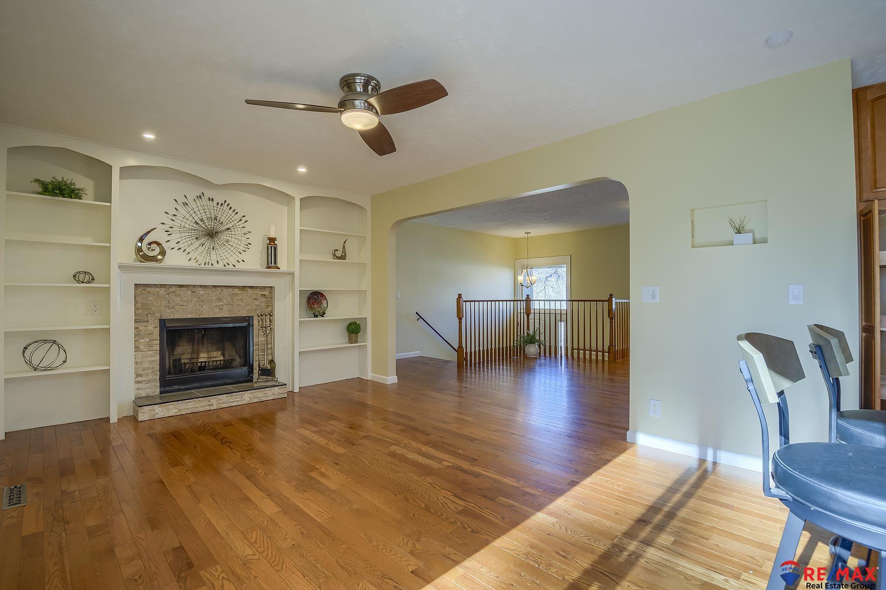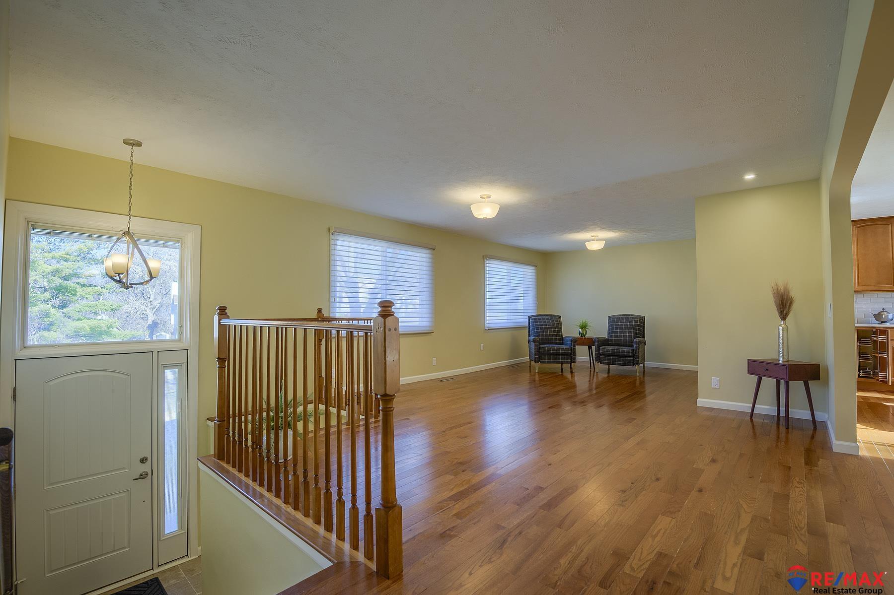 MINI-ACREAGE IN TOWN! 2.5 acres with large 24x38 heated/air conditioned outbuilding w/10 ft. ceilings and is heavily insulated, sealed and has a coated concrete floor. This beautiful home that was remodeled top to bottom with the finest upgrades and is not a typical split entry. Living room plus the family room with fireplace is just off the kitchen which has been totally remodeled with quartz counters and other top features such as roll-out drawers, mixer lift, induction range with double oven, refrigerator, etc. Newer hardwood floors throughout main floor. Large rec room in basement has wet bar with quartz counter, fridge & microwave, full bath with large soaking tub. Hunter Douglas window coverings throughout, extra large parking pad for an RV. Roof, heat/AC 9 years old. House garage is oversized 2-car with insulated doors and openers. There's a 12-zone sprinkler system. Rare gem in Bellevue.
