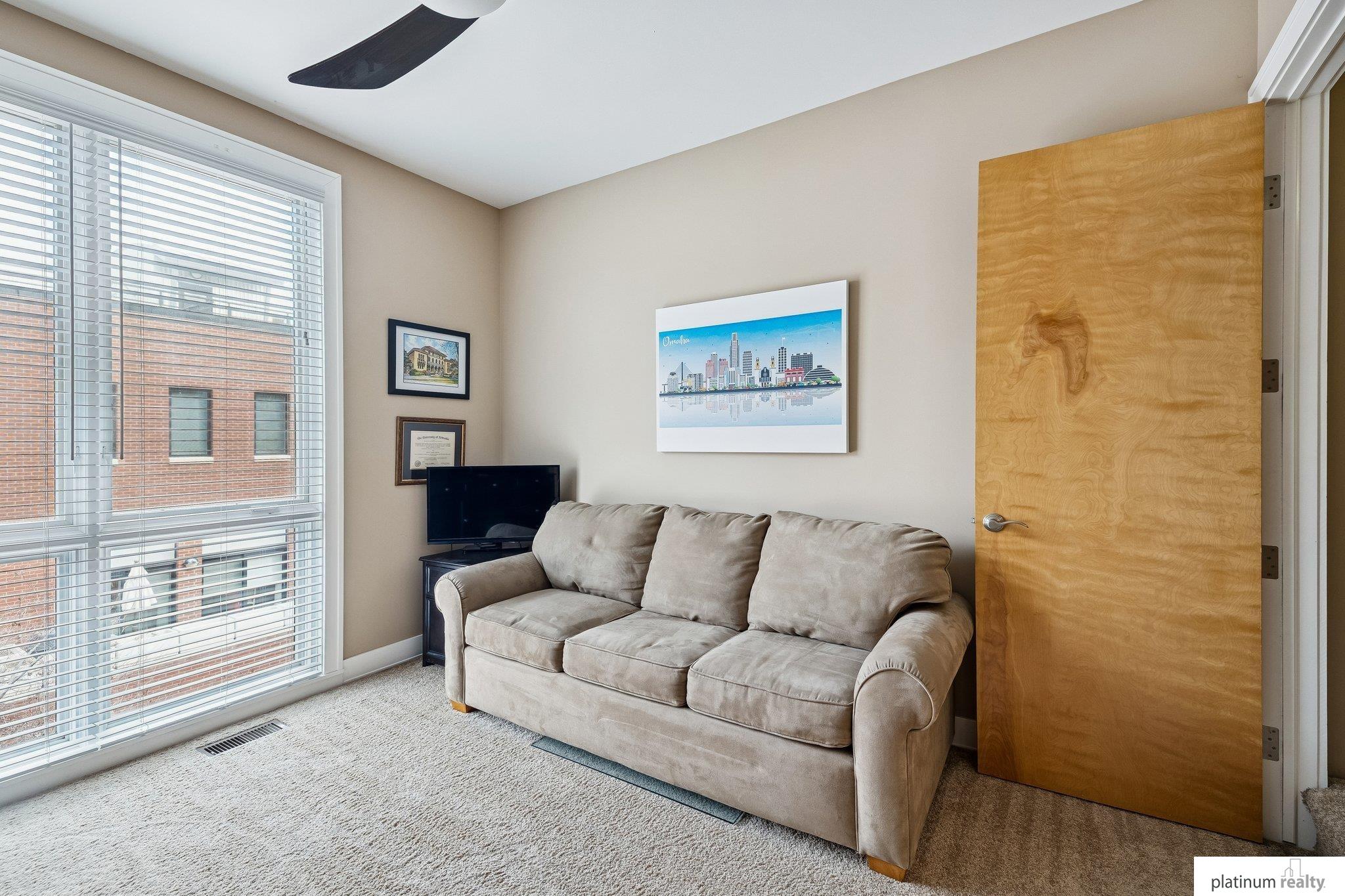 Rare opportunity in the highly sought-after Rows at SoMa! This modern 2-bedroom, 1.5-bath townhome perfectly blends industrial style with residential comfort. The open-concept living space w/hardwood flooring is perfect for entertaining, but the real showstopper is the private rooftop deck featuring breathtaking views of the Omaha skyline. A rare, heated 2-car garage offering both convenience and extra storage. Just a few blocks to Gene Leahy Park inclusive of The Riverfront Development, Old Market Shops, Entertainment Venues, Restaurants, Pubs, Kiewit Luminarium, Baseball Field & Riverfront Biking/Walking Paths. Enjoy maintenance-free living in one of the city's most vibrant and walkable neighborhoods. Approved for short term rentals & monthly rentals. AMA
