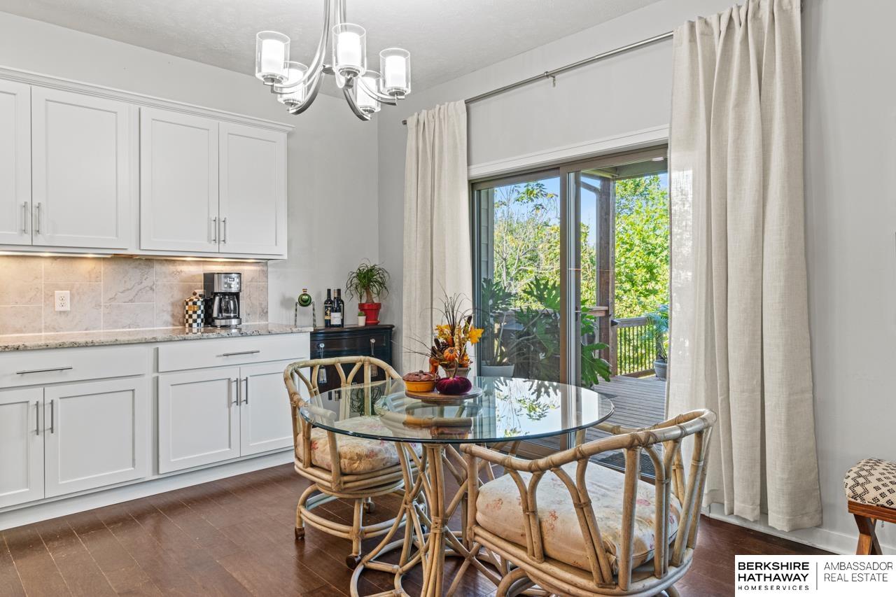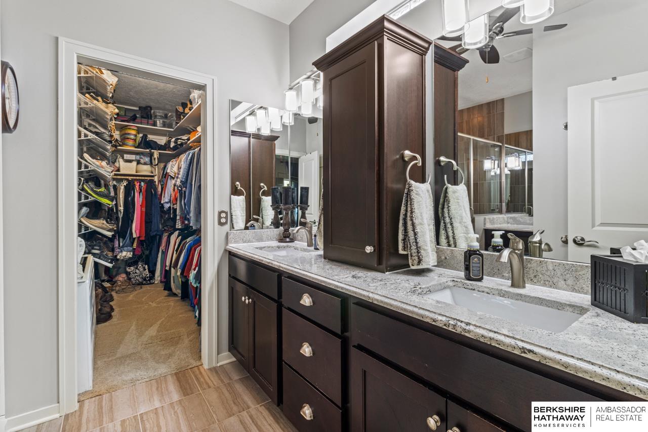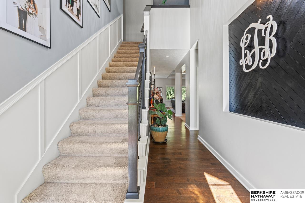 Welcome home to this beautifully maintained ranch in Papillion! Step inside to discover a bright, open floor plan with hardwood floors, tall ceilings, and thoughtful upgrades throughout. The chef’s kitchen features crisp white cabinetry, stainless steel appliances, double ovens, granite counters, and a walk-in pantry with charming checkered floors. The living area flows effortlessly to a covered deck—perfect for morning coffee or evening grilling—overlooking a fenced backyard and landscaped patio. The spacious primary suite offers a tiled walk-in shower, dual vanities, and a private dressing area. With multiple outdoor living spaces, a three-car garage, stone-accented exterior, and welcoming front porch, this home perfectly blends comfort and curb appeal. Sellers are offering a $10,000 credit toward flooring or buyer’s closing costs. Located near parks and trails in a quiet neighborhood—this one truly has it all.