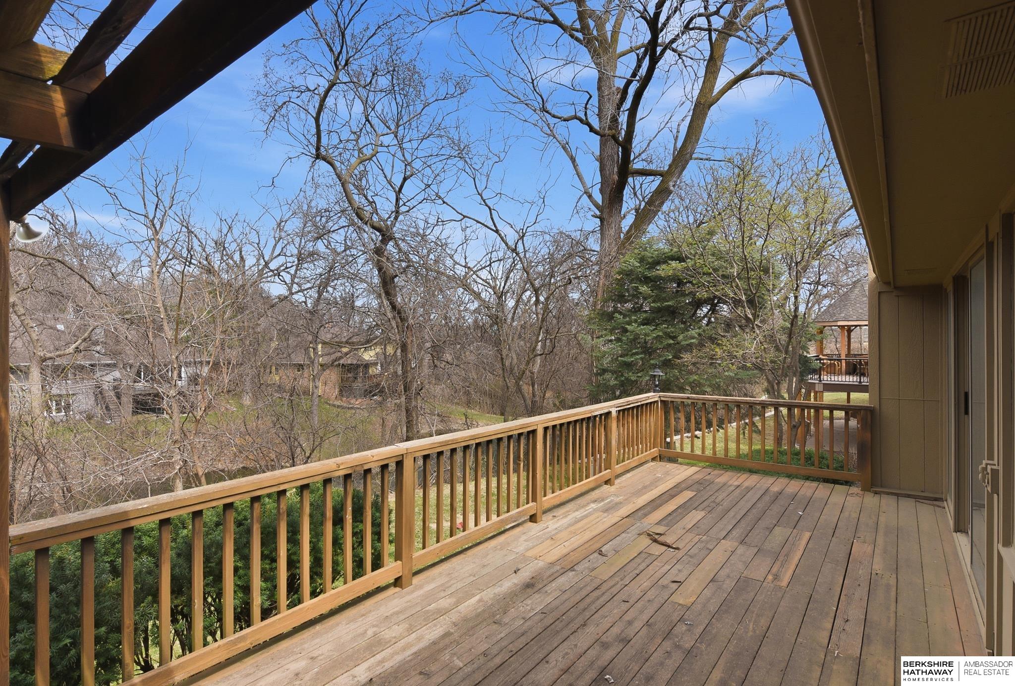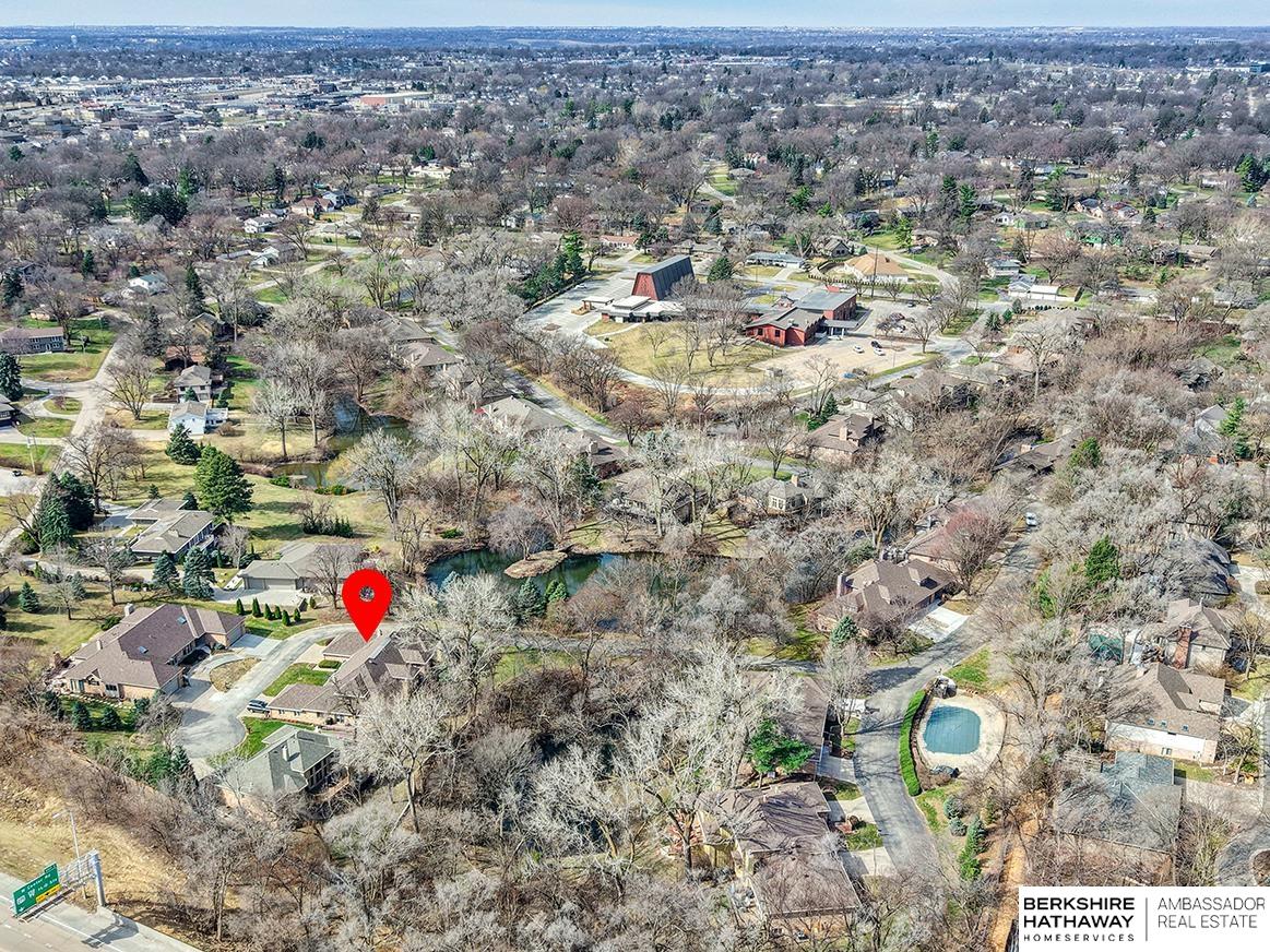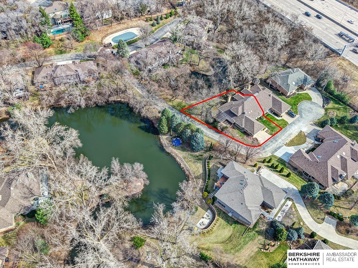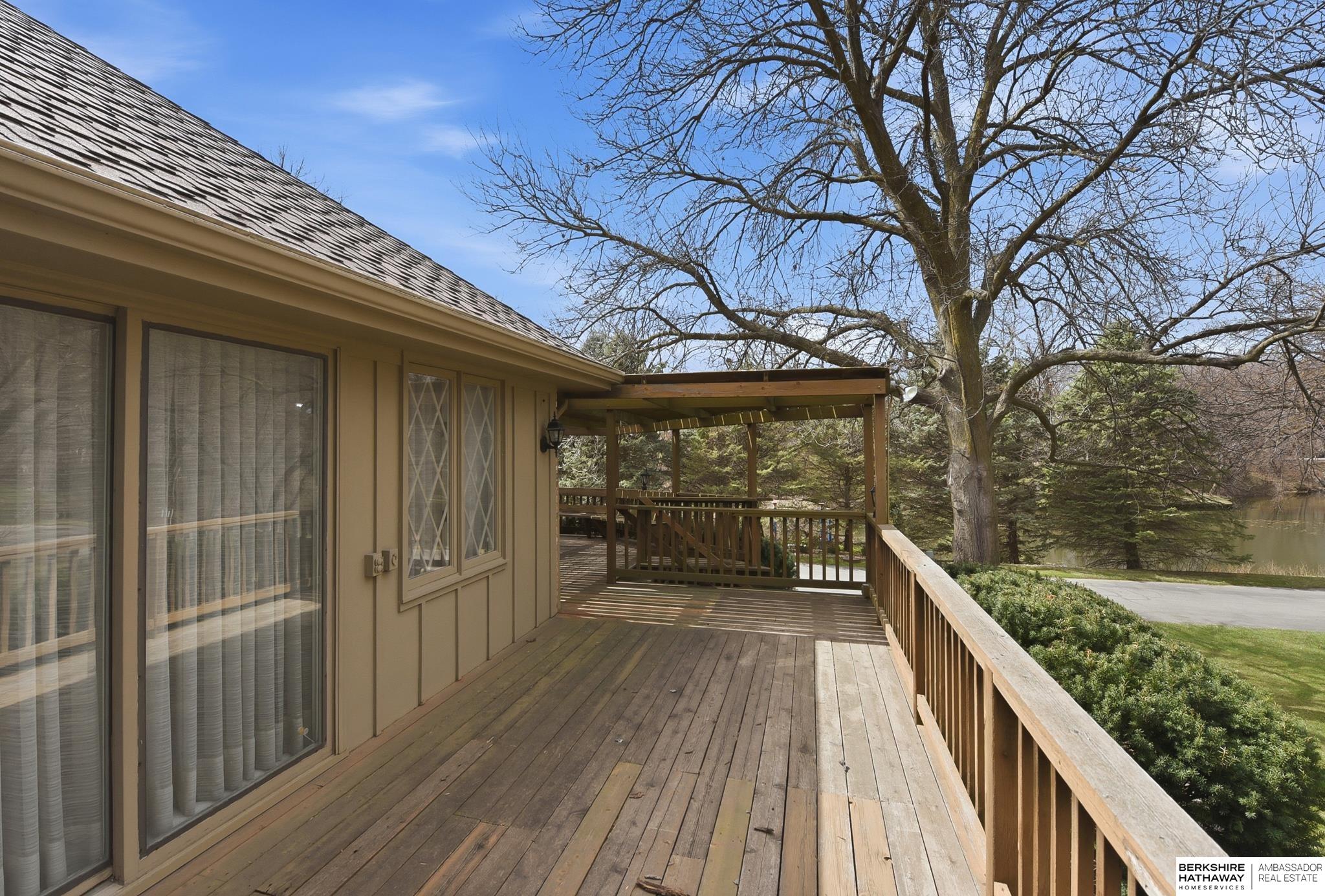 Exquisite 1.5 Story in Prestigious Brook Hollow! Private resort-like setting w/home nestled between 2 ponds, mature trees & nature every day! Two-story entry w/tile flr opens to XL living rm w/stone fireplace & wet bar & is adjacent to dining rm. Eat-in kitchen has custom cabinets, granite counters, tile splash, island, tile flr, planner desk & all appliances stay. Dinette opens to expansive deck (1,147 sqft) w/pergola & stunning views. Den/office space (just off kitchen) w/wall of built-ins. Primary suite has new paint (2026), large walk-in closet, dual sinks & step-up tub. 2nd bdrm is located at front of home w/access to full bath. 2nd level has family rm, 3rd bdrm & 3/4 bath. Full bsmt w/enclosed shop area & rough-in. Roof-50 year Presidential Shingles (2020), furnaces (2017/2018), A/C (2014) & water heater (2013). HOA is $405.12/month for pool access, lawn care, snow removal, & common area maintenance. Close to I-680, shopping, schools, parks & 15 minutes or less to everything!