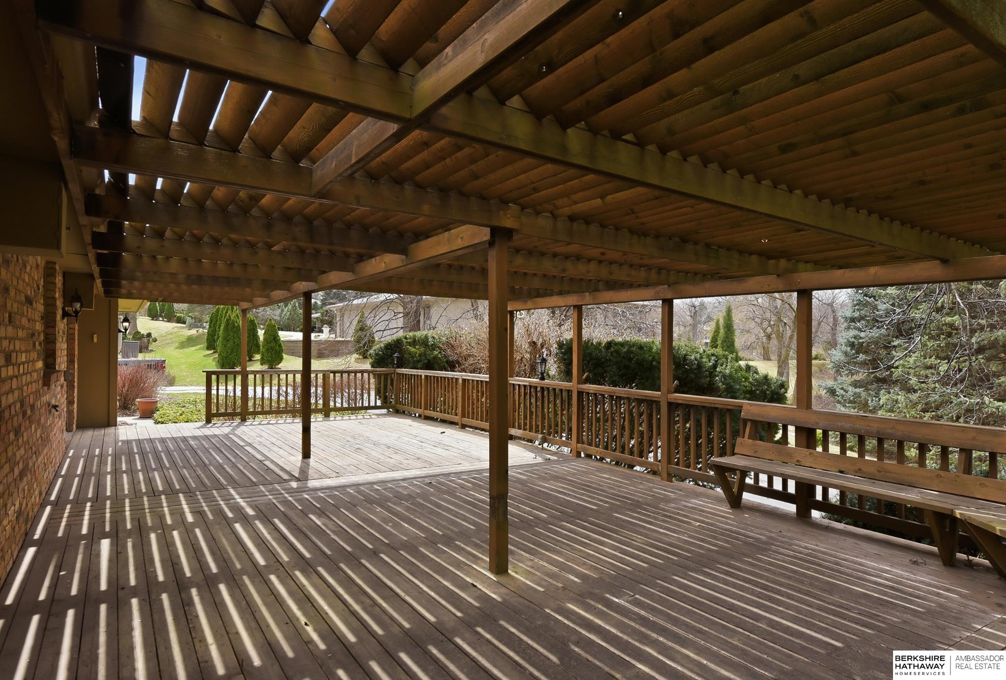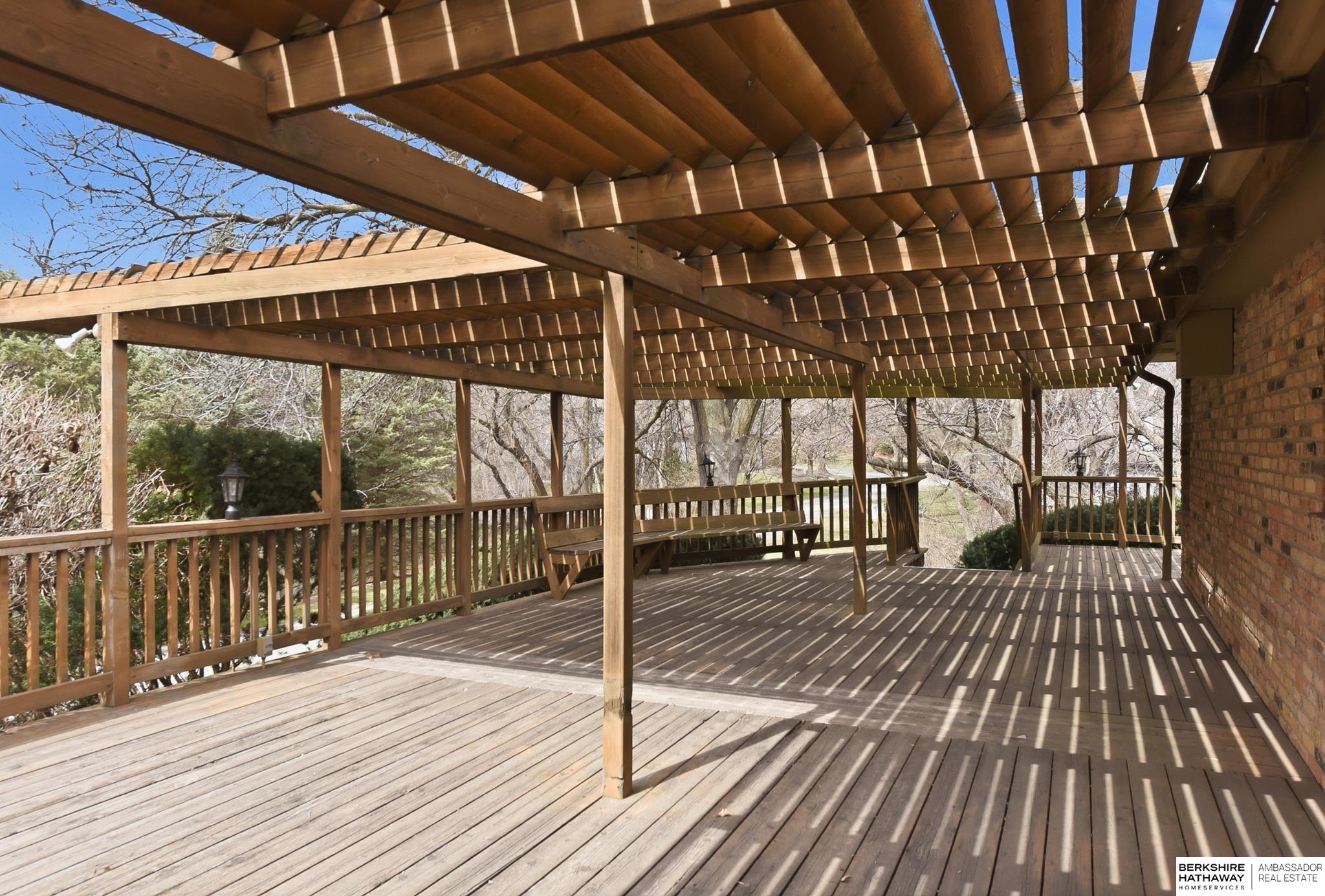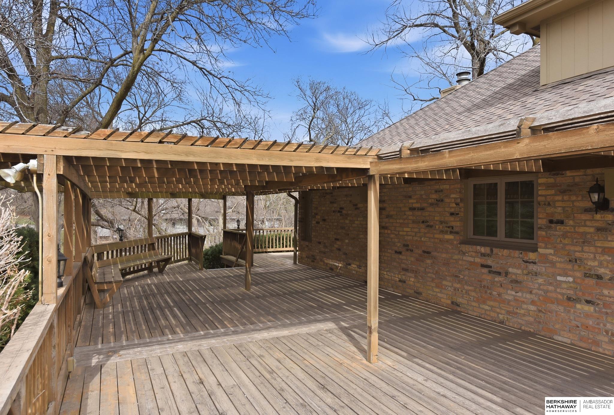 Exquisite 1.5 Story in Prestigious Brook Hollow! Private resort-like setting w/home nestled between 2 ponds, mature trees & nature every day! Two-story entry w/tile flr opens to XL living rm w/stone fireplace & wet bar & is adjacent to dining rm. Eat-in kitchen has custom cabinets, granite counters, tile splash, island, tile flr, planner desk & all appliances stay. Dinette opens to expansive deck (1,147 sqft) w/pergola & stunning views. Den/office space (just off kitchen) w/wall of built-ins. Primary suite has new paint (2026), large walk-in closet, dual sinks & step-up tub. 2nd bdrm is located at front of home w/access to full bath. 2nd level has family rm, 3rd bdrm & 3/4 bath. Full bsmt w/enclosed shop area & rough-in. Roof-50 year Presidential Shingles (2020), furnaces (2017/2018), A/C (2014) & water heater (2013). HOA is $405.12/month for pool access, lawn care, snow removal, & common area maintenance. Close to I-680, shopping, schools, parks & 15 minutes or less to everything!