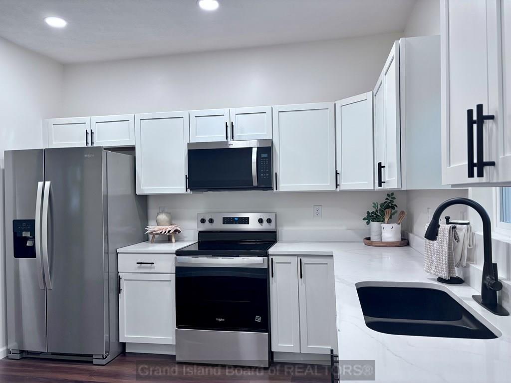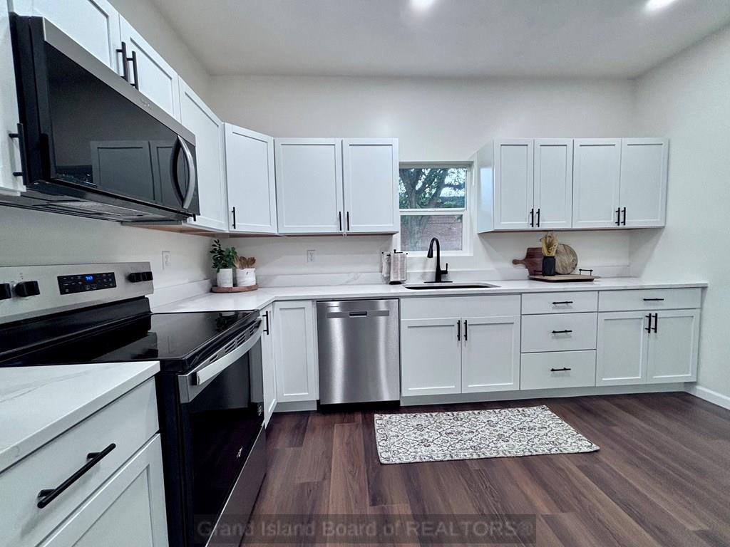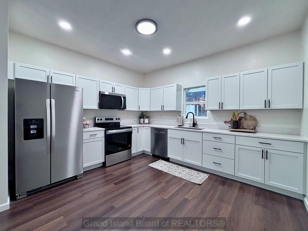 Stunning 5-Bedroom, 2-bath home packed with modern upgrades and custom finishes! New flooring, new electrical throughout the house, siding, a brand new A/C unit, and a new roof. The kitchen features luxury quartz countertops, stylish light fixtures, new appliances (refrigerator, microwave, electric range, and dishwasher), plus a sleek sliding glass door leading to the backyard. Main floor offers 2 bedrooms and a convenient laundry room off the kitchen. Upstairs, you'll find 3 additional bedrooms, a spacious second living room, a second bathroom, and even a second laundry room. Enjoy new black hardware for a modern feel, backyard shed, partial basement for shelter and storage, and an oversized 3-car attached garage with a recreation room above - perfect for hobbies or entertaining. Call to schedule your showing today!