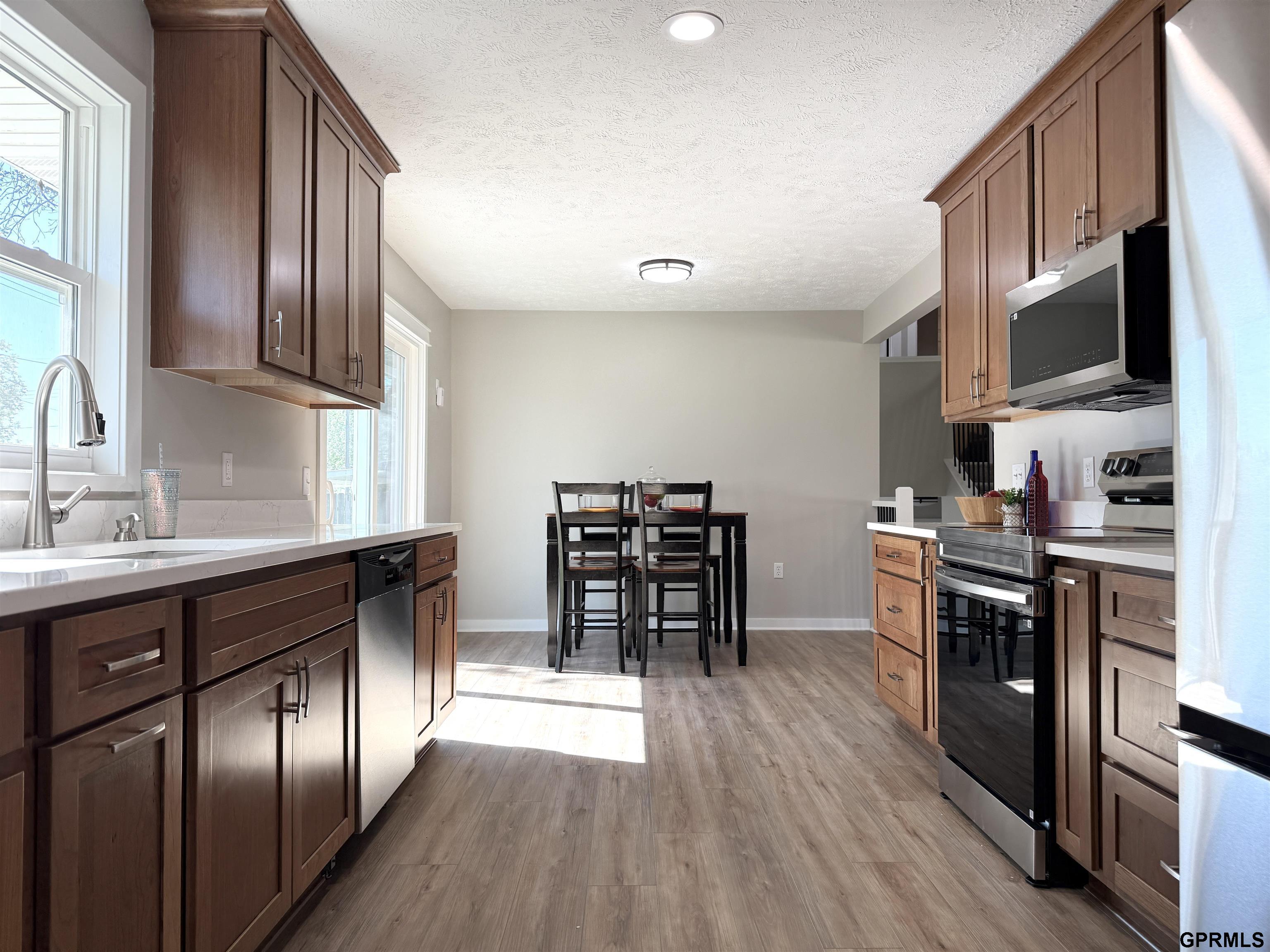 New Price, New appliances, New Closets, New attitude. This house got some final details completed and it has a whole new attitude & interest rates adjusted downward- YEAH. Recently rennovated, you will love the modern touches, plus it has THREE living spaces (think workout room or home office!) Wind your way up the front walk to the new landing, inside is a BIG living space with GREAT windows. Notice the Luxury Vinyl Plank flooring that runs throughout this level. Dining room is convenient to kitchen & back patio. The NEW kitchen has solid-surface counters, undermount sink, appliances, TWO pantrys & quiet-close cabinets. Heading upstairs, you will want to see new the primary bedroom closet...DANG! 2nd bedroom & full bath complete this level. Downstairs has 2nd living space with garden windows & bath with laundry. Down one more level is another living space, compliant bedroom, office or storage room & mechanicals. Attached garage with corner lot. Come see this one!
