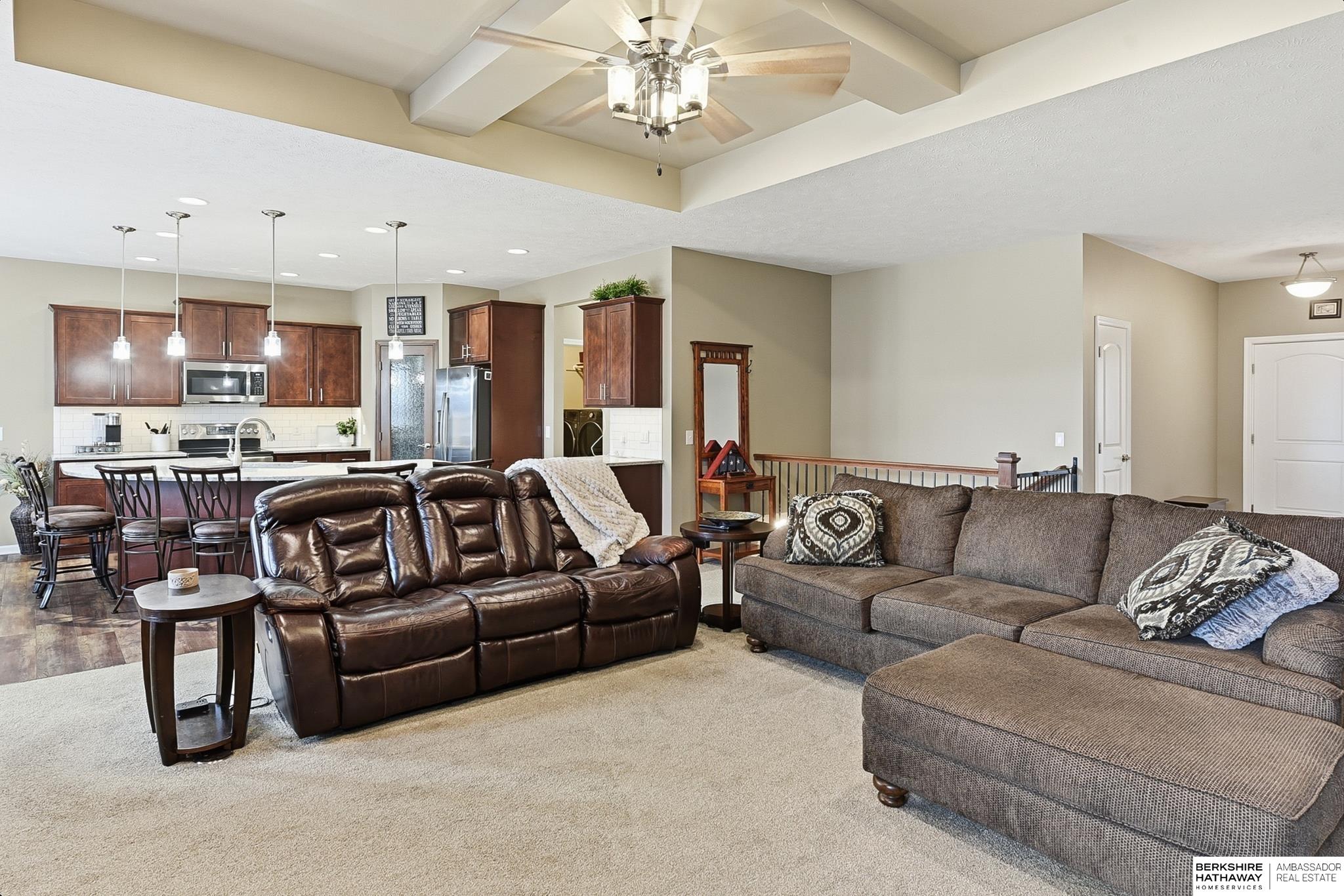 Welcome to this stunning ranch-style home offering modern comfort, thoughtful design, and standout curb appeal. Located near schools and dining, it features a spacious open floor plan filled with natural light. The expansive kitchen boasts a large quartz island and corner pantry, opening to the dining and living areas for effortless entertaining. Enjoy three spacious bedrooms, including a primary suite with a walk-in closet, built-in vanity, and walk-in tile shower. The huge basement with an egress window offers endless finishing potential. Outside, relax in the beautifully landscaped yard on the patio with a firepit or enjoy the newly installed permanent Christmas lights out front. An oversized, heated, 3-car garage provides exceptional space for vehicles and storage. This home combines style, function, and room to grow - truly a must-see.