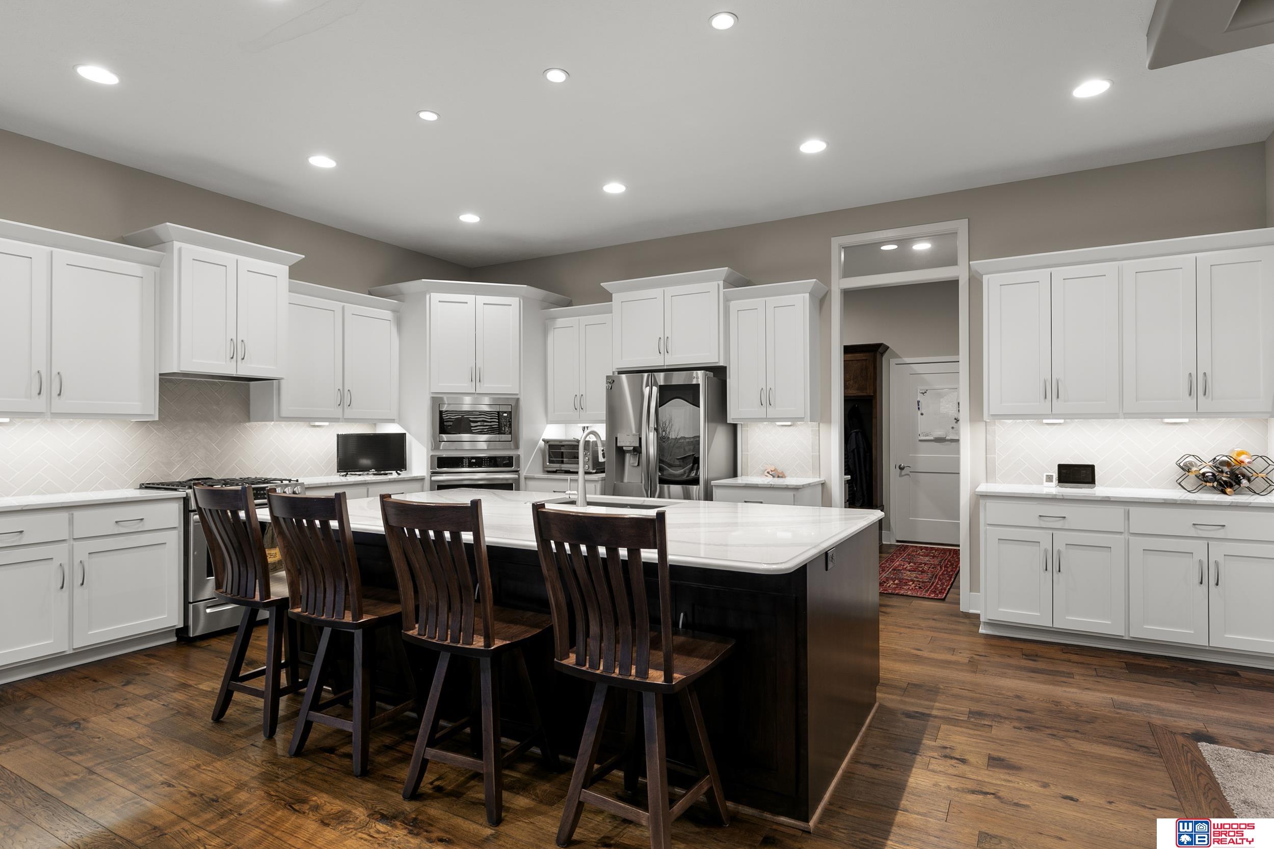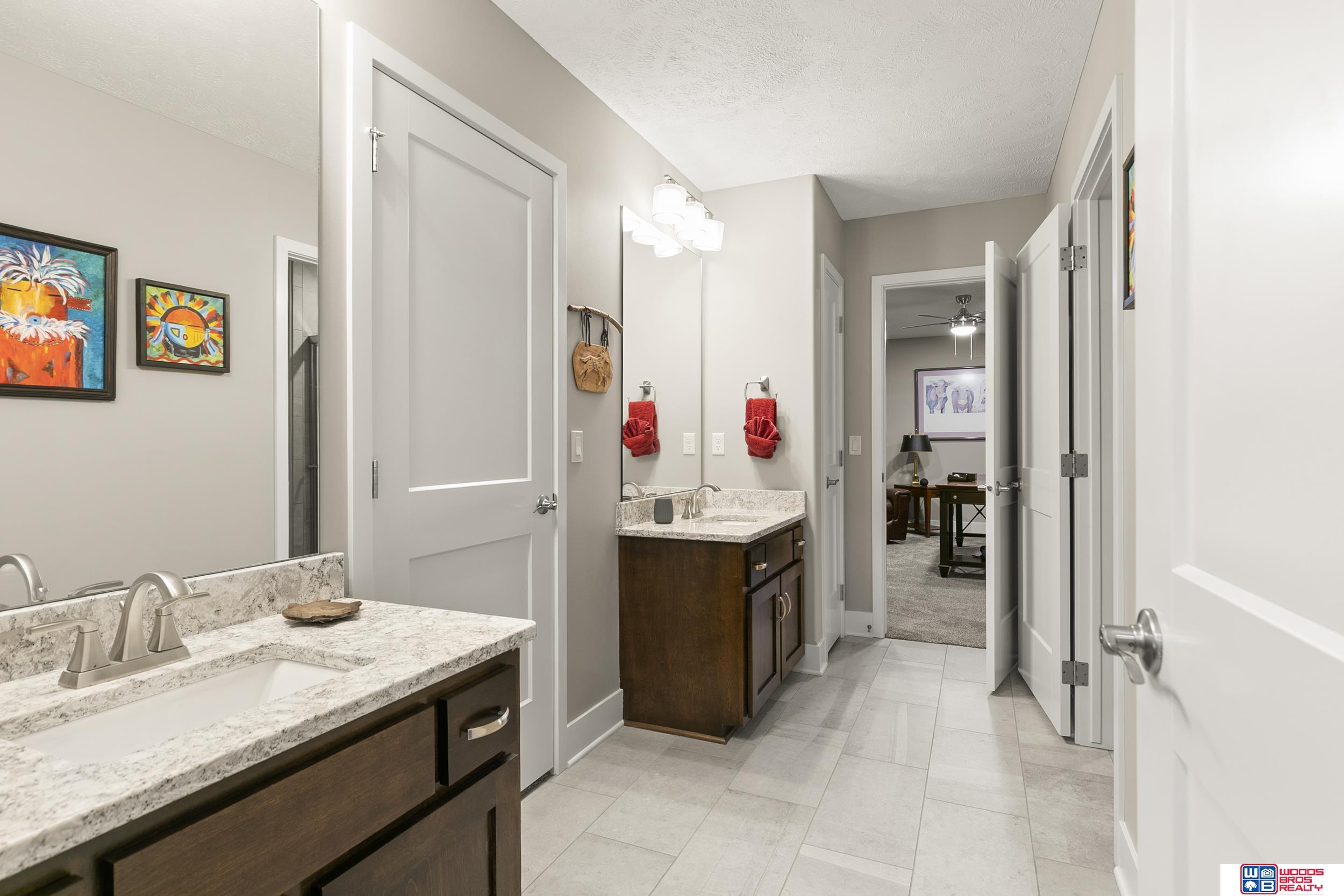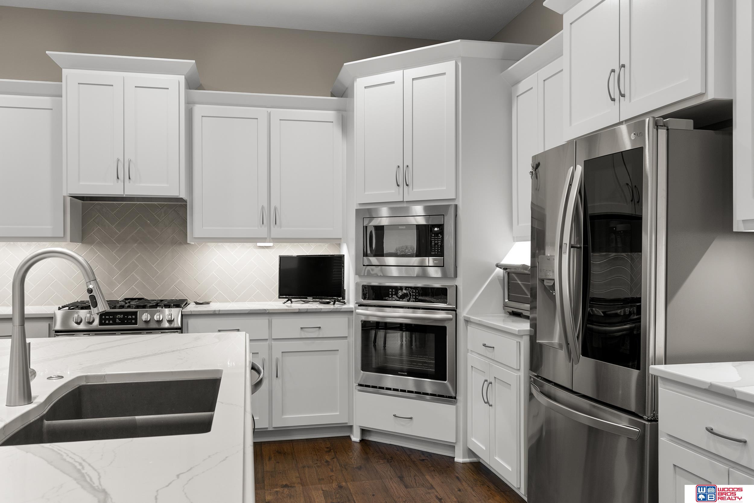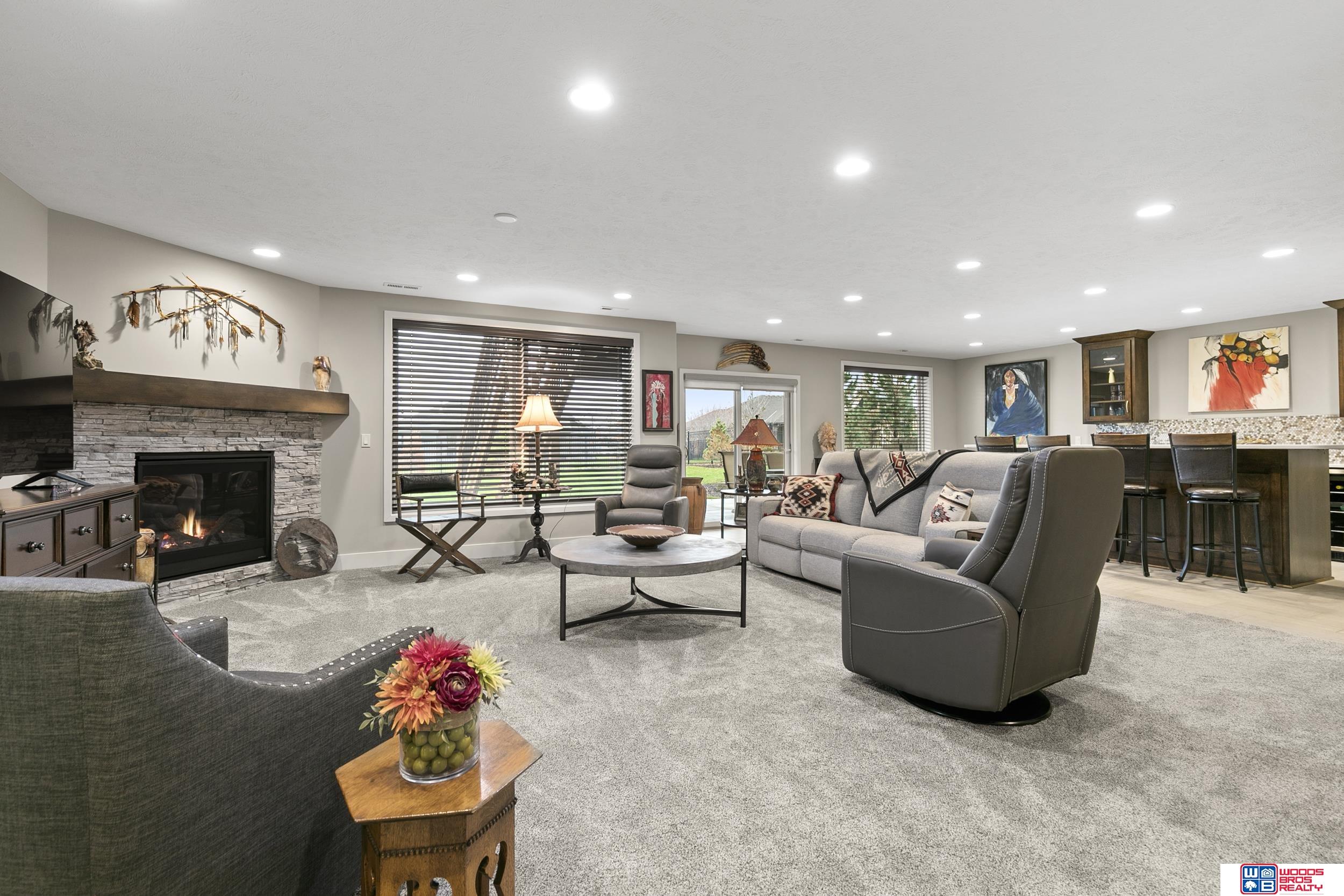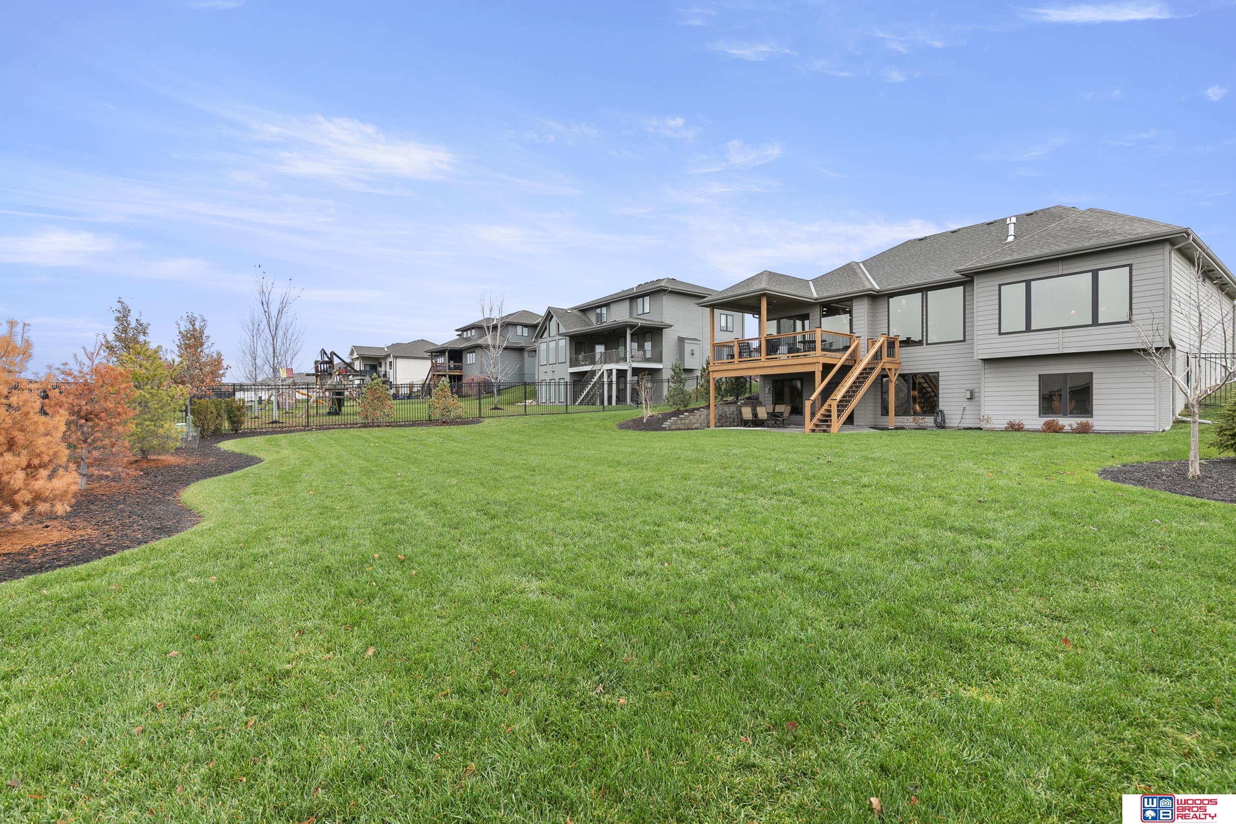 Built in 2019, this Louden ranch by Woodland Homes offers refined design with a finished walkout lower level and timeless craftsman curb appeal. The open floor plan features soaring ceilings, a spacious great room, and an upscale kitchen with a massive island, high-end appliances, bright dinette, walk-in pantry, and mudroom with drop zone and locker space. The main level includes two bedrooms, highlighted by a luxurious primary suite with a large walk-in shower and oversized closet. The walkout lower level is ideal for entertaining with a media/theatre room, rec room with wet bar and dining area, plus two conforming bedrooms connected by a Jack-and-Jill bath. Situated on a large, flat east-facing walkout lot—ideal for a future pool or custom landscaping—with a covered deck, covered front porch, and three-car garage. Prime Papillion location near schools, shopping, Werner Park, and the Prairie Queen Lake area.