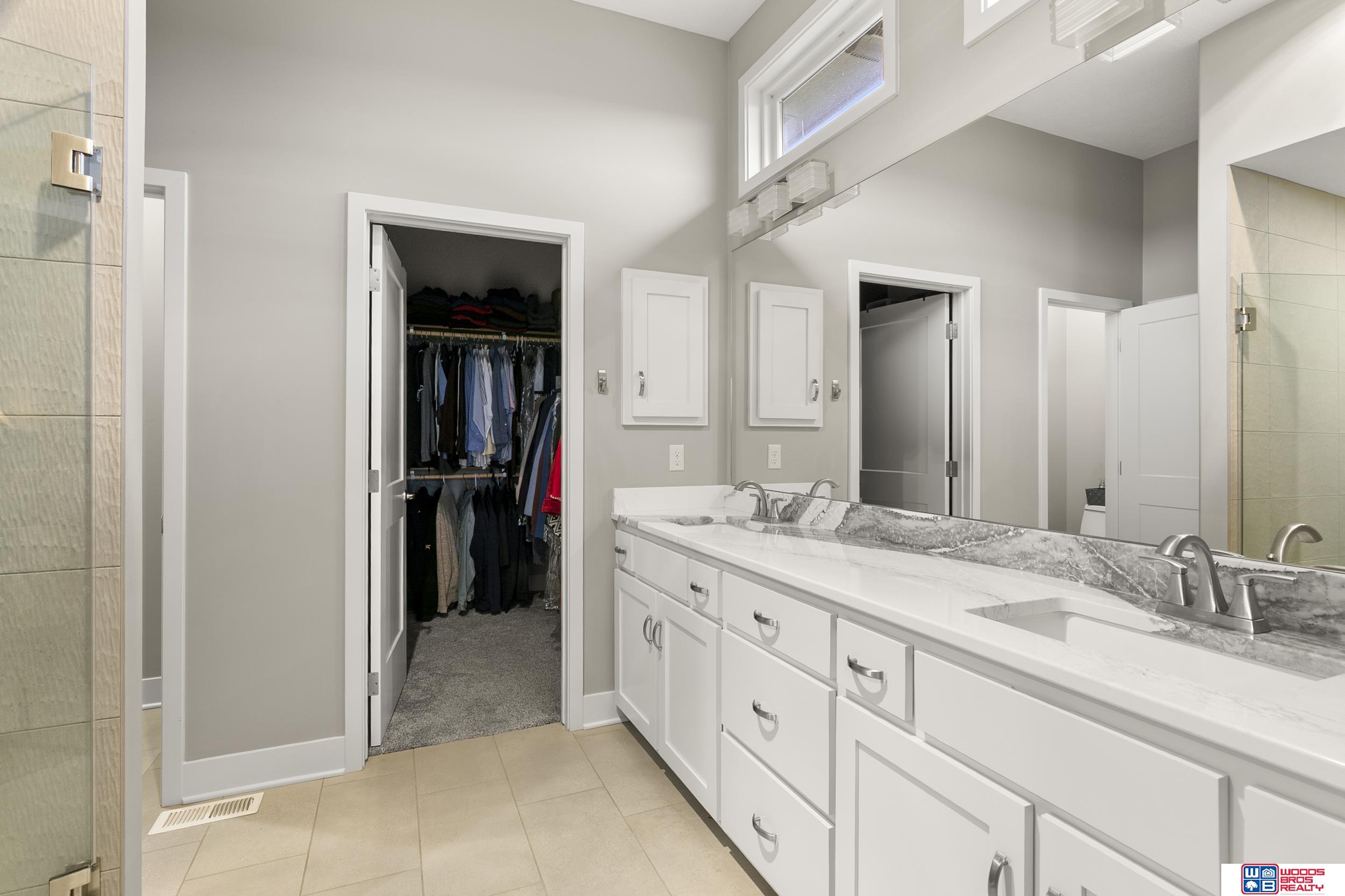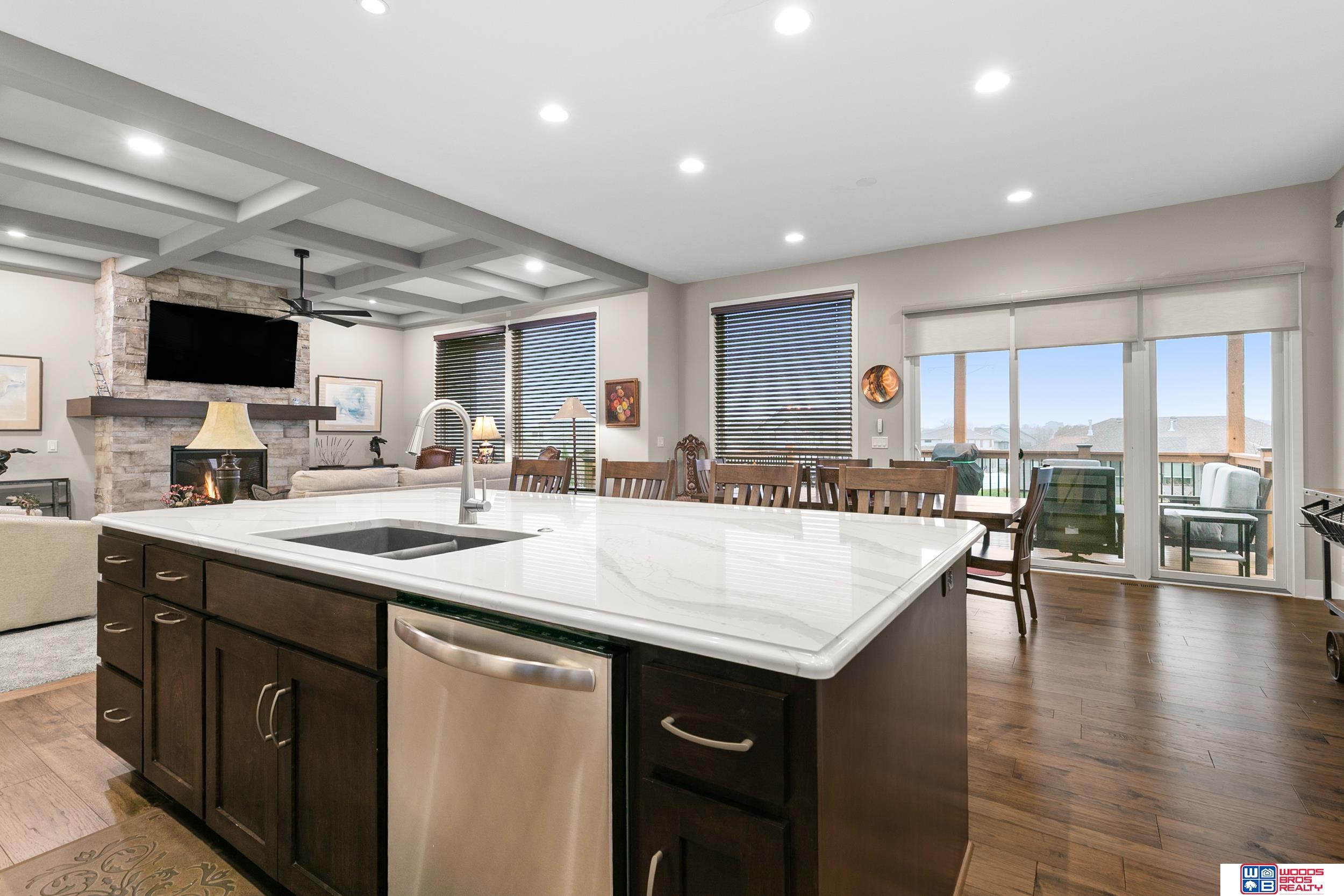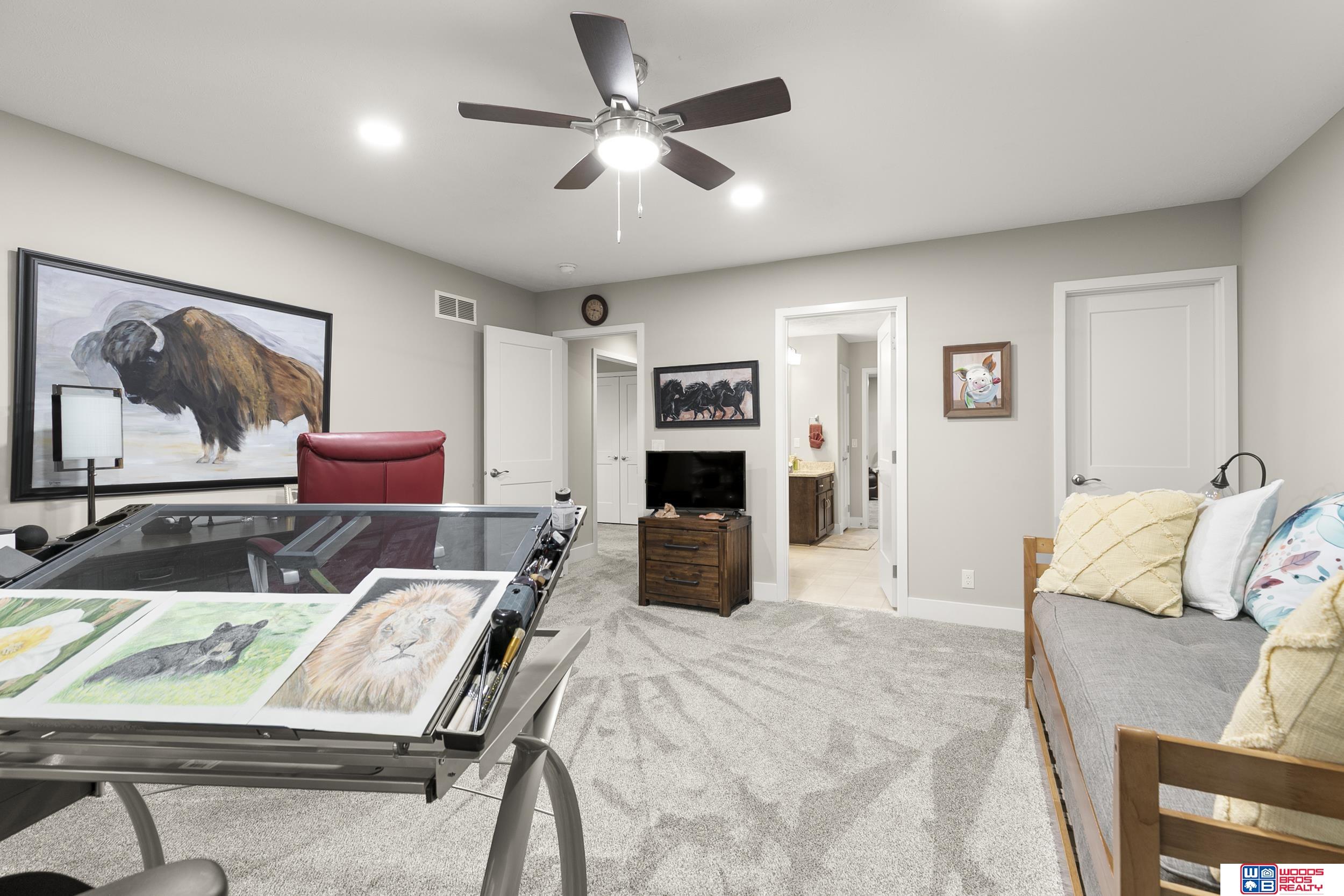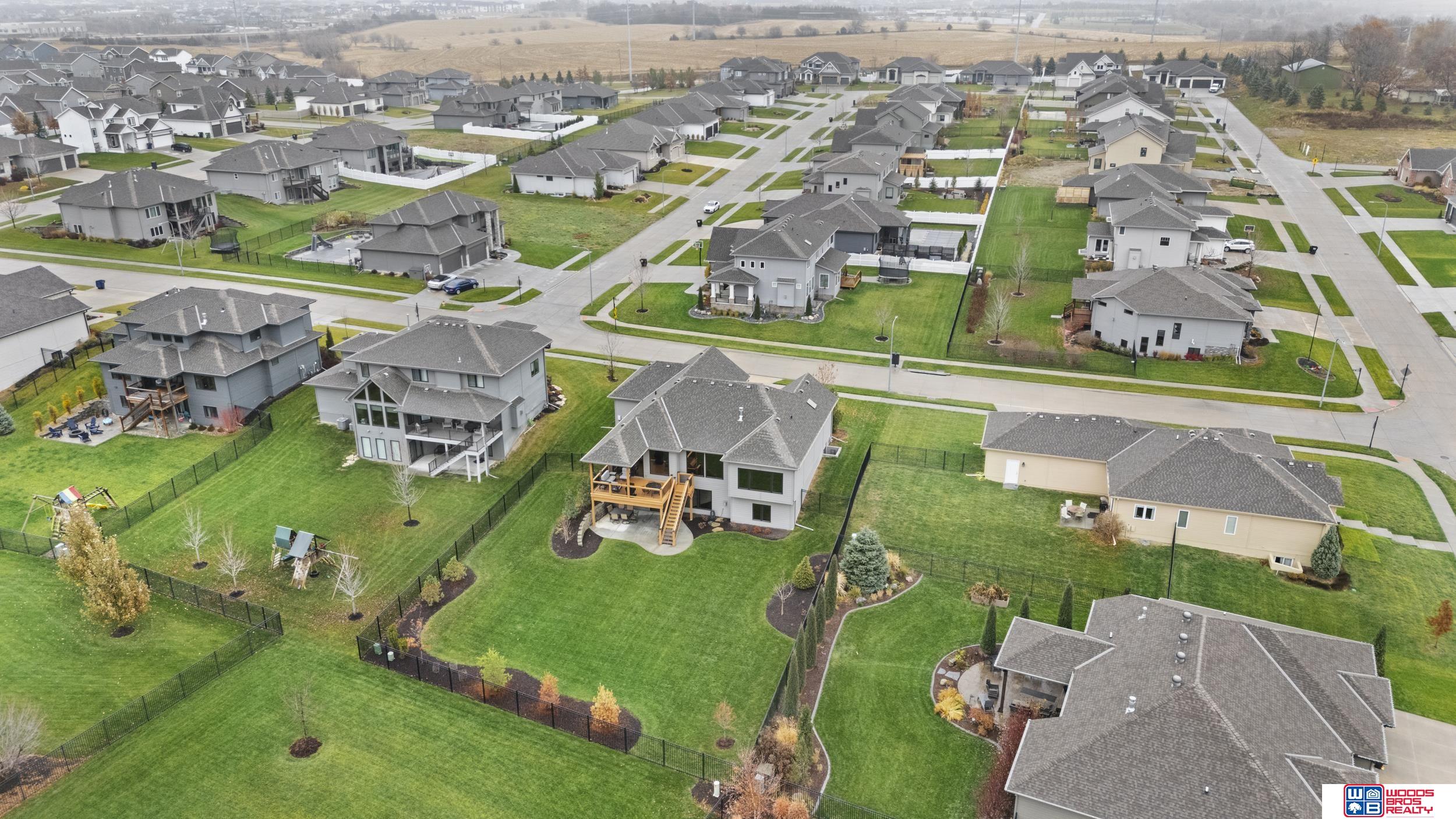 Built in 2019, this Louden ranch by Woodland Homes offers refined design with a finished walkout lower level and timeless craftsman curb appeal. The open floor plan features soaring ceilings, a spacious great room, and an upscale kitchen with a massive island, high-end appliances, bright dinette, walk-in pantry, and mudroom with drop zone and locker space. The main level includes two bedrooms, highlighted by a luxurious primary suite with a large walk-in shower and oversized closet. The walkout lower level is ideal for entertaining with a media/theatre room, rec room with wet bar and dining area, plus two conforming bedrooms connected by a Jack-and-Jill bath. Situated on a large, flat east-facing walkout lot—ideal for a future pool or custom landscaping—with a covered deck, covered front porch, and three-car garage. Prime Papillion location near schools, shopping, Werner Park, and the Prairie Queen Lake area.