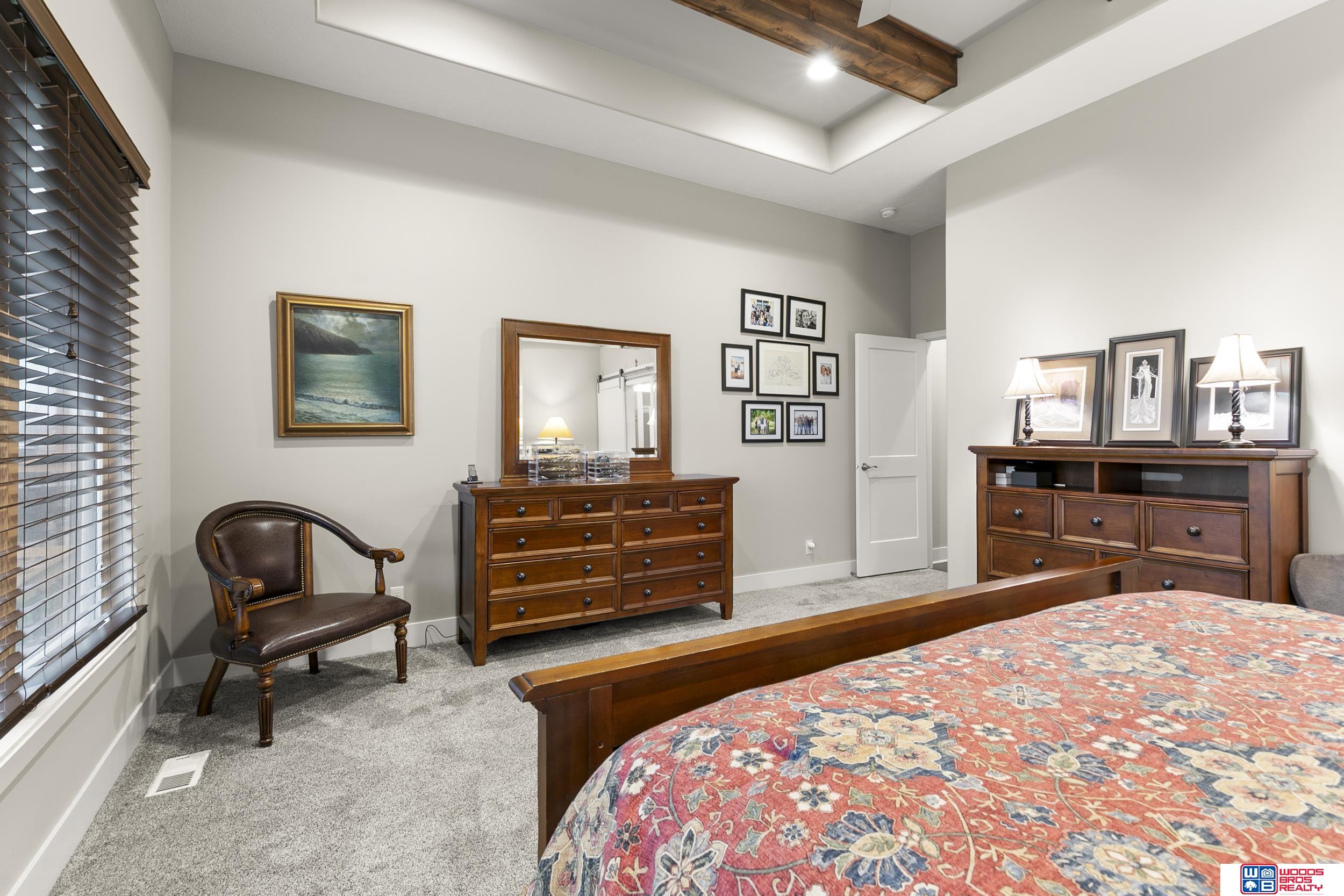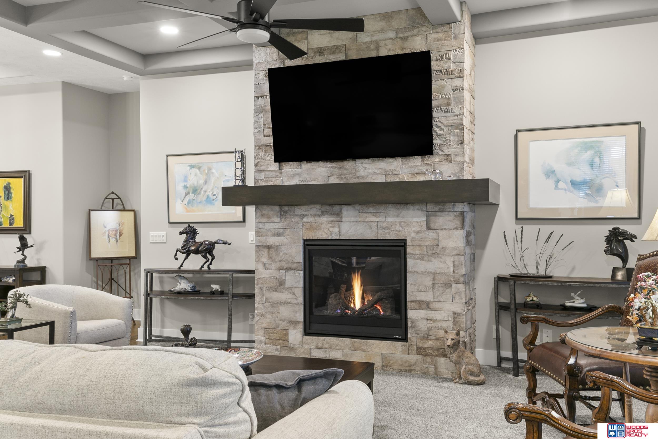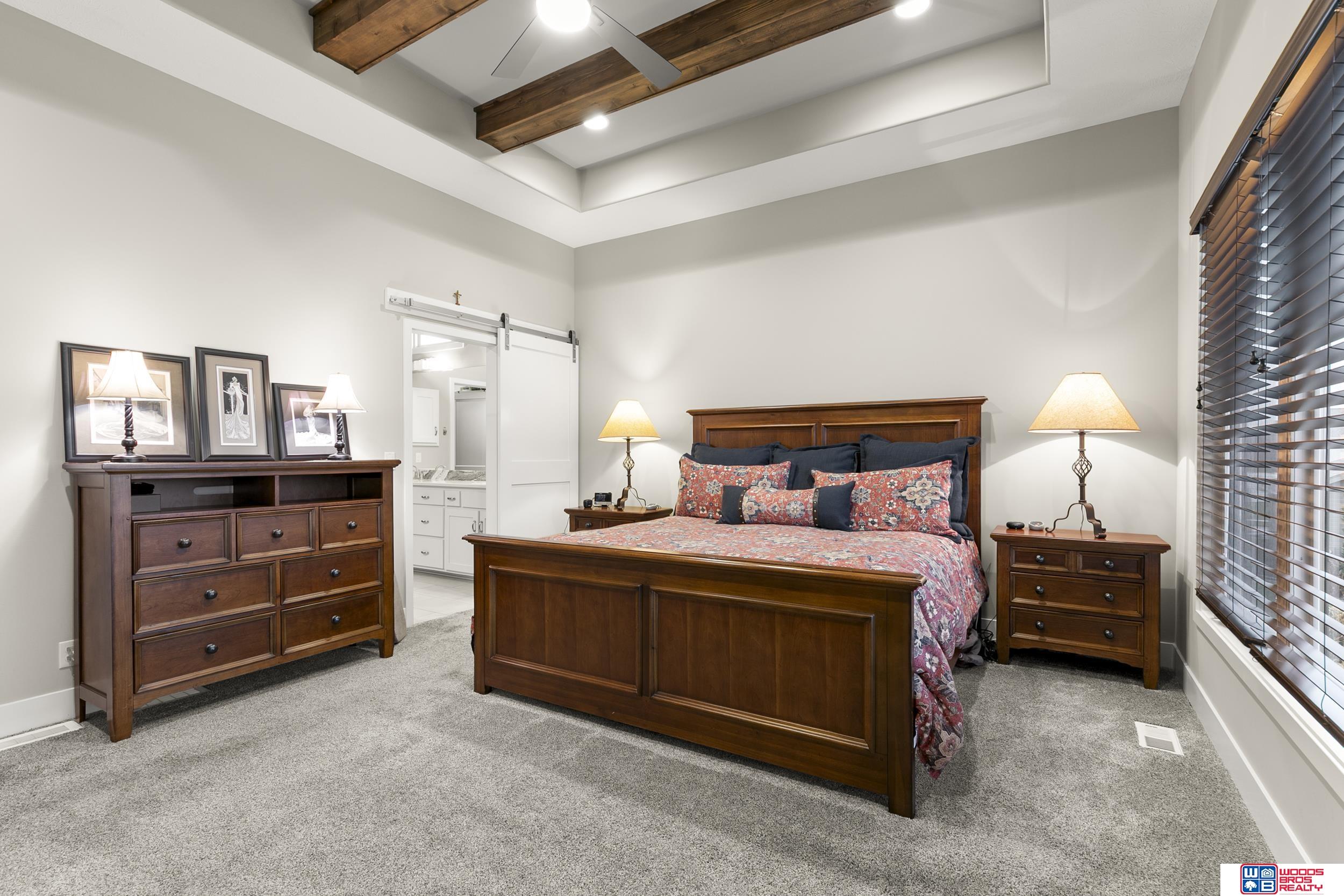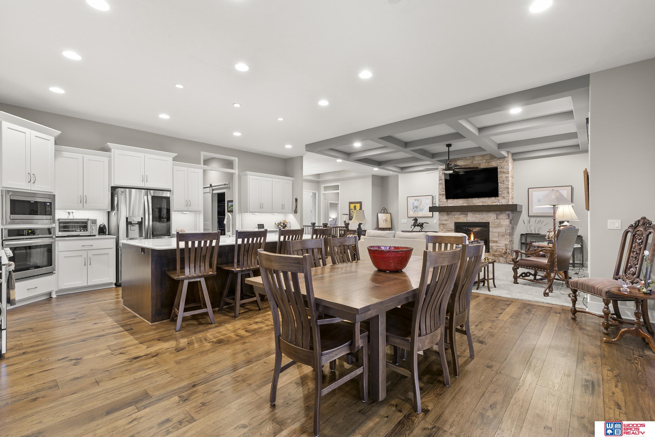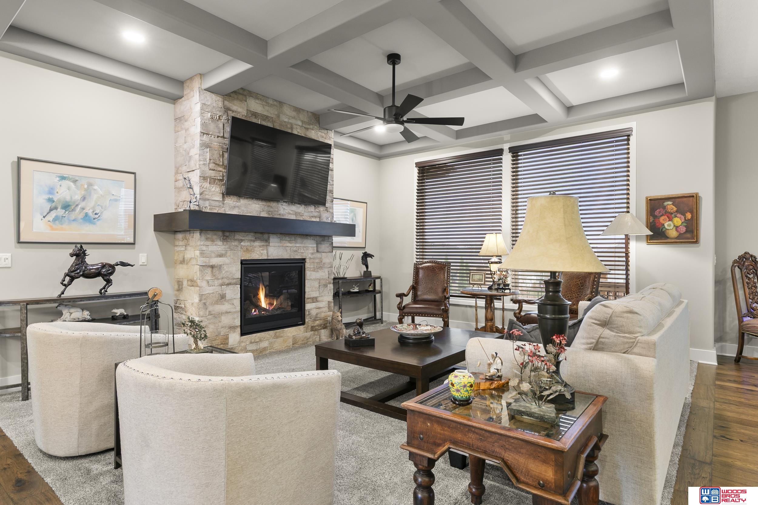Built in 2019, this Louden ranch by Woodland Homes offers refined design with a finished walkout lower level and timeless craftsman curb appeal. The open floor plan features soaring ceilings, a spacious great room, and an upscale kitchen with a massive island, high-end appliances, bright dinette, walk-in pantry, and mudroom with drop zone and locker space. The main level includes two bedrooms, highlighted by a luxurious primary suite with a large walk-in shower and oversized closet. The walkout lower level is ideal for entertaining with a media/theatre room, rec room with wet bar and dining area, plus two conforming bedrooms connected by a Jack-and-Jill bath. Situated on a large, flat east-facing walkout lot—ideal for a future pool or custom landscaping—with a covered deck, covered front porch, and three-car garage. Prime Papillion location near schools, shopping, Werner Park, and the Prairie Queen Lake area.