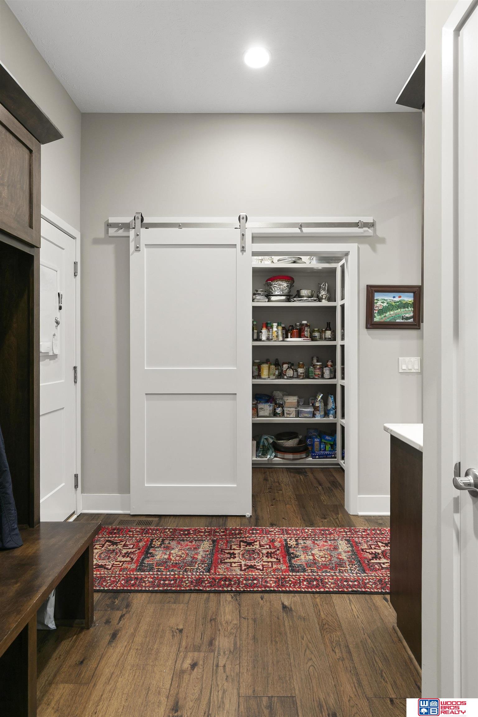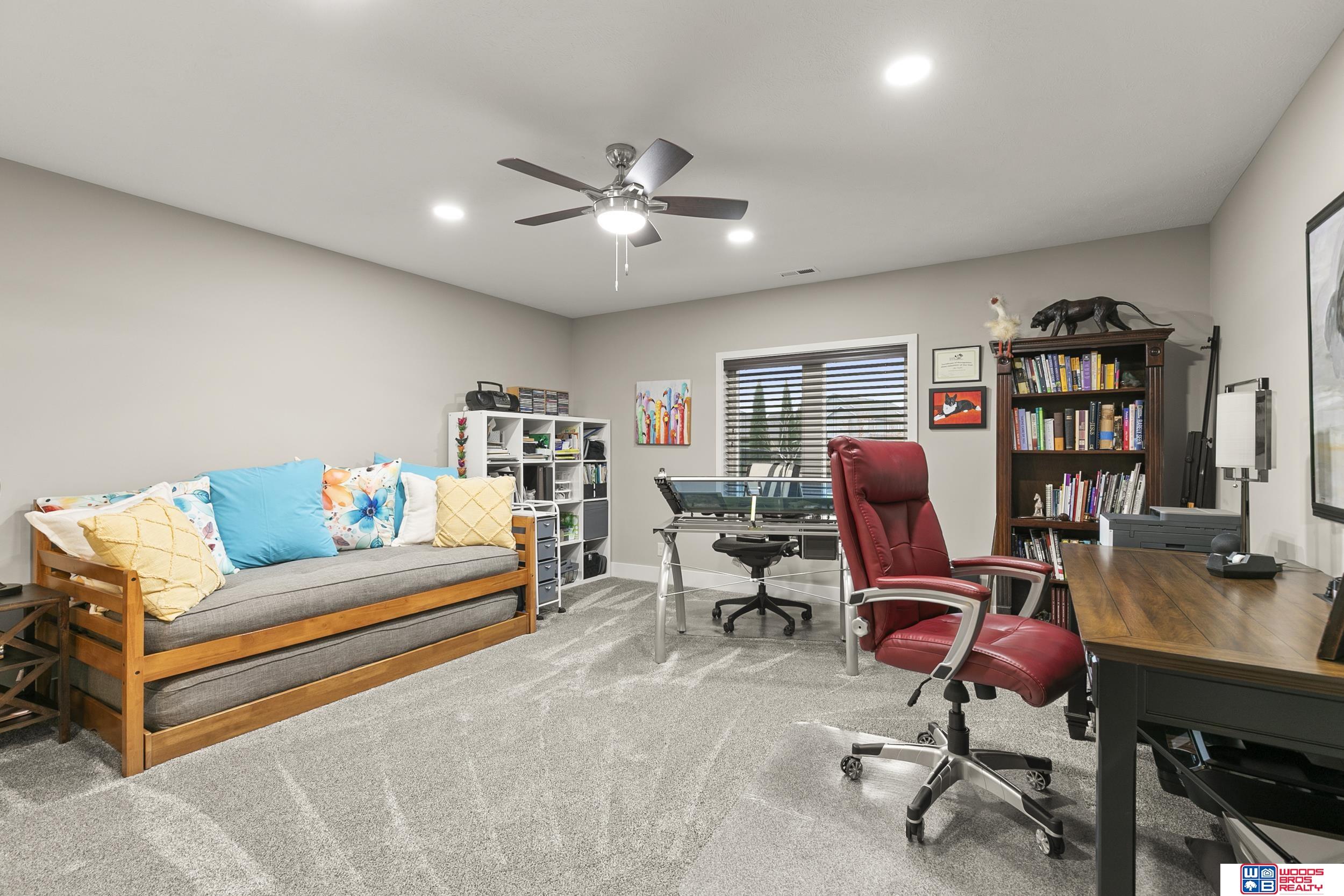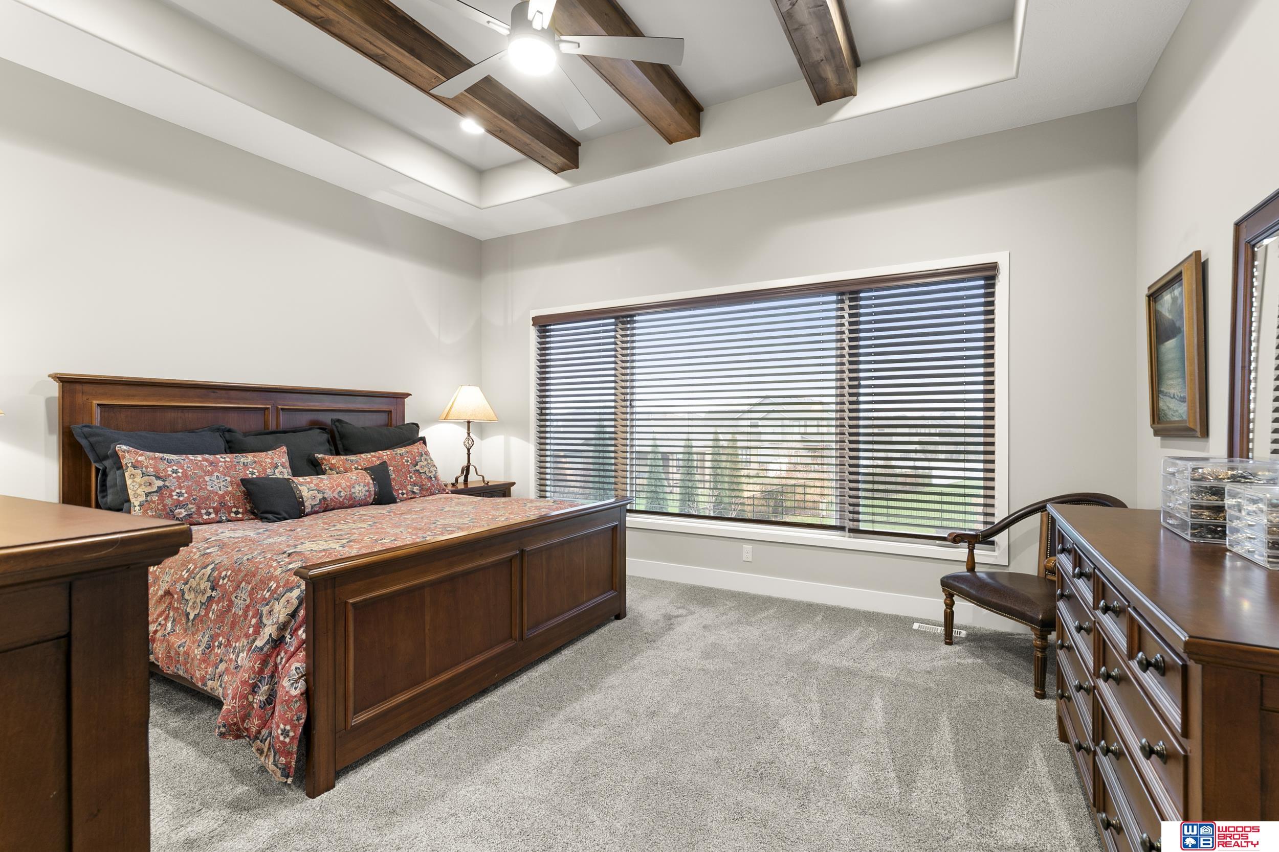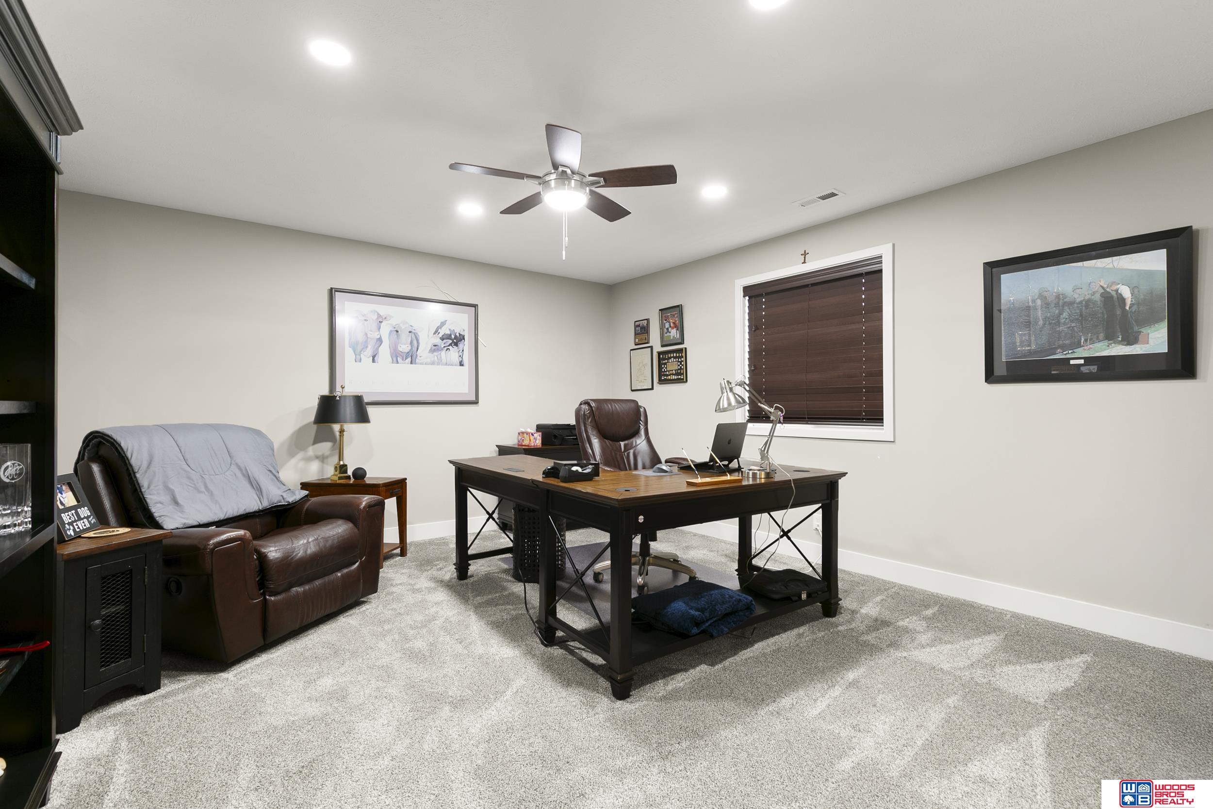 Built in 2019, this Louden ranch by Woodland Homes offers refined design with a finished walkout lower level and timeless craftsman curb appeal. The open floor plan features soaring ceilings, a spacious great room, and an upscale kitchen with a massive island, high-end appliances, bright dinette, walk-in pantry, and mudroom with drop zone and locker space. The main level includes two bedrooms, highlighted by a luxurious primary suite with a large walk-in shower and oversized closet. The walkout lower level is ideal for entertaining with a media/theatre room, rec room with wet bar and dining area, plus two conforming bedrooms connected by a Jack-and-Jill bath. Situated on a large, flat east-facing walkout lot—ideal for a future pool or custom landscaping—with a covered deck, covered front porch, and three-car garage. Prime Papillion location near schools, shopping, Werner Park, and the Prairie Queen Lake area.