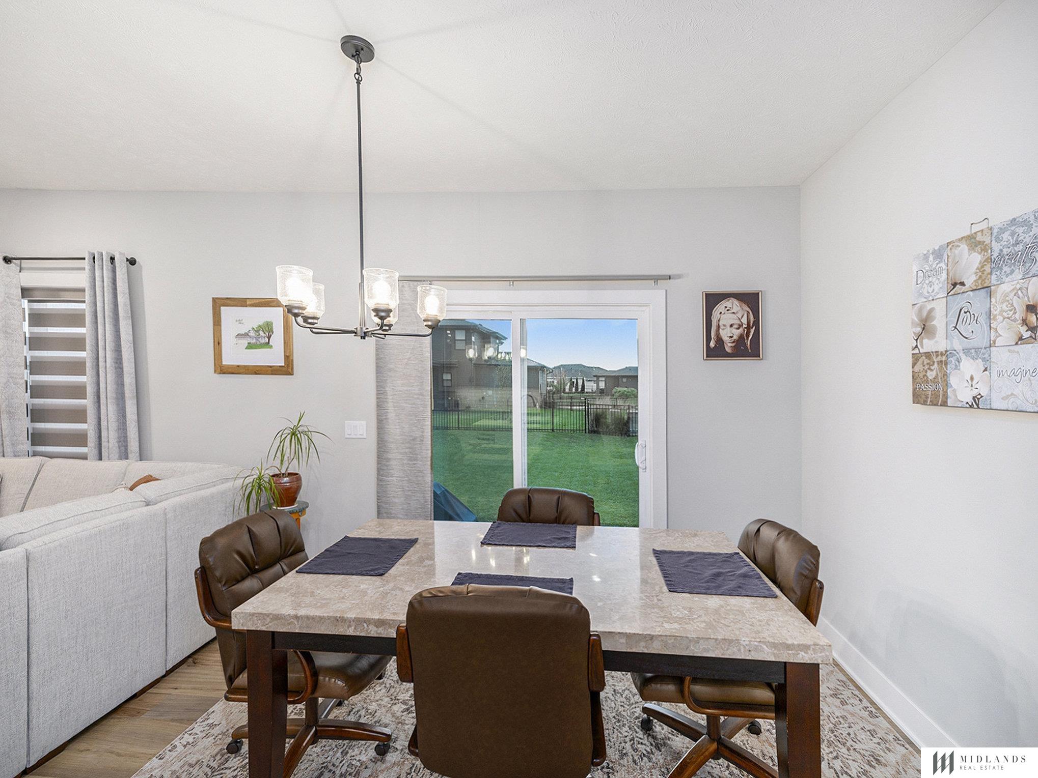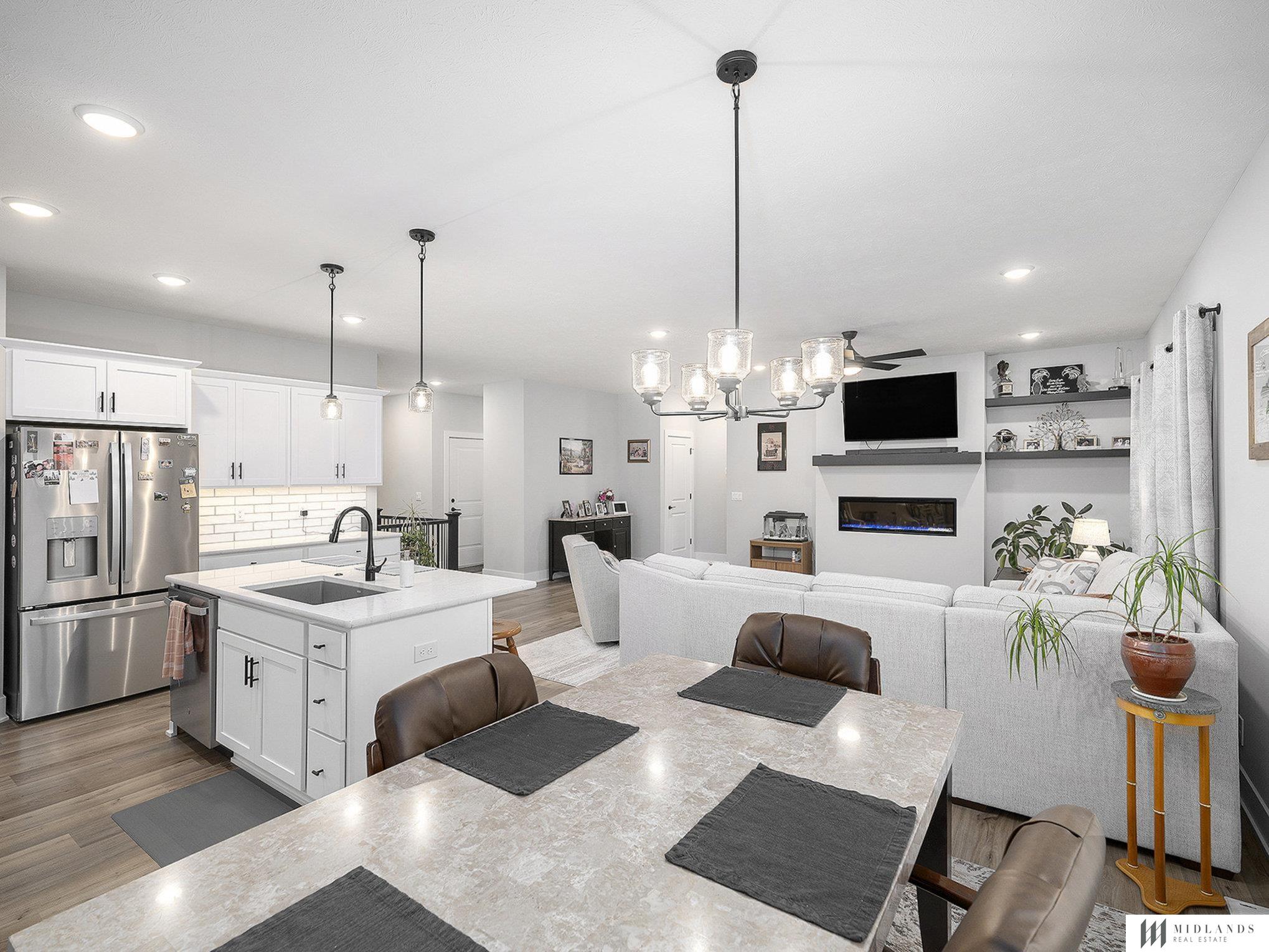 This true 5 bedroom home is waiting for you to make it your home. This 3 year old home features an open floor plan design that includes a kitchen, dining area, and family room complete with a warm gas fireplace. The home has a walk-in pantry, stainless steel appliances, elegant quartz countertops, and a handy drop zone right off the garage. Primary bath hosts dual sinks, walk in shower with full walk in closet with laundry. The finished basement has two bedrooms with a huge recreational room perfect for gatherings. Surprising storage throughout the home. Situated in the Gretna school district in Harvest Hills, this home is located within walking distance to the new elementary school. Updates to home: New storm door 2024, new washer/dryer 2024; hot/cold water faucet in garage 2024; new kitchen countertop with large new sink 2024; new blinds in living room and primary bedroom; new exterior landscaping spring 2025. No sign in yard.