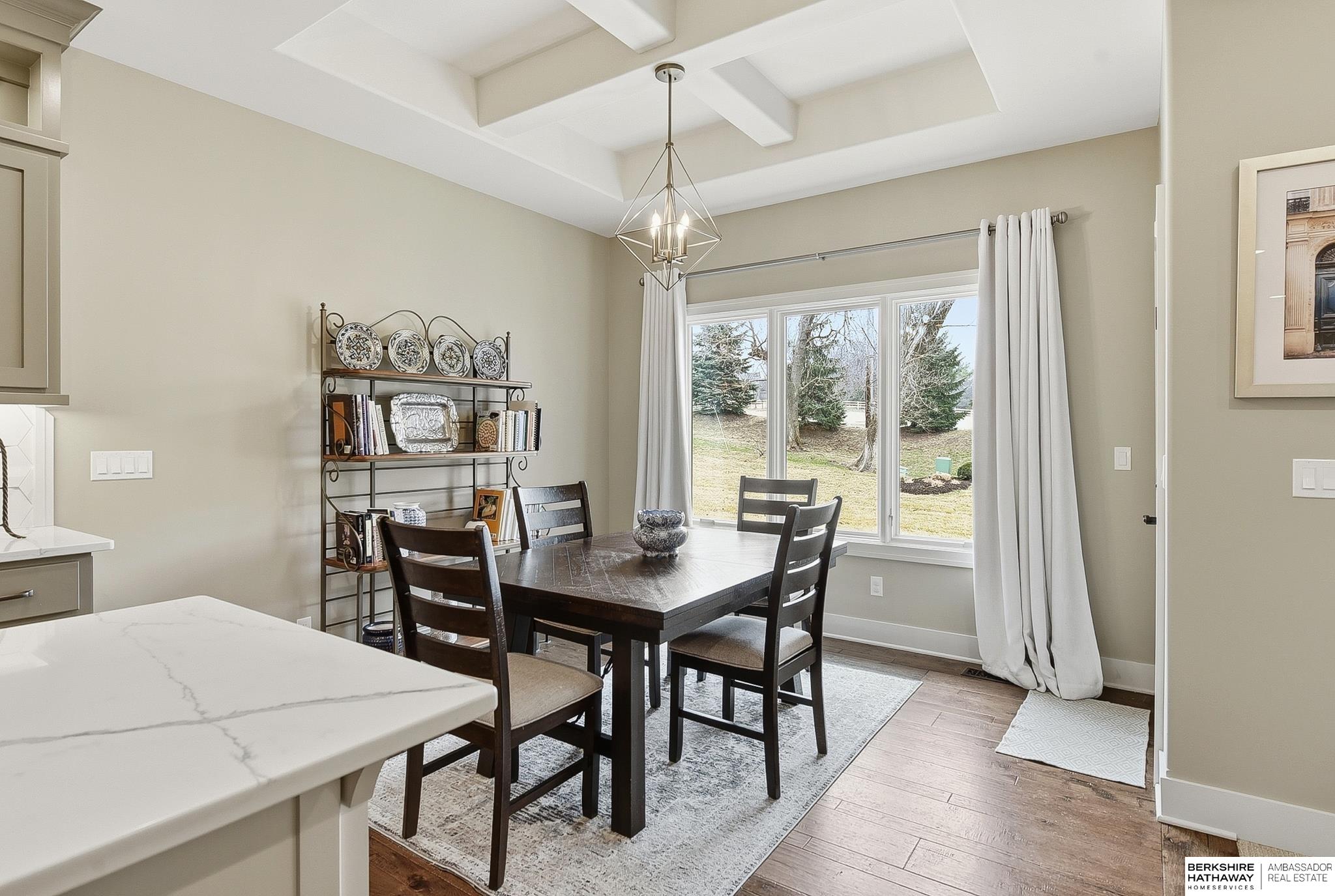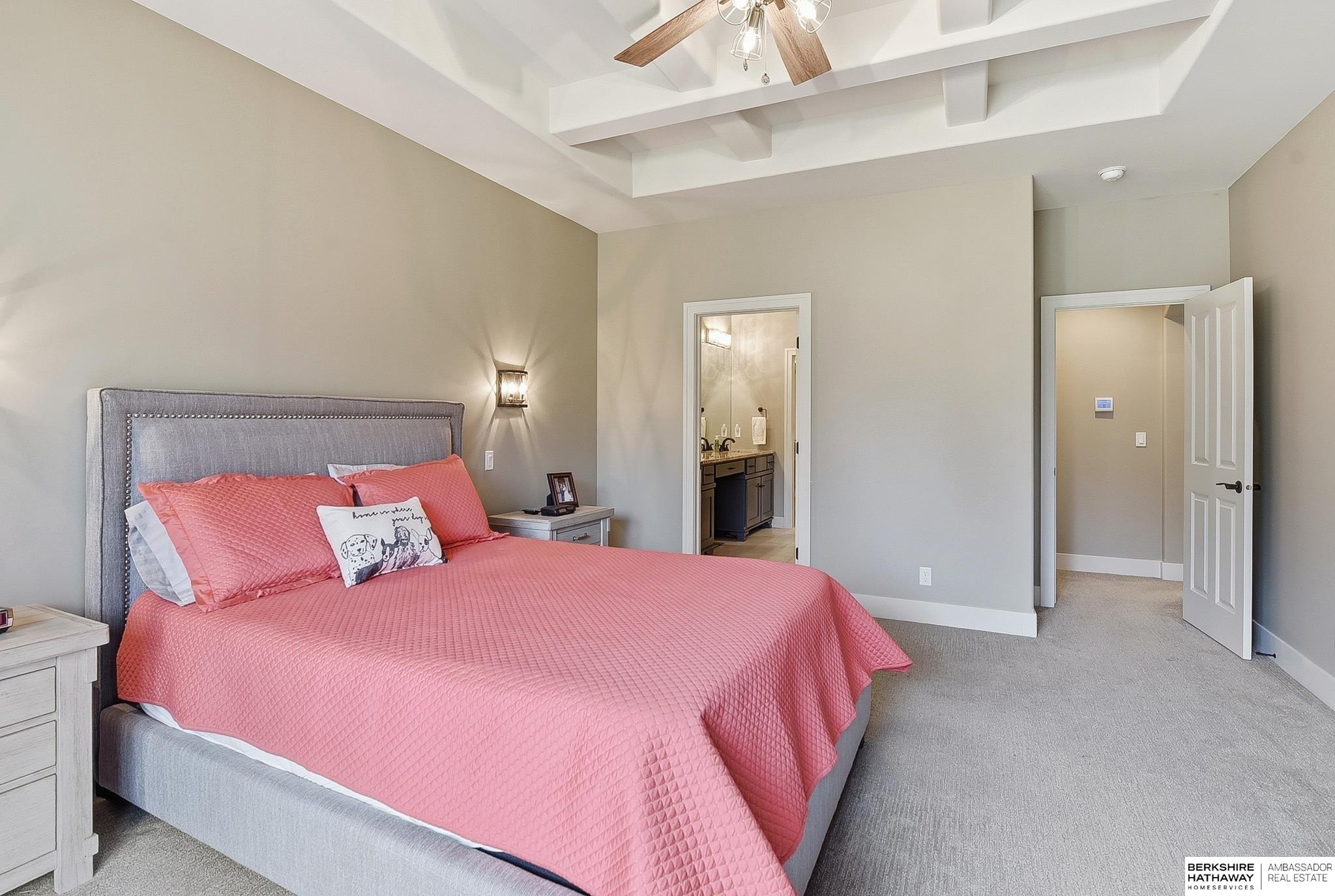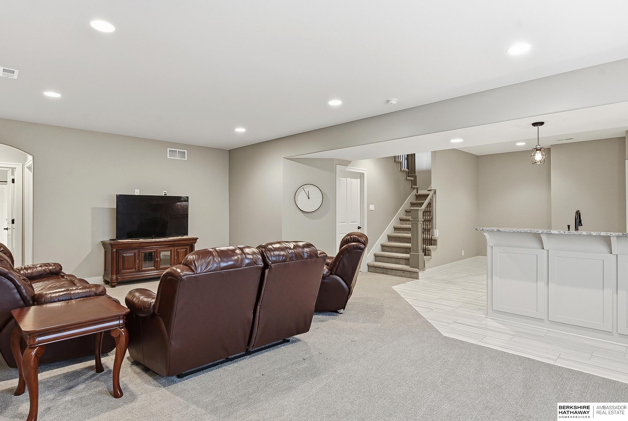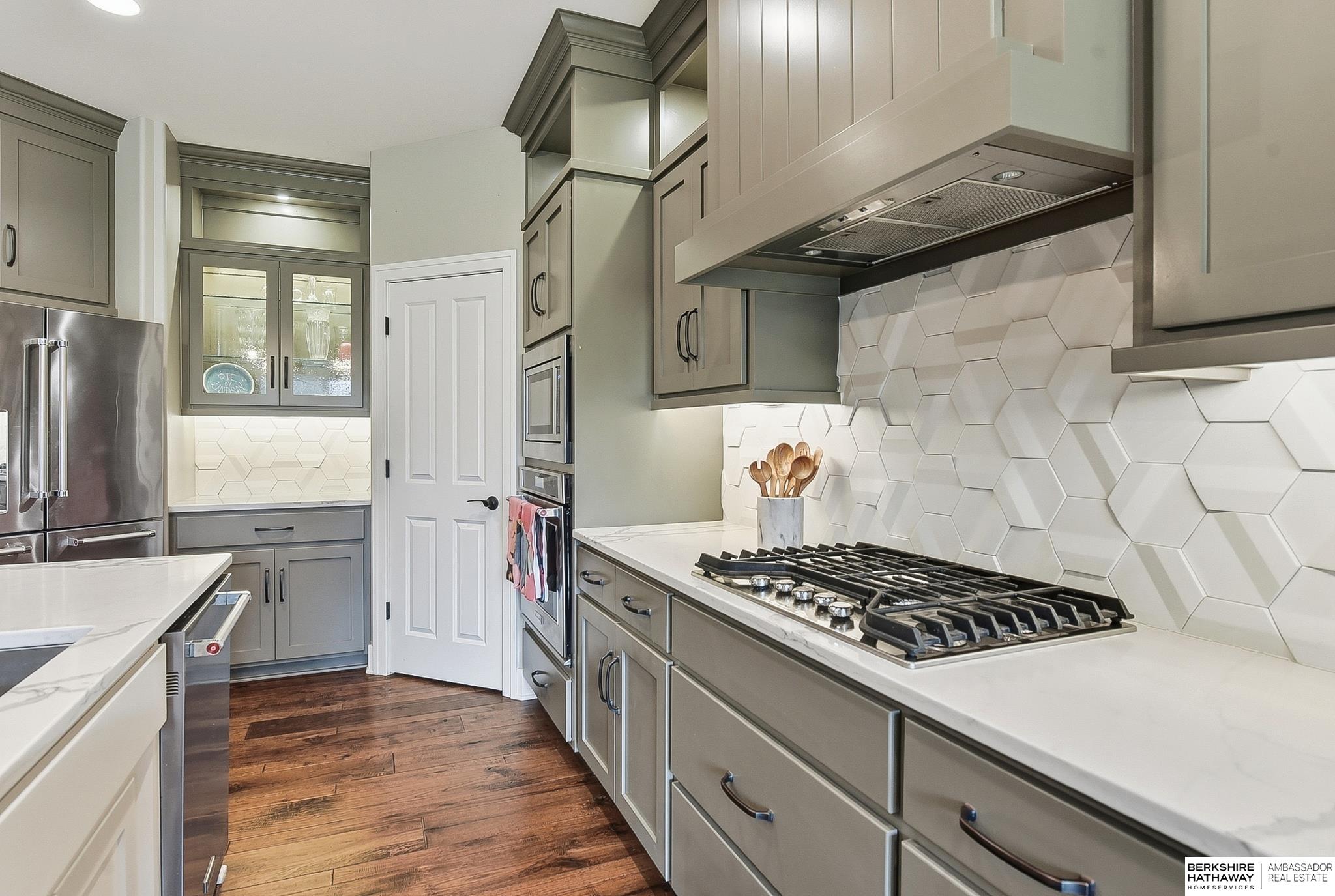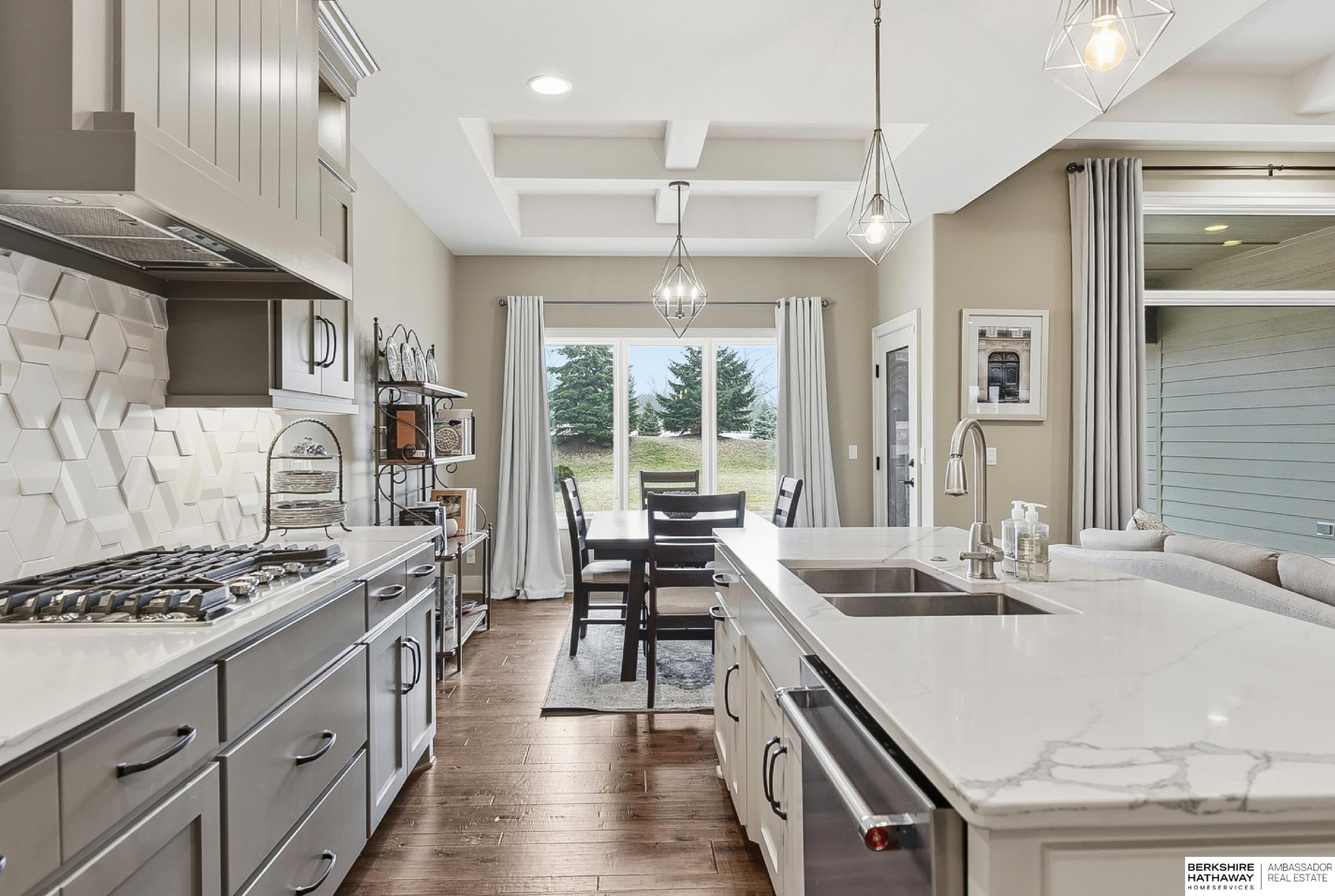 Newly Listed and OPEN Saturday & Sunday from 12-2! Welcome to this gorgeous, high quality construction Southpointe Estates Villa! Quiet street with no rear neighbors, this home has so much to offer. Beautiful kitchen with custom floor to ceiling cabinets, quartz countertops, gas range and large center island. The primary suite overlooks the flat, landscaped backyard and has en suite bathroom and large walk-in closet. There is also an office on the main floor with a vaulted ceiling and loads of natural light. Fully finished lower level has a huge wetbar and opens to rec room for gatherings or hobbies. Tucked away for privacy, but near to many Elkhorn area shops, restaurants and services, this one is a dream!