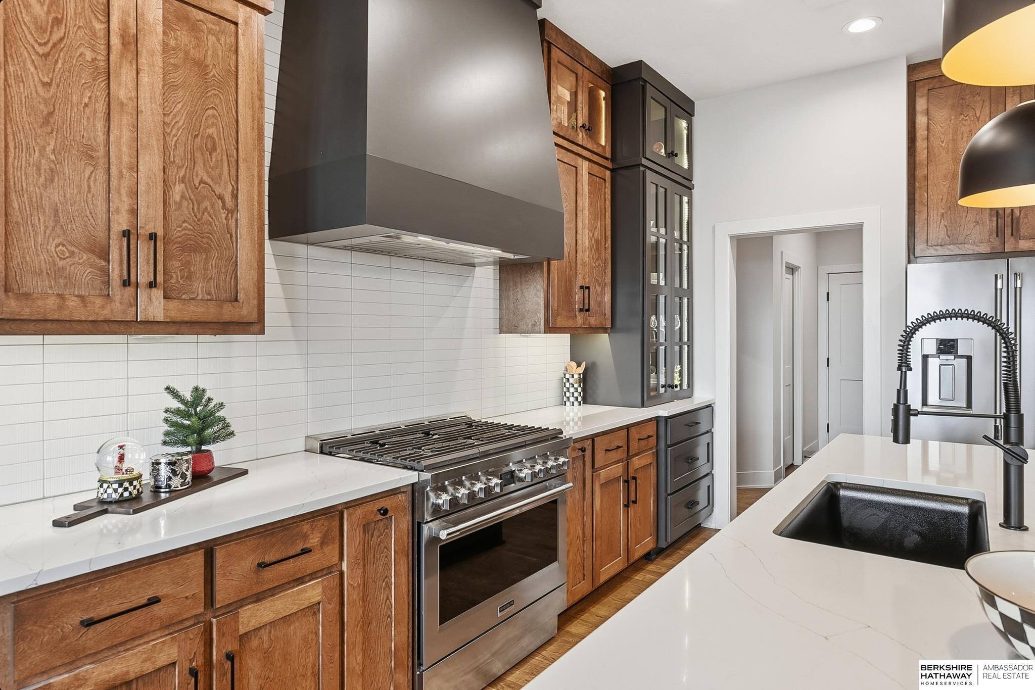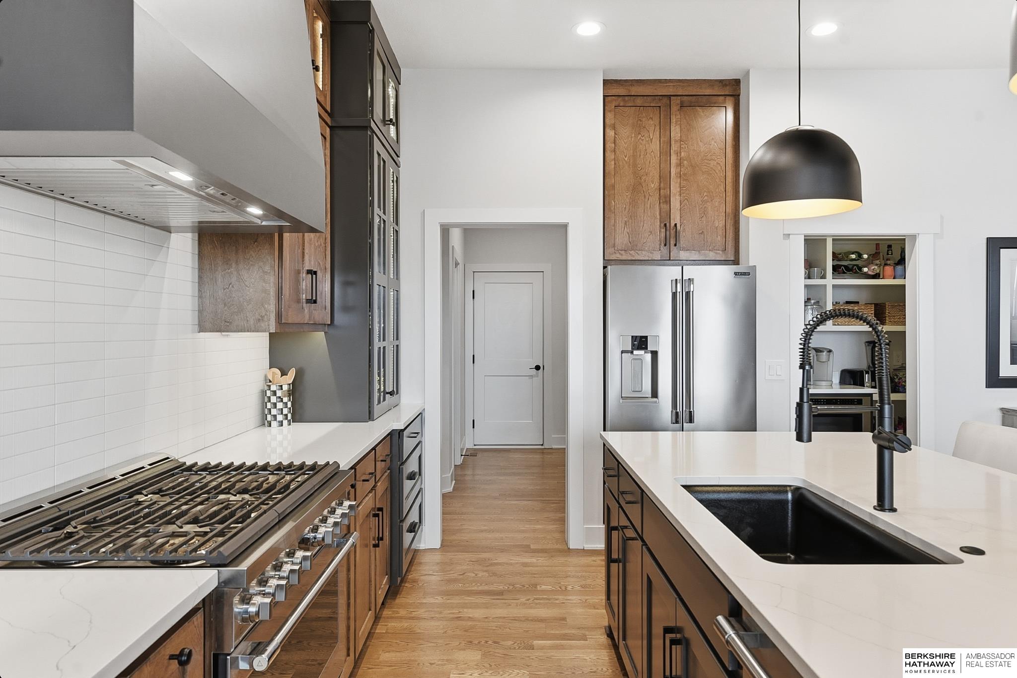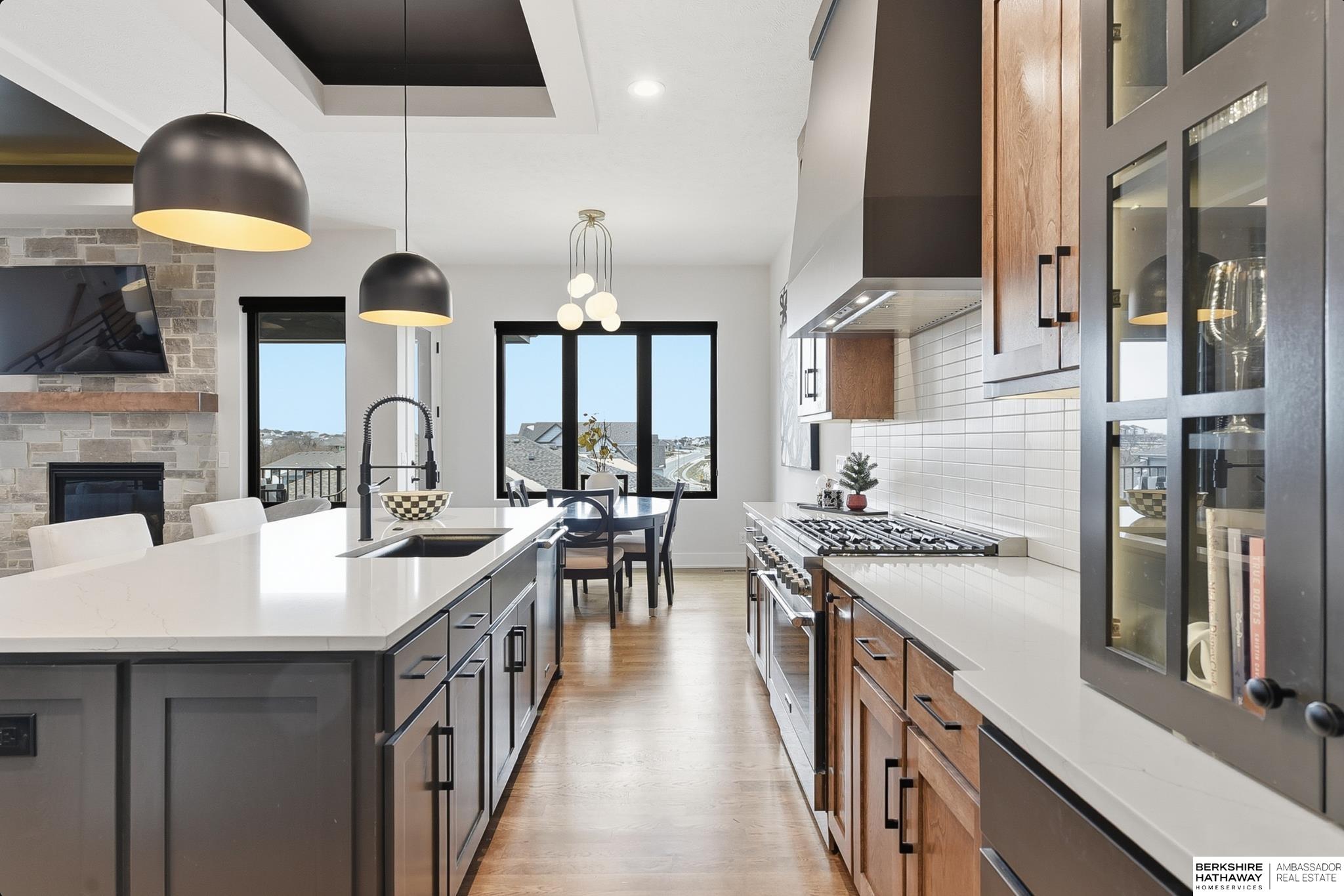 Incredible Value – Priced Under 2024 Appraisal + All the Extras of Fencing, Landscaping & Window Treatments! This stylish, modern craftsman ranch in Ashbury Creek is just one year new! Exceptional curb appeal w/side load orientation (4 car), gabled roof, stone & batten board siding, dbl door entry, cozy front porch & prof landscaping/iron fencing (2025). Sophisticated interior has 10ft ceilings (main), stone fireplace, wd floors, new blinds & modern light fixtures (2025). Designer kitchen has painted & birch cabinets (glass fronts w/lighting), quartz, SS appliances (36in, 6 burner gas range & custom hood), decorative tile splash, mega island w/seating & infinity pantry w/micro & coffee bar. Dinette opens to covered deck. Drop zone & laundry w/sink off kitchen. Primary suite has 3/4 bath w/WI tile shwr, dbl vanity (quartz) & WI closet. Beds 2 & 3 (main) w/easy access to full hall bath. Finished walkout bsmt has family & rec rms (wet bar), beds 4 & 5, full bath & storage rm. Impressive!