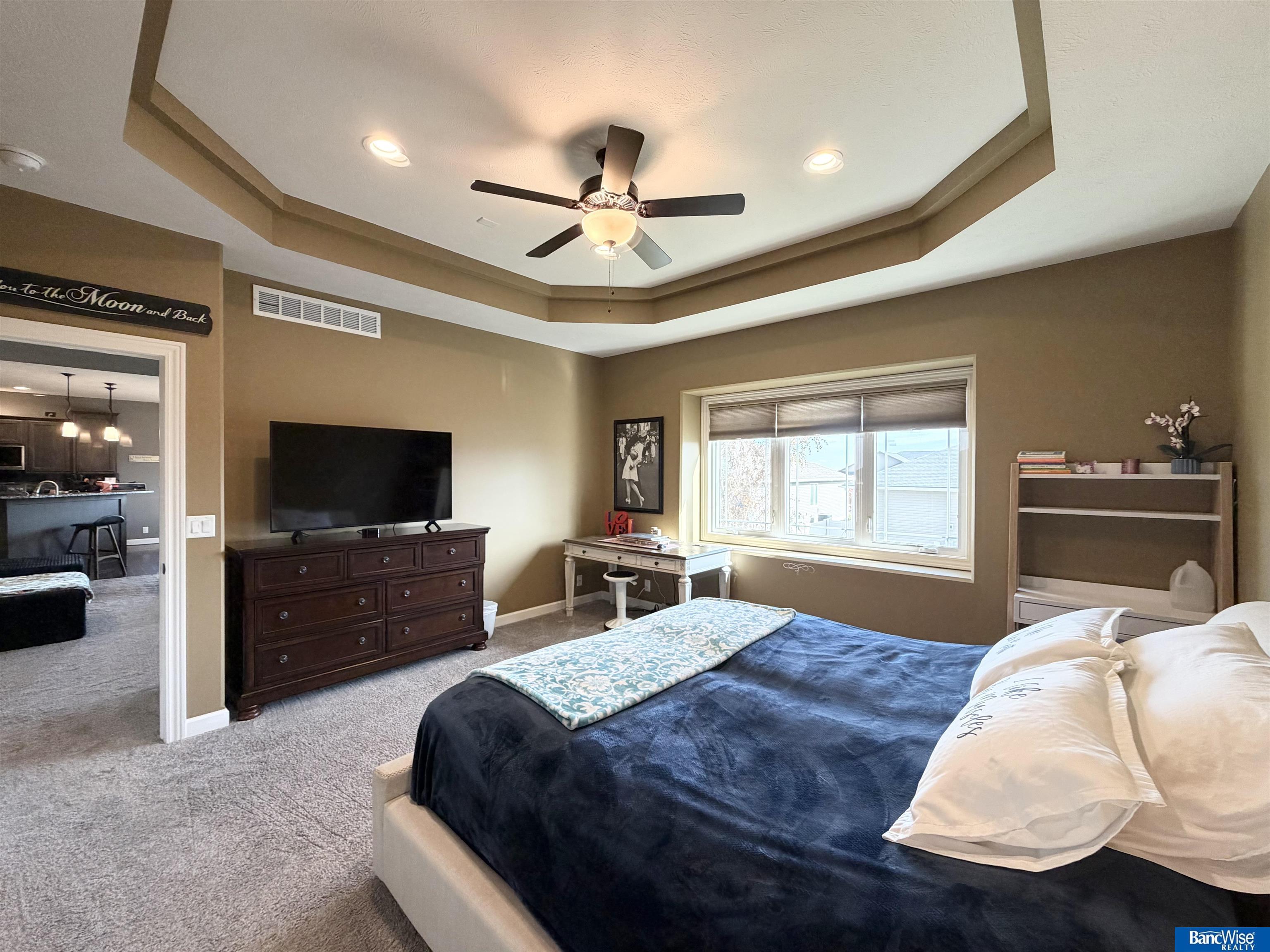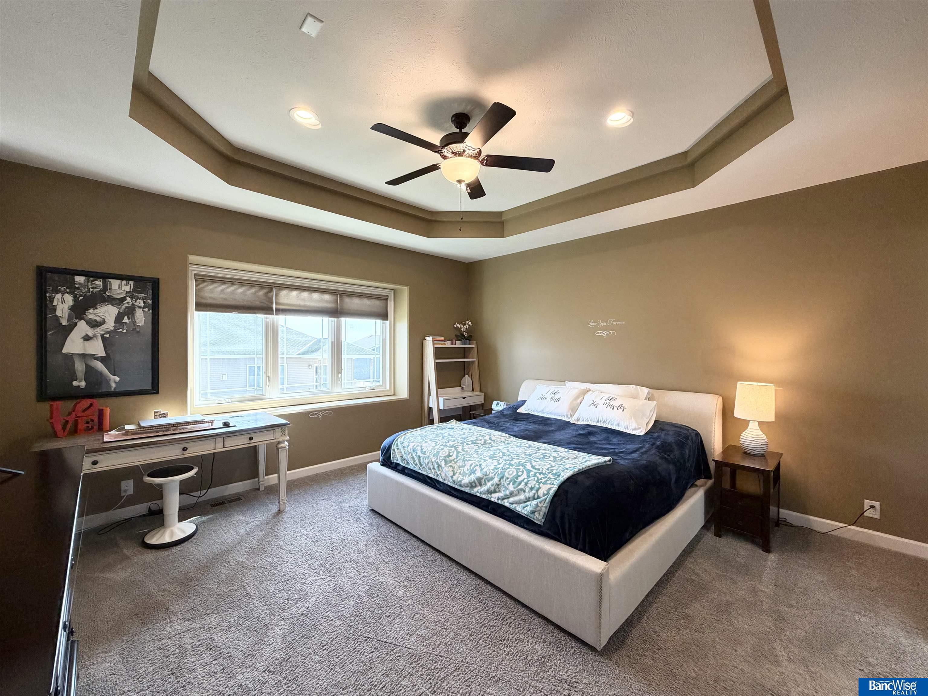 Welcome to this stunning home located in Waterford Estates! Impeccably maintained & move-in ready, this home offers beautiful design & layout. Interior features include vaulted & coffered ceilings, enormous bedrooms w/ walk-in closets, ample storage, and main floor laundry. The kitchen boasts a large walk-in pantry and newer stainless steel appliances. The primary bath features a 6 ft air tub, a walk-in tile shower, and spacious walk-in closet. The daylight basement has two large bedrooms and a spacious family room complete with a wet bar. Exterior features include a beautifully landscaped yard w/ a covered deck, patio, and storage shed under the deck. Additional highlights include Vivint security system, Bali two-way shades, central vac, whole house humidifier, 4 stall garage, and custom exterior lighting. New water heater, water softener, and R/O all in 2025.