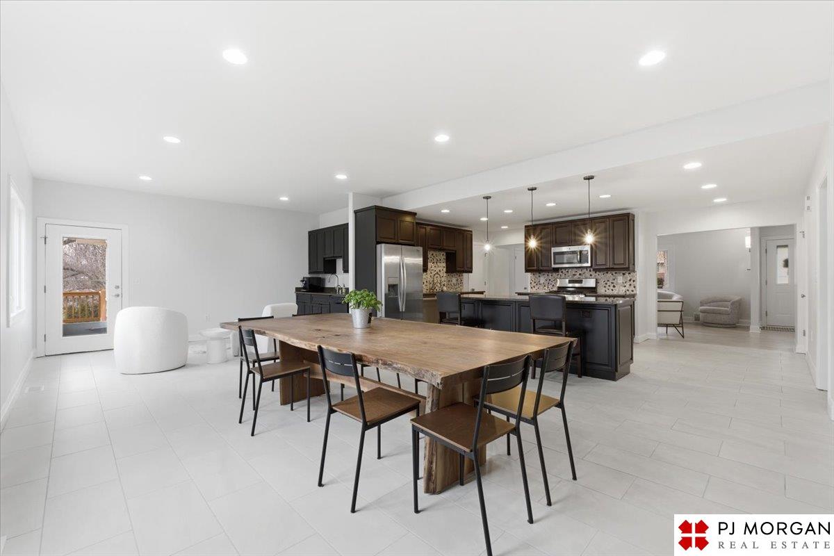 This renovated Skylark Heights 5 bedroom, 3 bath, 2.5 car walkout ranch home is a rare find! The main floor features 3 beds and 2 bathrooms, original refinished hardwood floors, recessed lighting, a fireplace, and a wet bar. The kitchen is perfect for entertaining with a large island, stainless steel appliances, & opens to the massive dining area. Just off the kitchen is a wet bar with second dishwasher and direct access to the large deck. The primary suite has a large walk-in closet, 3/4 bath, and double vanity. Main floor laundry is a possibility as well. Fully finished lower level featuring the 4th and 5th bedrooms, ¾ bath, a second fireplace, large rec room, plus massive bonus room that walks out to a fully enclosed three-season room, and concrete patio. Whether you like to entertain inside or outside, this home has everything you could ask for! Attached shed/half car garage for extra storage! Come and check it out at the Open House Sunday, March 8th from 1-3 PM!