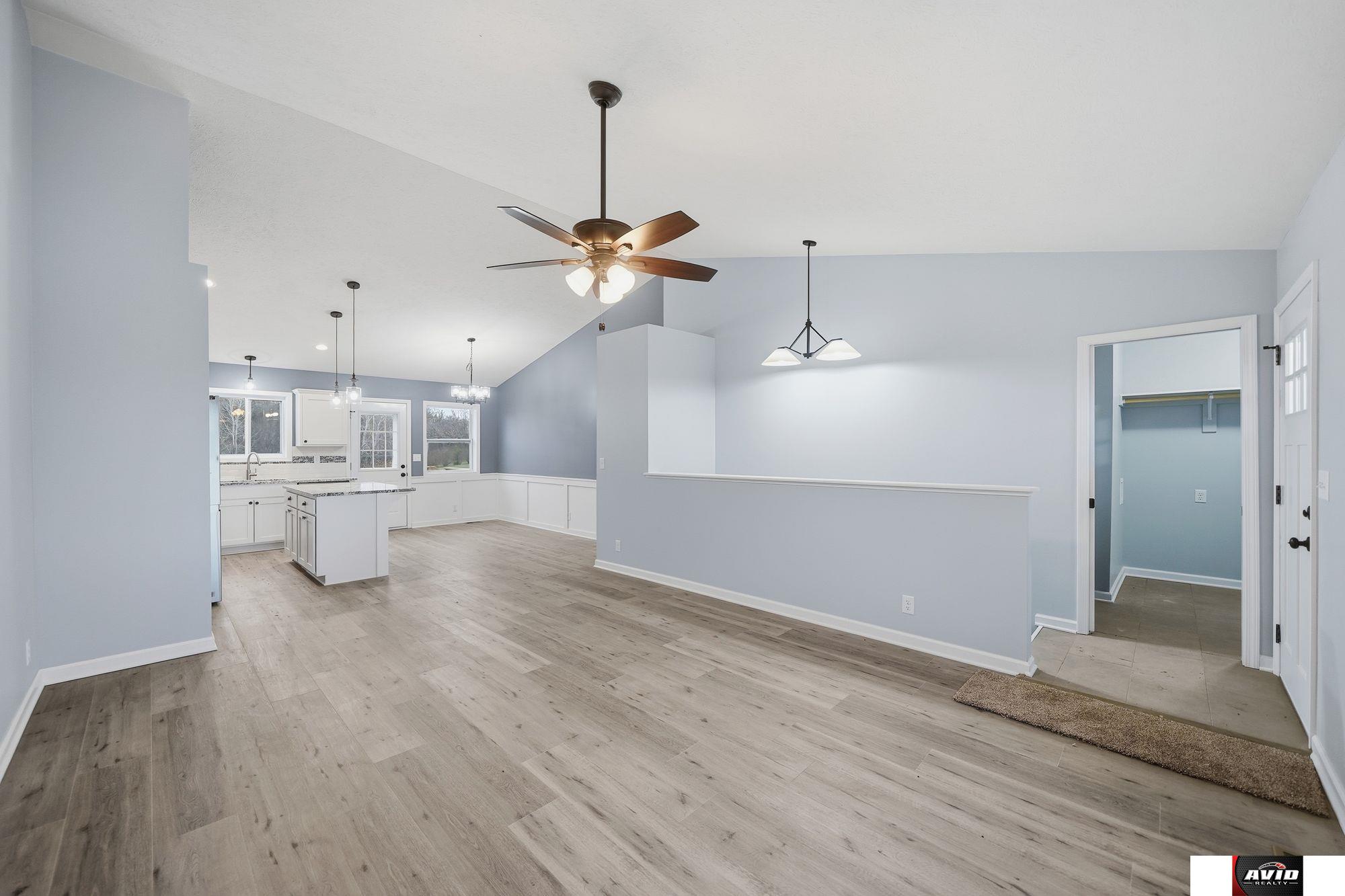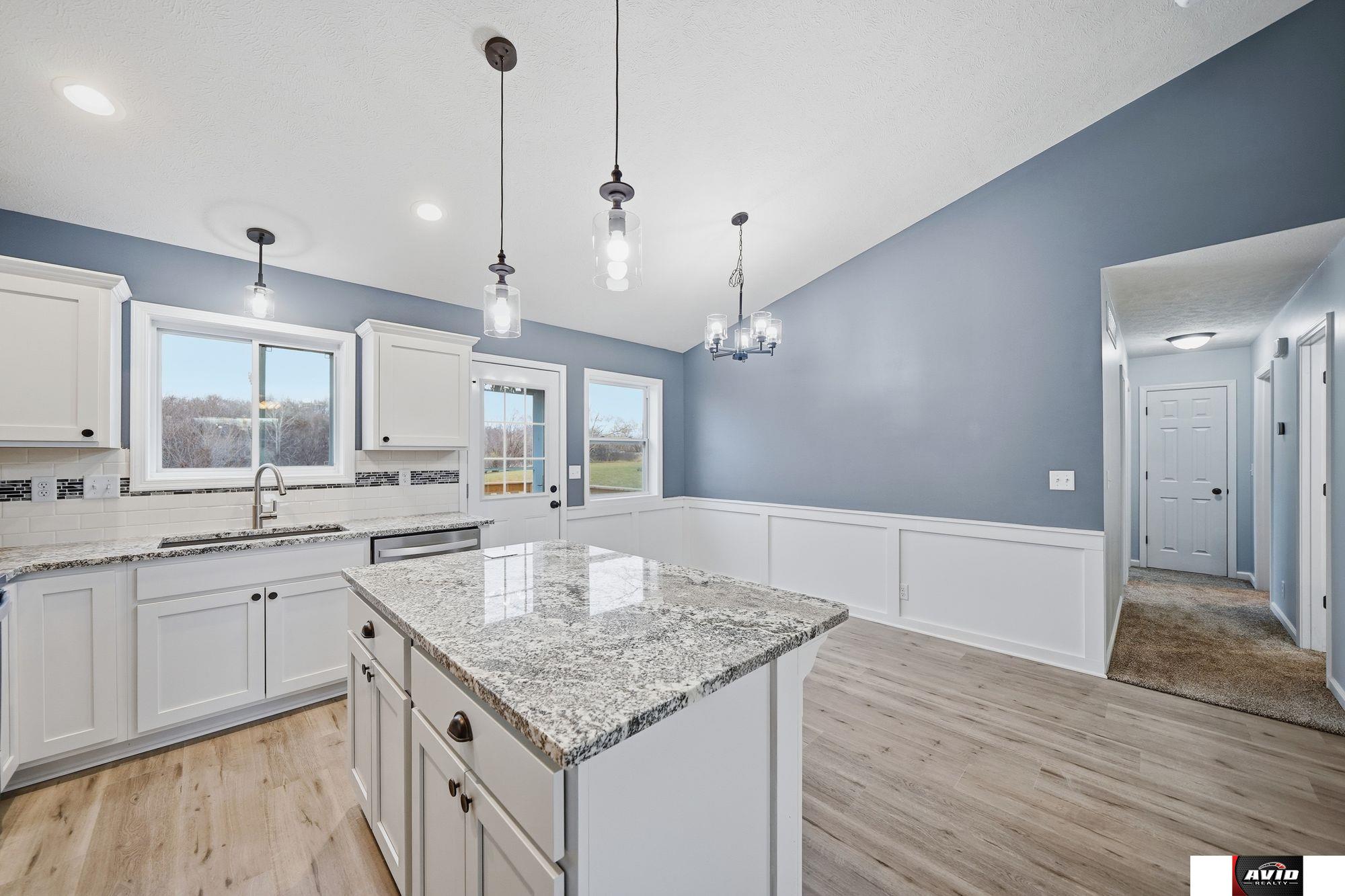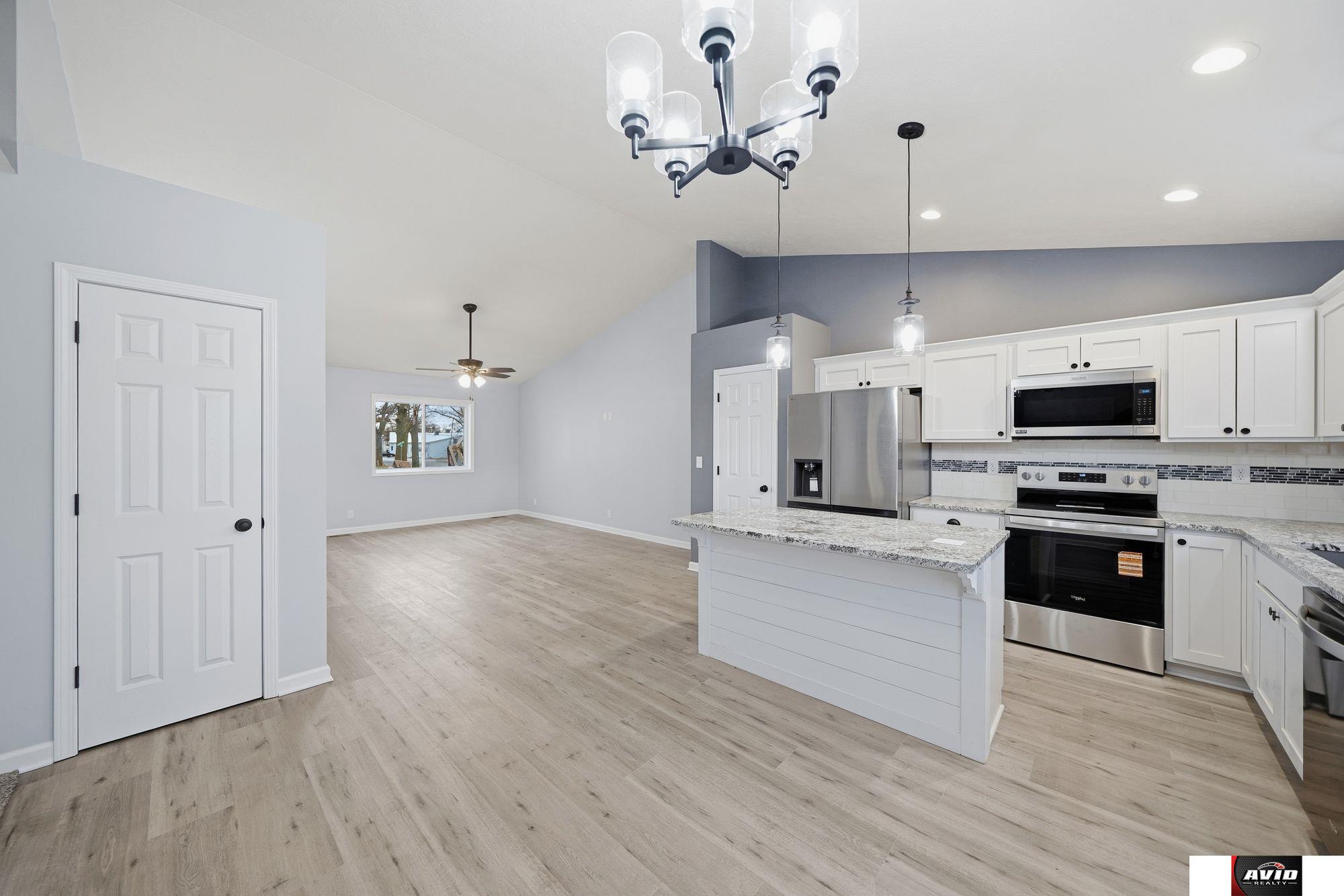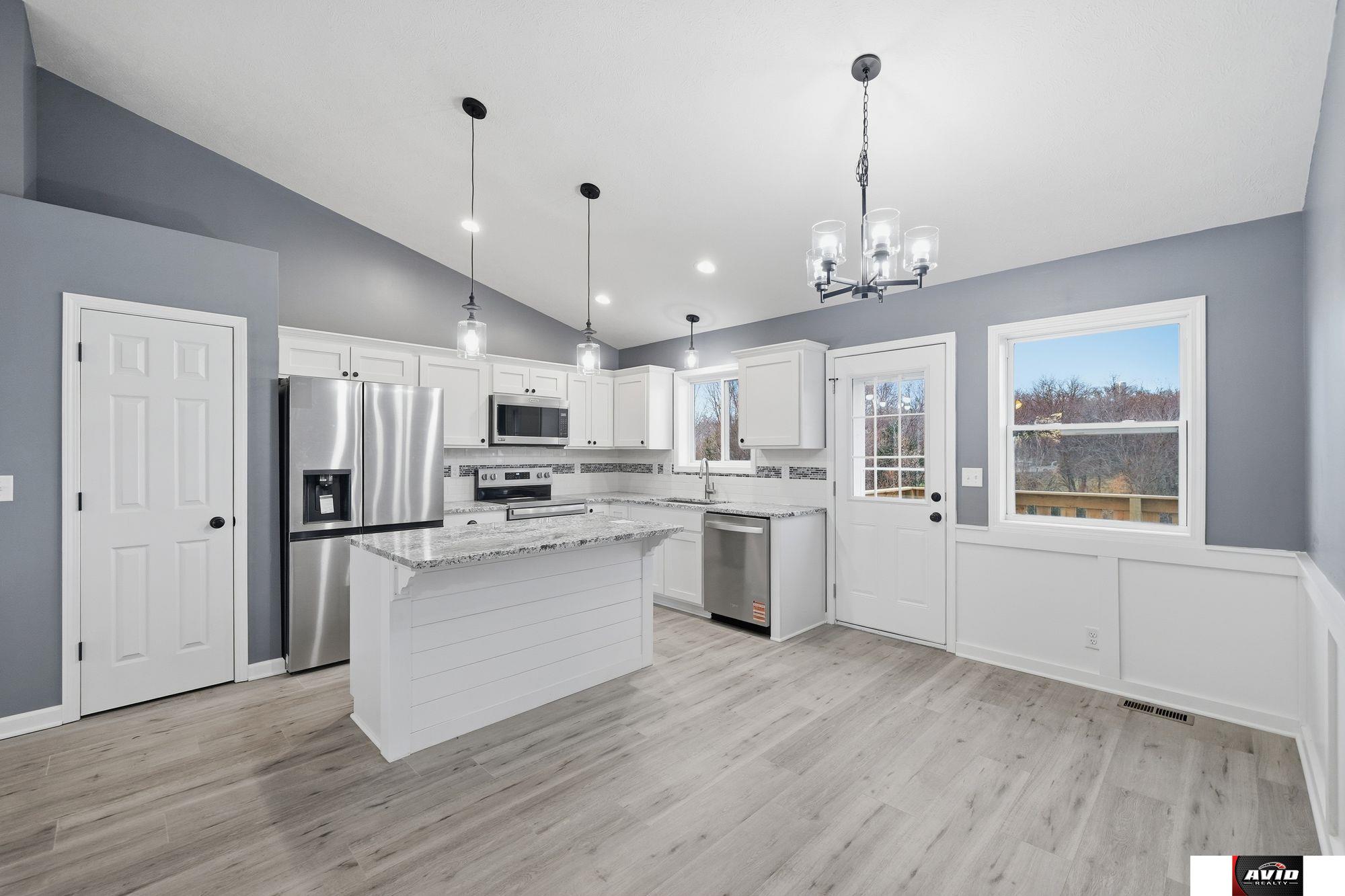 Welcome to this beautiful new home with vaulted ceilings, natural light, and open concept main floor living! There are granite countertops throughout, a pantry, new stainless steel appliances, eat-in island, dining area, and a spacious living room. The main floor primary suite has a large walk-in closet and bathroom with double sinks and a walk in shower. There are two more bedrooms, a full bathroom, and laundry all on the main floor! Downstairs you will find 1,216 SF of daylight basement ready to be finished to your desire and build some equity! There is also an egress window to add a 4th bedroom and a rough in for a 3rd bathroom. Inside the 2 car attached garage, there is a brand new John Deer riding lawnmower that goes with this home! And one of the best parts, there is a large backyard with a deck that backs onto dense trees and greenery making for a lovely view! Builder is offering one year builders warranty. This one won't last long!