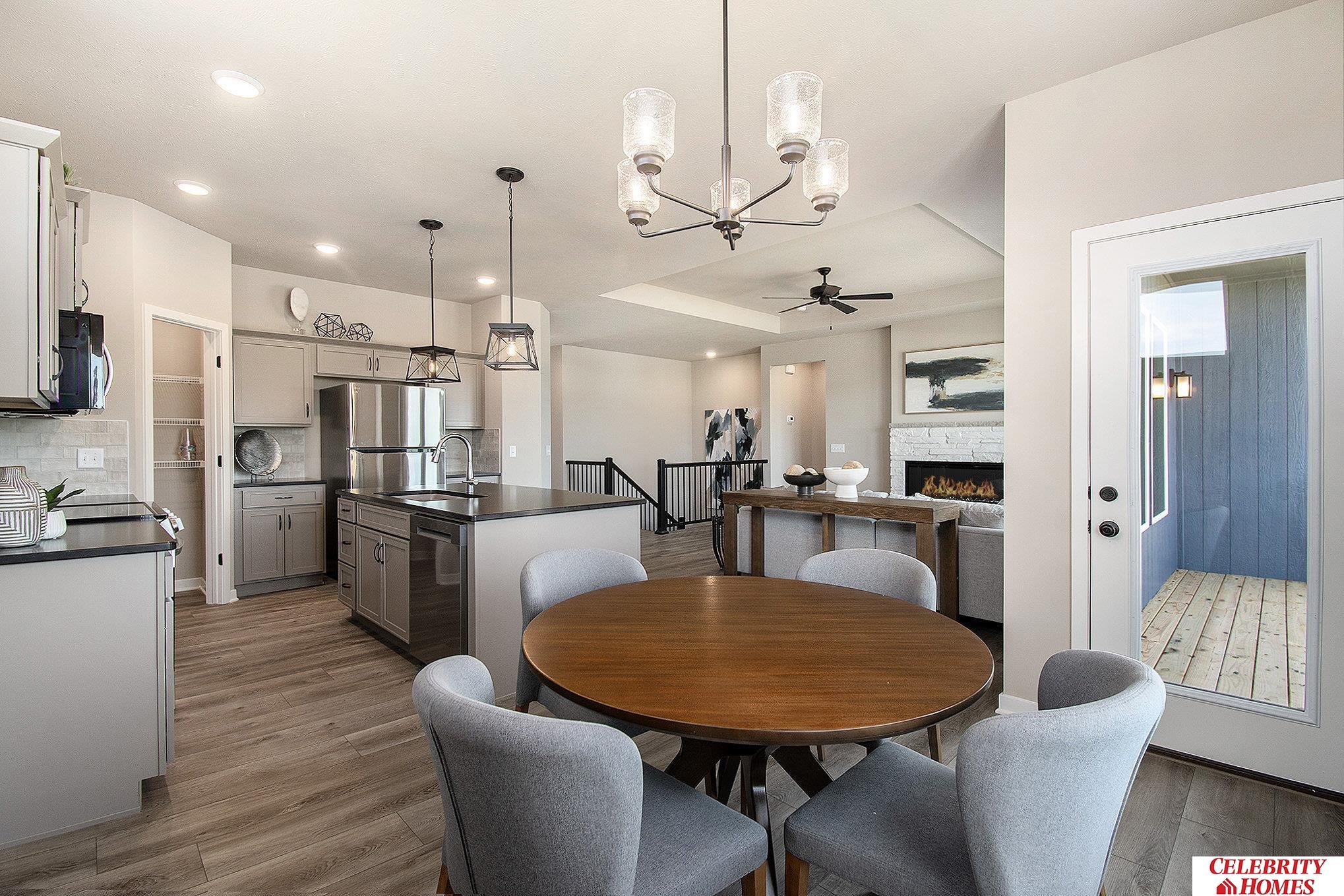 The Cascade by Celebrity Homes. This ranch design is warm and welcoming as soon as you enter! The Eat-In Island Kitchen boasts of counter space, a spacious pantry and Dining Area. The tucked away Drop Area leads to the garage is an added bonus. From the Drop Area you have access to a large Laundry Room… And where does the pocket door lead? To the Owner Suite Closet! The Great Room has an Electric Linear Fireplace glowing a flame and blowing warm air. The Owner’s Suite is appointed with an oversized walk-in closet, ¾ Privacy Bath Design with Dual Vanity. Features of this 3 Bedroom, 2 Bath Home Include: 3 Car Garage with Garage Door Openers and a Bonus Space, Refrigerator, Washer/Dryer Package, Quartz Countertops, Luxury Vinyl Panel Flooring (LVP) Package, Sprinkler System, Extended 2-10 Warranty Program, 3/4 Bath Rough-In, Professionally Installed Blinds, and that’s just the start! (Pictures of Model Home) Price may reflect promotional discounts, if applicable.