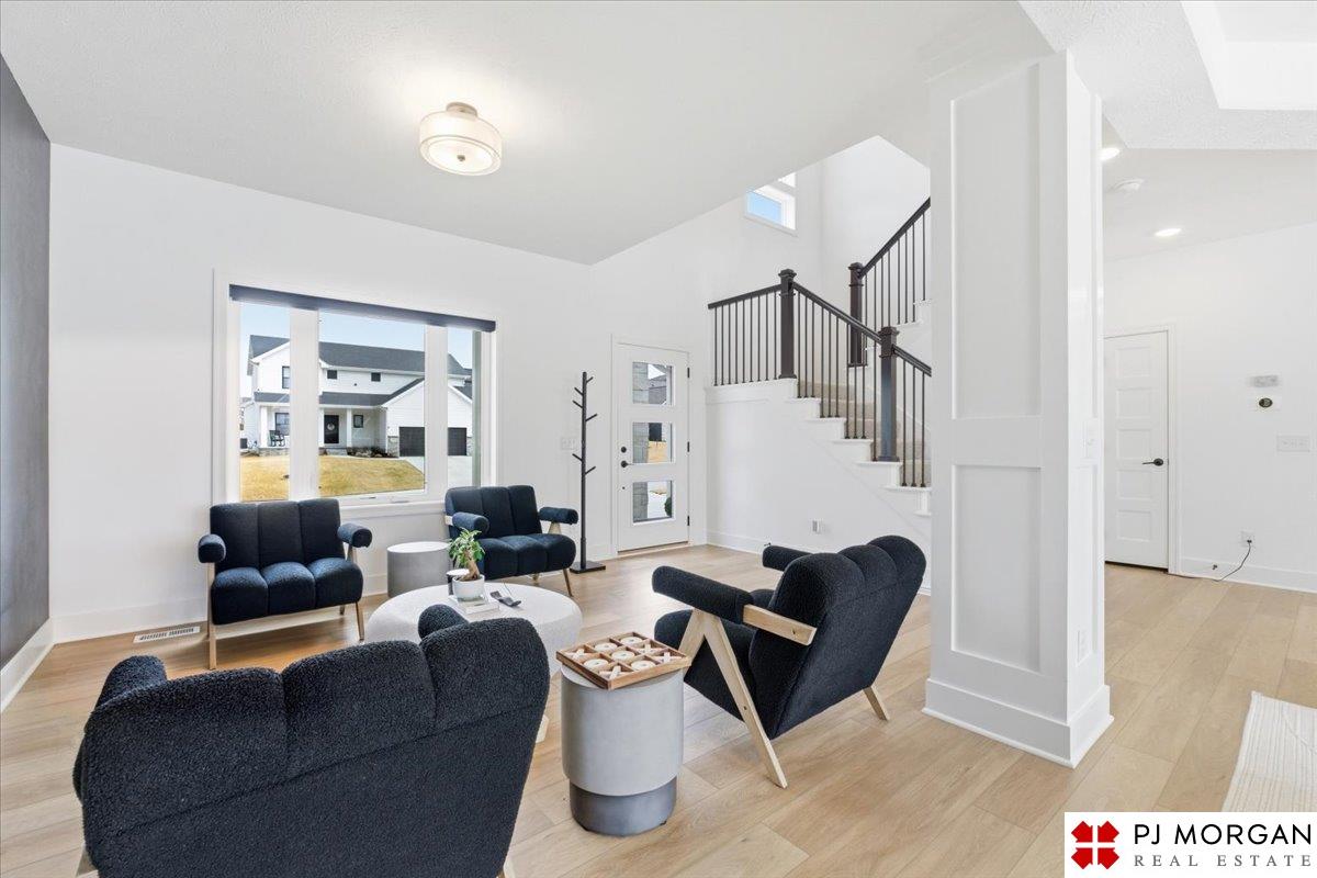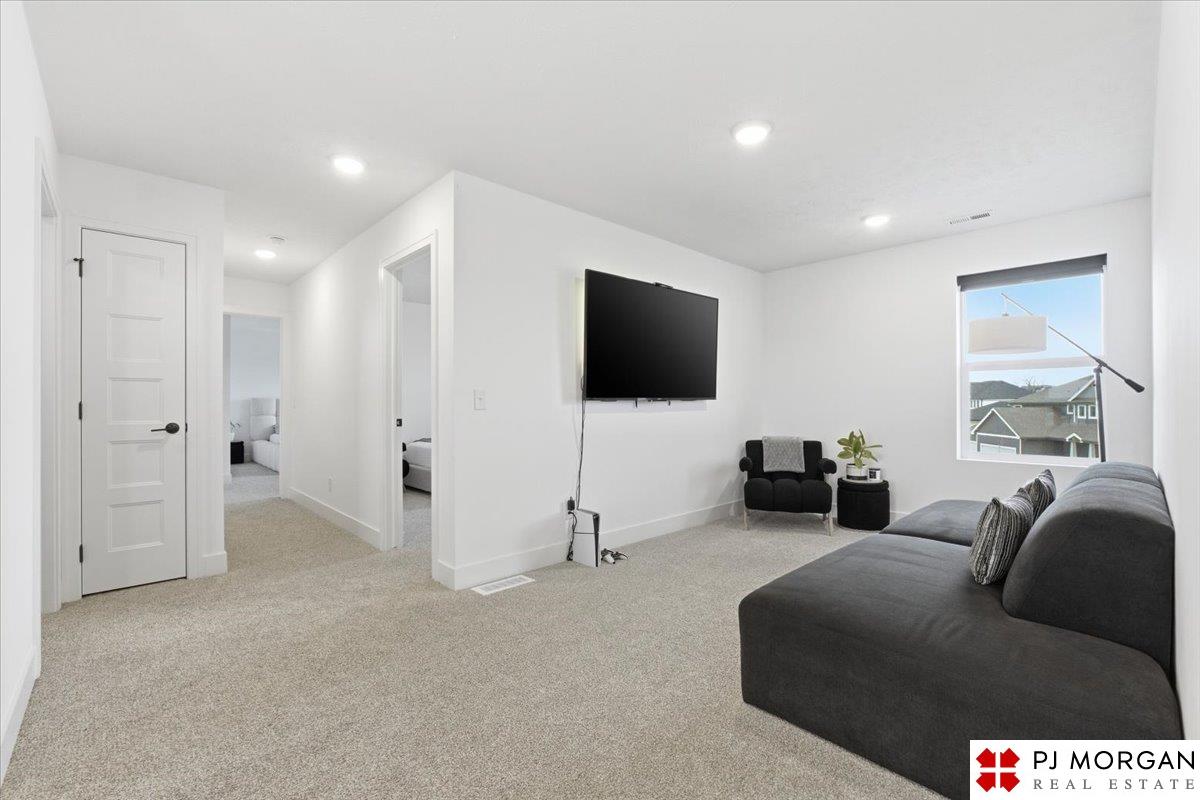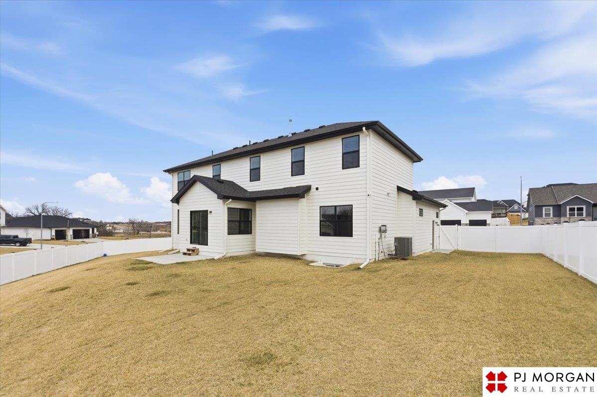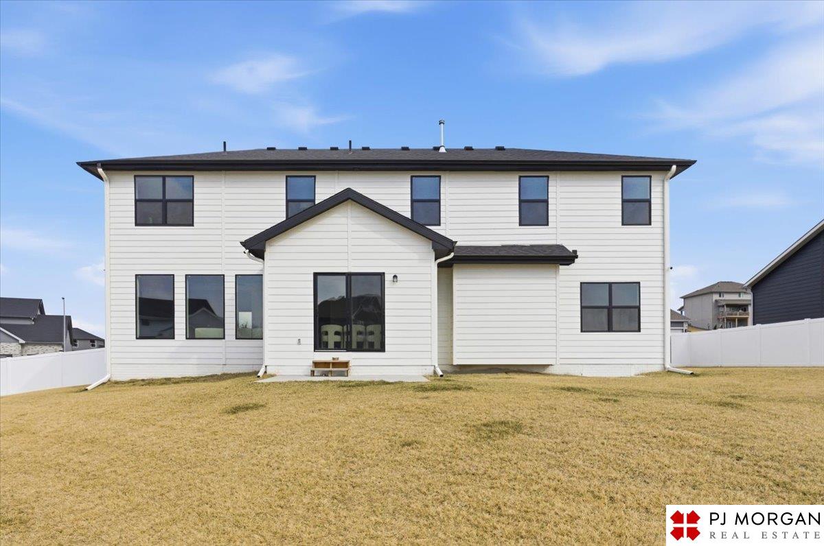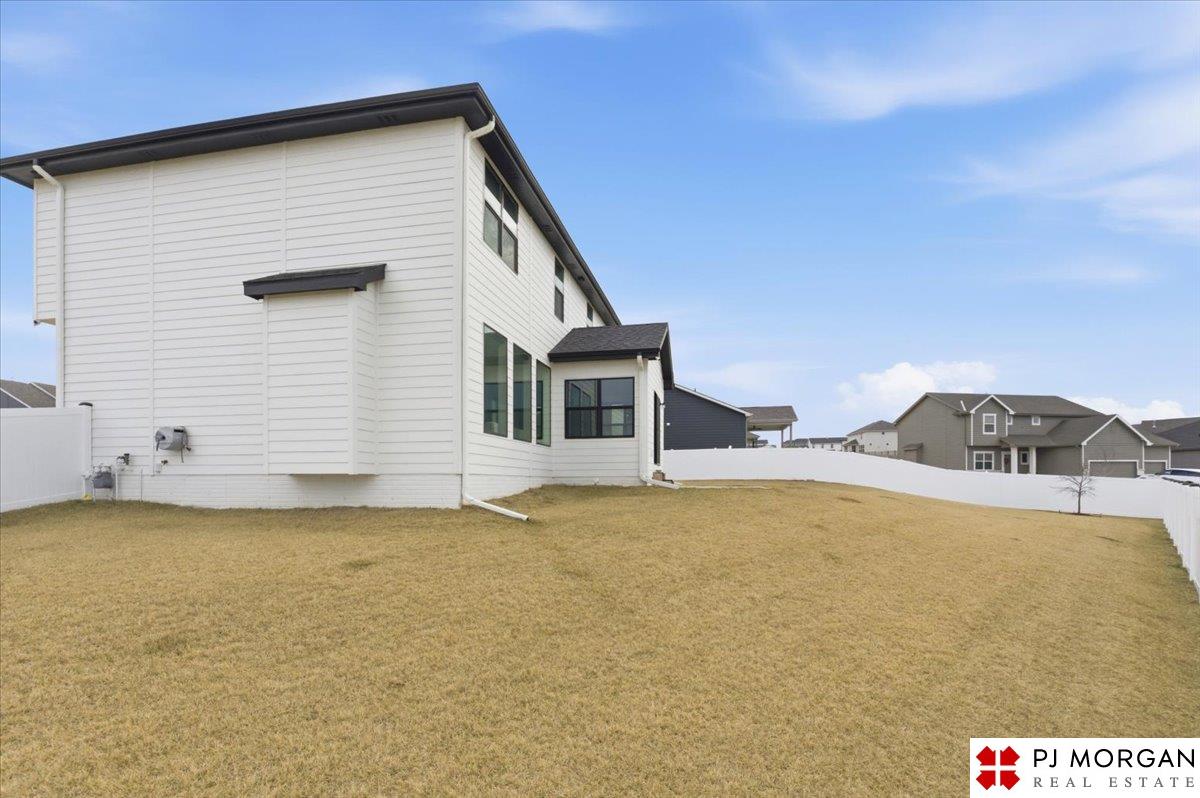 Stunning 2 Story on a corner lot. Move-in ready 5 bed, 3 bath 3 car two-story in Sumtur Crossing offers modern finishes and an open and spacious floor plan perfect for entertaining. Beautiful finishes with LVP flooring and 9' ceilings. Living room with floor-to-ceiling tiled fireplace and built-in shelving. Upgraded kitchen includes white cabinets, quartz countertops, tile backsplash, large island, eat-in dining area, upgraded appliances and walk-in pantry. Main level also includes a bedroom, drop zone and ½ bath. Upstairs has three additional bedrooms, flex room and full bath with dual sinks. Primary suite features a large walk-in closet, dual sinks, and a walk-in tiled shower with access to the laundry room. Custom blinds and upgraded windows provide added efficiency. Unfinished basement ready for your personal touches. Large backyard with a patio is fully fenced yard with a sprinkler system. Located in the Papillion-La Vista school district. Near shopping, restaurants and much more.