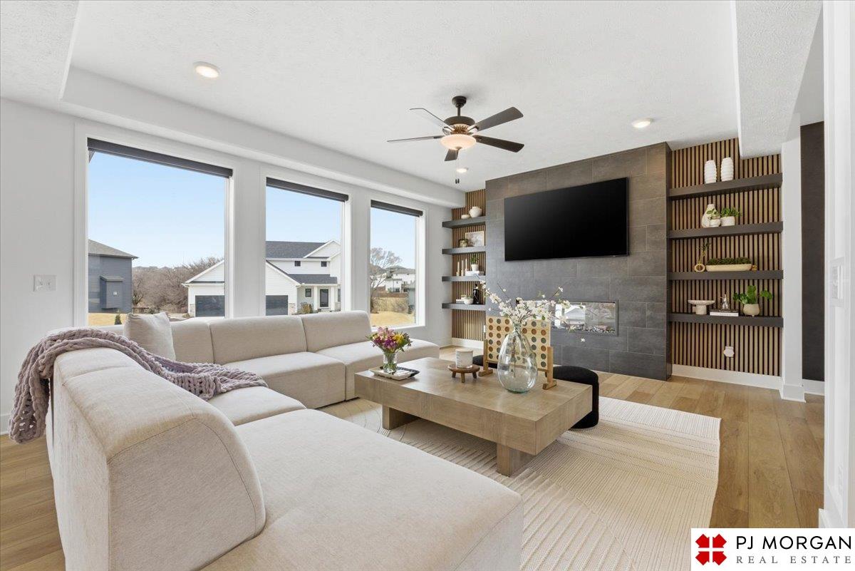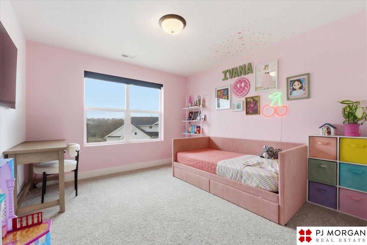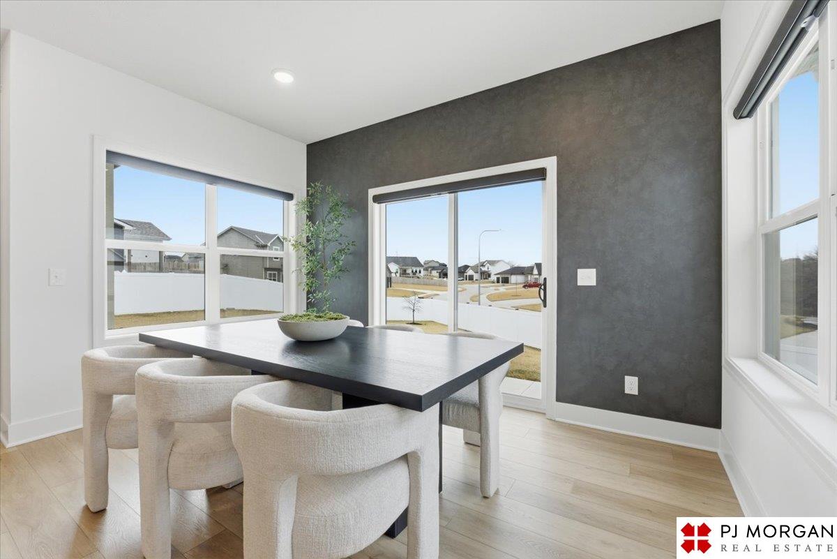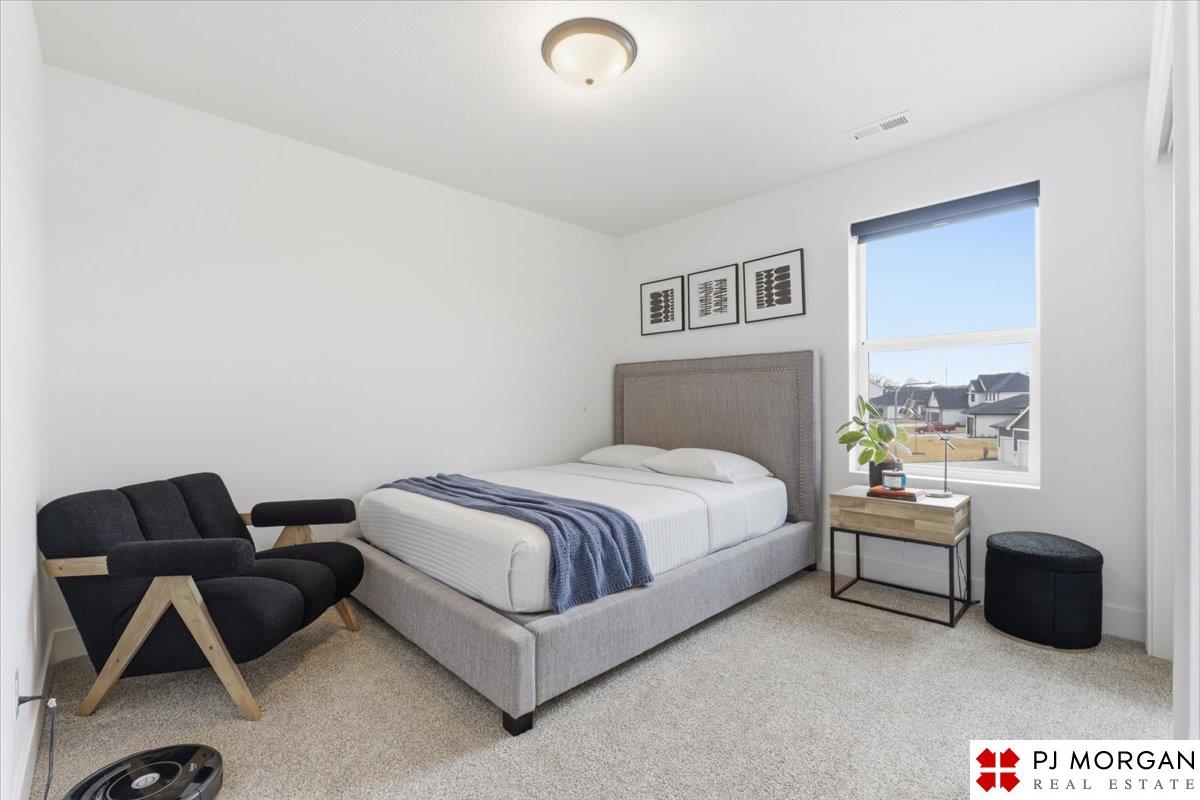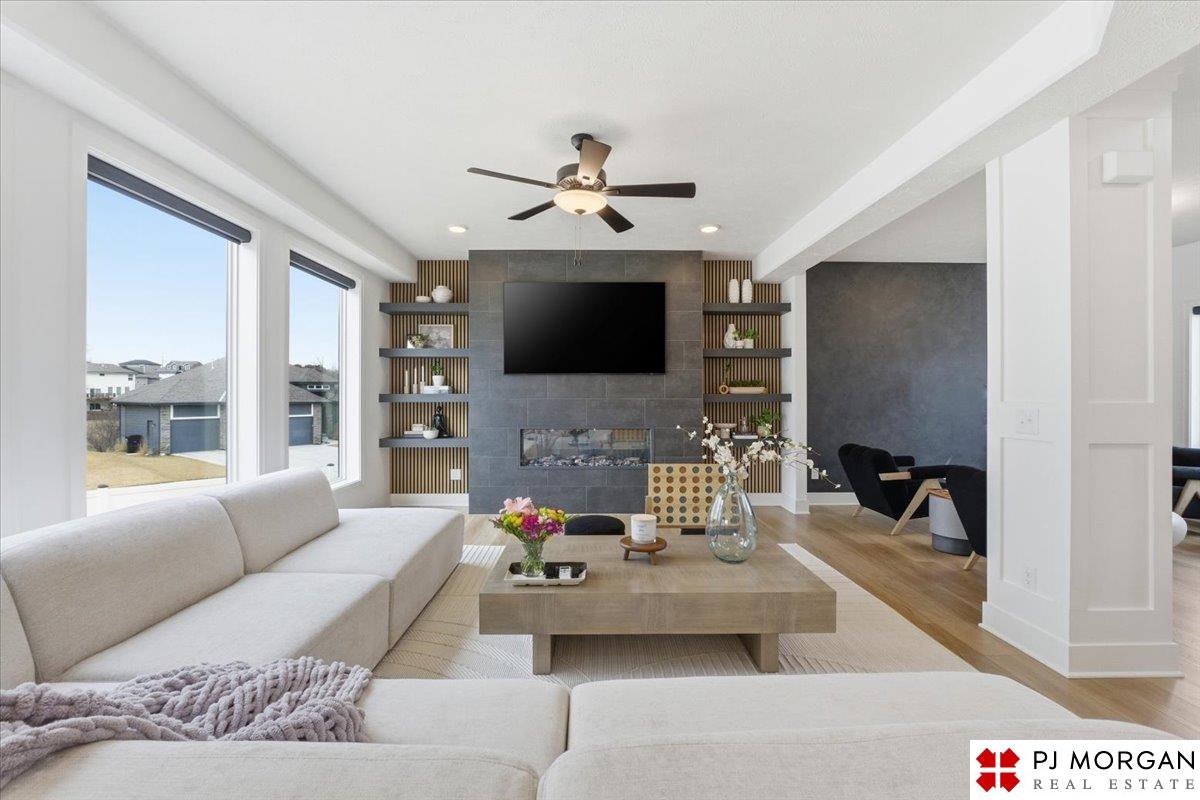 Stunning 2 Story on a corner lot. Move-in ready 5 bed, 3 bath 3 car two-story in Sumtur Crossing offers modern finishes and an open and spacious floor plan perfect for entertaining. Beautiful finishes with LVP flooring and 9' ceilings. Living room with floor-to-ceiling tiled fireplace and built-in shelving. Upgraded kitchen includes white cabinets, quartz countertops, tile backsplash, large island, eat-in dining area, upgraded appliances and walk-in pantry. Main level also includes a bedroom, drop zone and ½ bath. Upstairs has three additional bedrooms, flex room and full bath with dual sinks. Primary suite features a large walk-in closet, dual sinks, and a walk-in tiled shower with access to the laundry room. Custom blinds and upgraded windows provide added efficiency. Unfinished basement ready for your personal touches. Large backyard with a patio is fully fenced yard with a sprinkler system. Located in the Papillion-La Vista school district. Near shopping, restaurants and much more.
