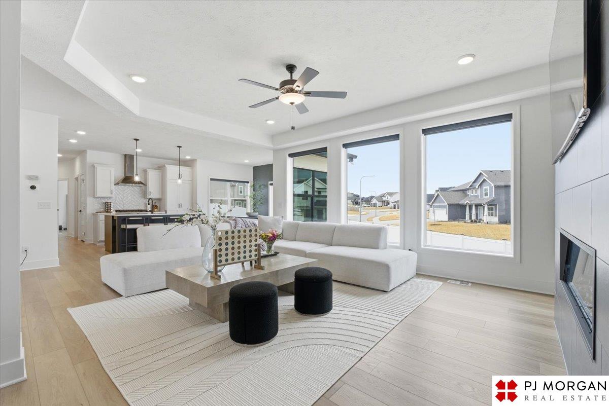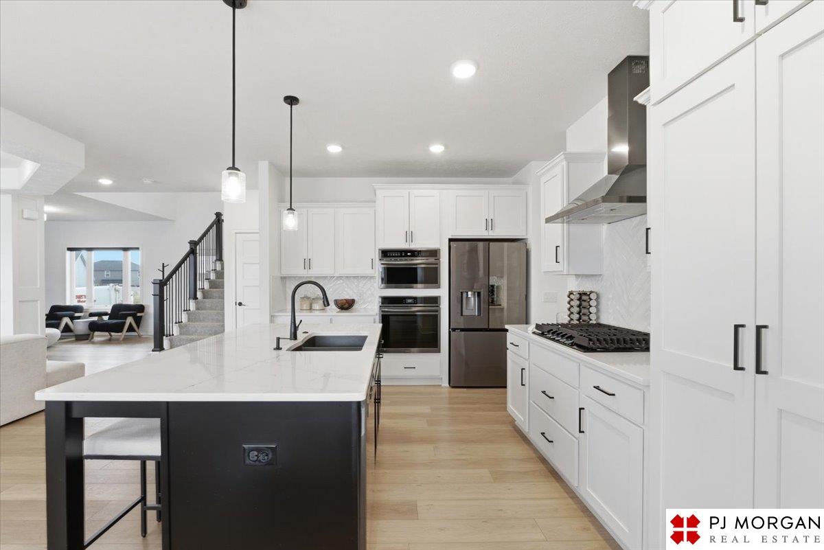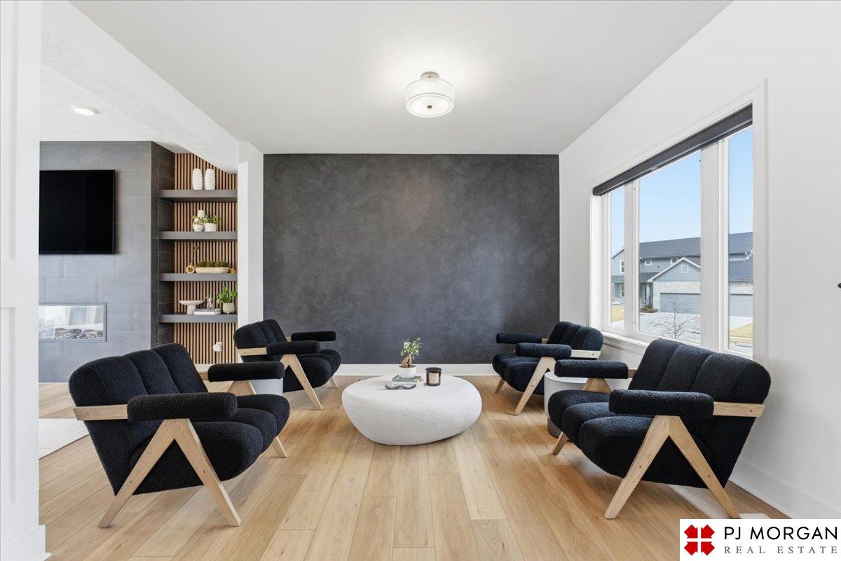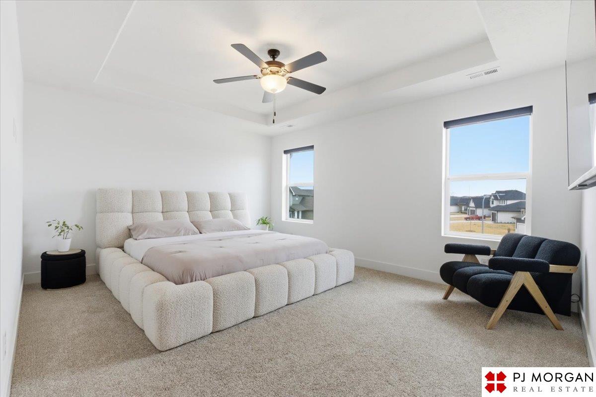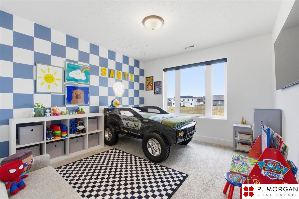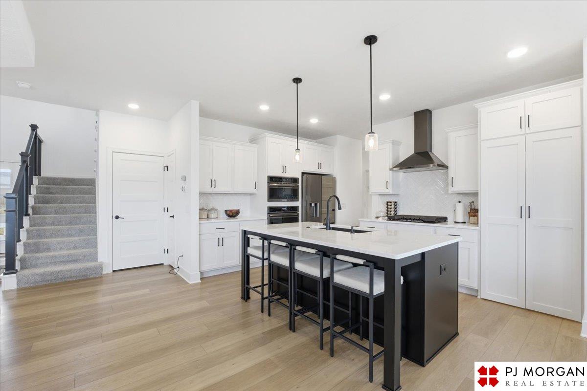 Stunning 2 Story on a corner lot. Move-in ready 5 bed, 3 bath 3 car two-story in Sumtur Crossing offers modern finishes and an open and spacious floor plan perfect for entertaining. Beautiful finishes with LVP flooring and 9' ceilings. Living room with floor-to-ceiling tiled fireplace and built-in shelving. Upgraded kitchen includes white cabinets, quartz countertops, tile backsplash, large island, eat-in dining area, upgraded appliances and walk-in pantry. Main level also includes a bedroom, drop zone and ½ bath. Upstairs has three additional bedrooms, flex room and full bath with dual sinks. Primary suite features a large walk-in closet, dual sinks, and a walk-in tiled shower with access to the laundry room. Custom blinds and upgraded windows provide added efficiency. Unfinished basement ready for your personal touches. Large backyard with a patio is fully fenced yard with a sprinkler system. Located in the Papillion-La Vista school district. Near shopping, restaurants and much more.