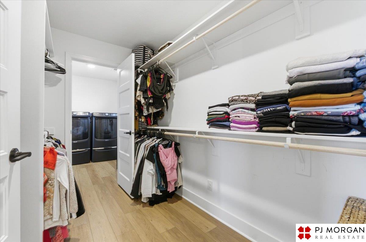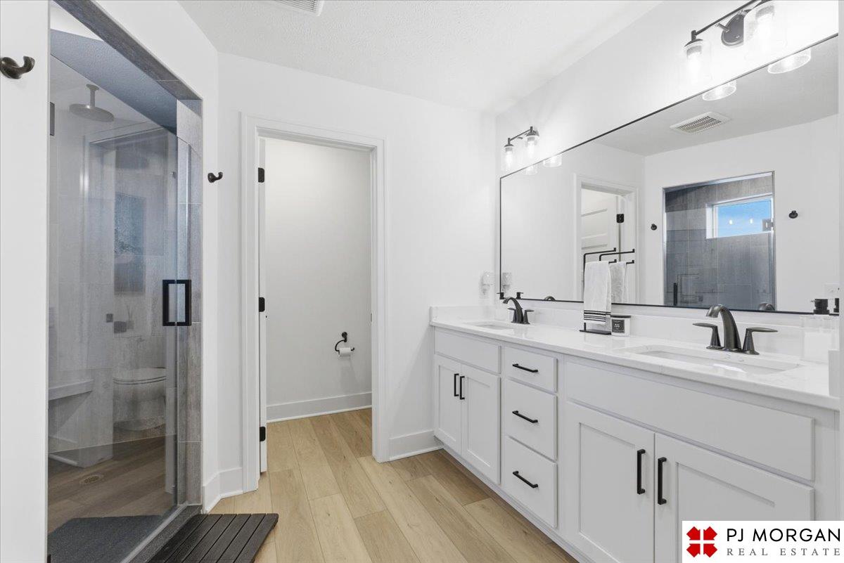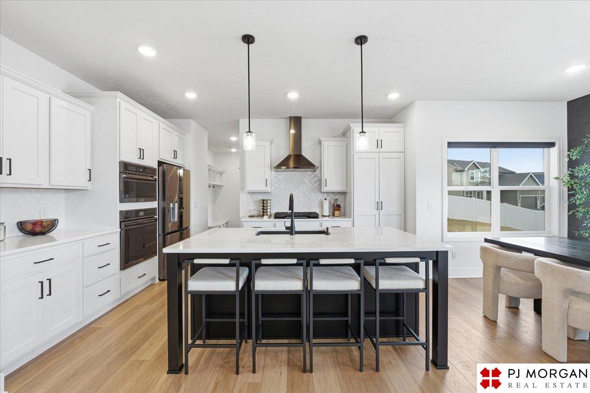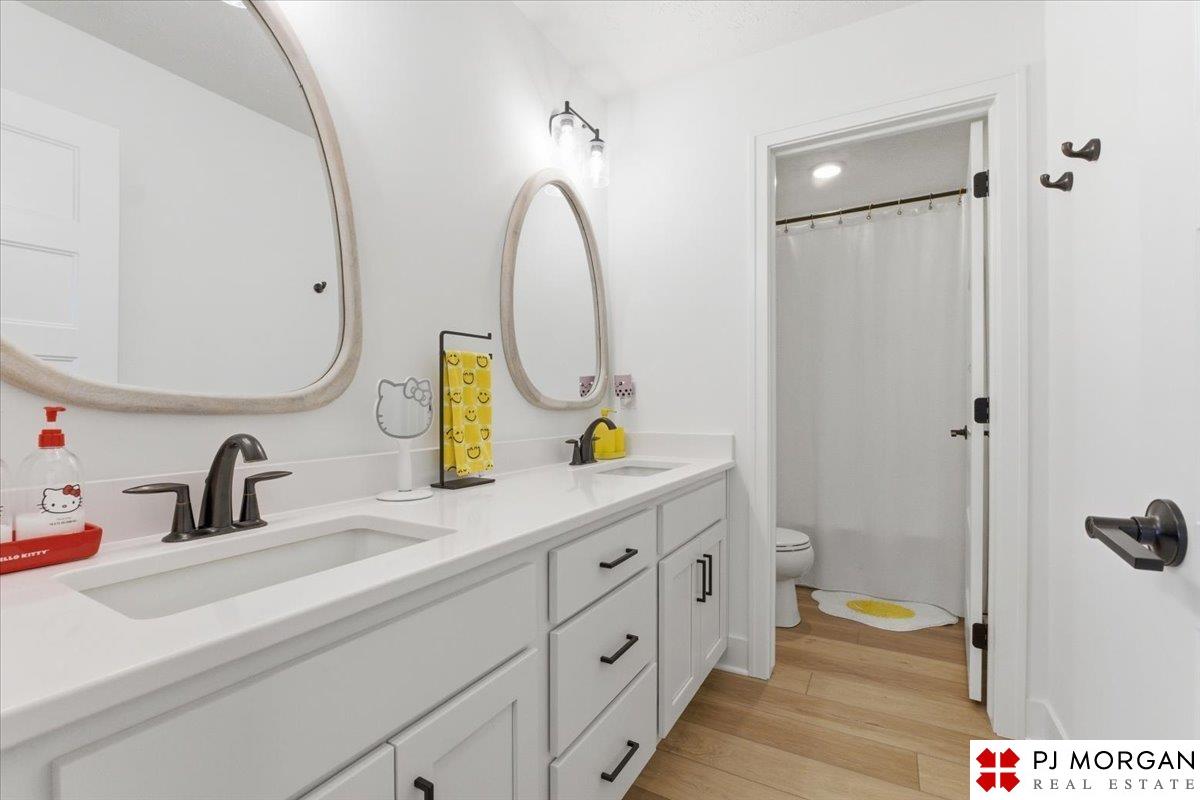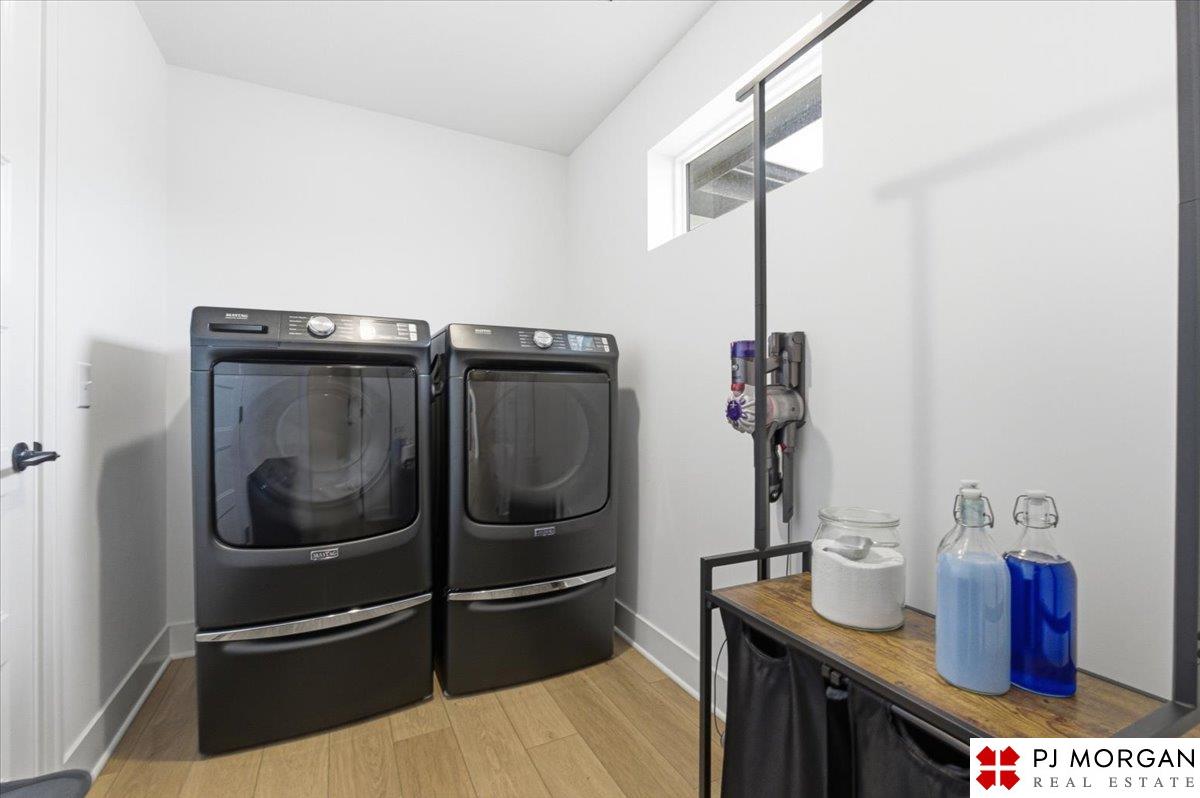 Stunning 2 Story on a corner lot. Move-in ready 5 bed, 3 bath 3 car two-story in Sumtur Crossing offers modern finishes and an open and spacious floor plan perfect for entertaining. Beautiful finishes with LVP flooring and 9' ceilings. Living room with floor-to-ceiling tiled fireplace and built-in shelving. Upgraded kitchen includes white cabinets, quartz countertops, tile backsplash, large island, eat-in dining area, upgraded appliances and walk-in pantry. Main level also includes a bedroom, drop zone and ½ bath. Upstairs has three additional bedrooms, flex room and full bath with dual sinks. Primary suite features a large walk-in closet, dual sinks, and a walk-in tiled shower with access to the laundry room. Custom blinds and upgraded windows provide added efficiency. Unfinished basement ready for your personal touches. Large backyard with a patio is fully fenced yard with a sprinkler system. Located in the Papillion-La Vista school district. Near shopping, restaurants and much more.