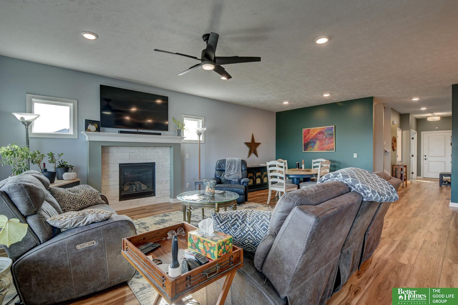 OPEN HOUSE | SUN, JAN. 11 | 1230-2 PM. Beautiful 1.5-story, 4-bed, 3-bath, 3-car Papillion home! Built in 2021, this stunning property blends thoughtful design, modern finishes, and everyday comfort. The open-concept kitchen features white cabinetry, quartz countertops, tile backsplash, large pantry, and a craft-ice refrigerator—perfect for entertaining! Enjoy the bright living room with stone gas fireplace, main-floor study, drop zone, and laundry. The owner’s suite offers double sinks, quartz counters, tiled shower, and walk-in closet. Upstairs features three bedrooms, a full bath, and a versatile loft. Finished lower level includes a rec room, gym area, and sauna, plus easy option for a 5th bed and 4th bath. Huge walkout, privacy-fenced backyard with sprinkler system and oversized 3-car garage. Fantastic Papillion location near parks, schools, and recreation!