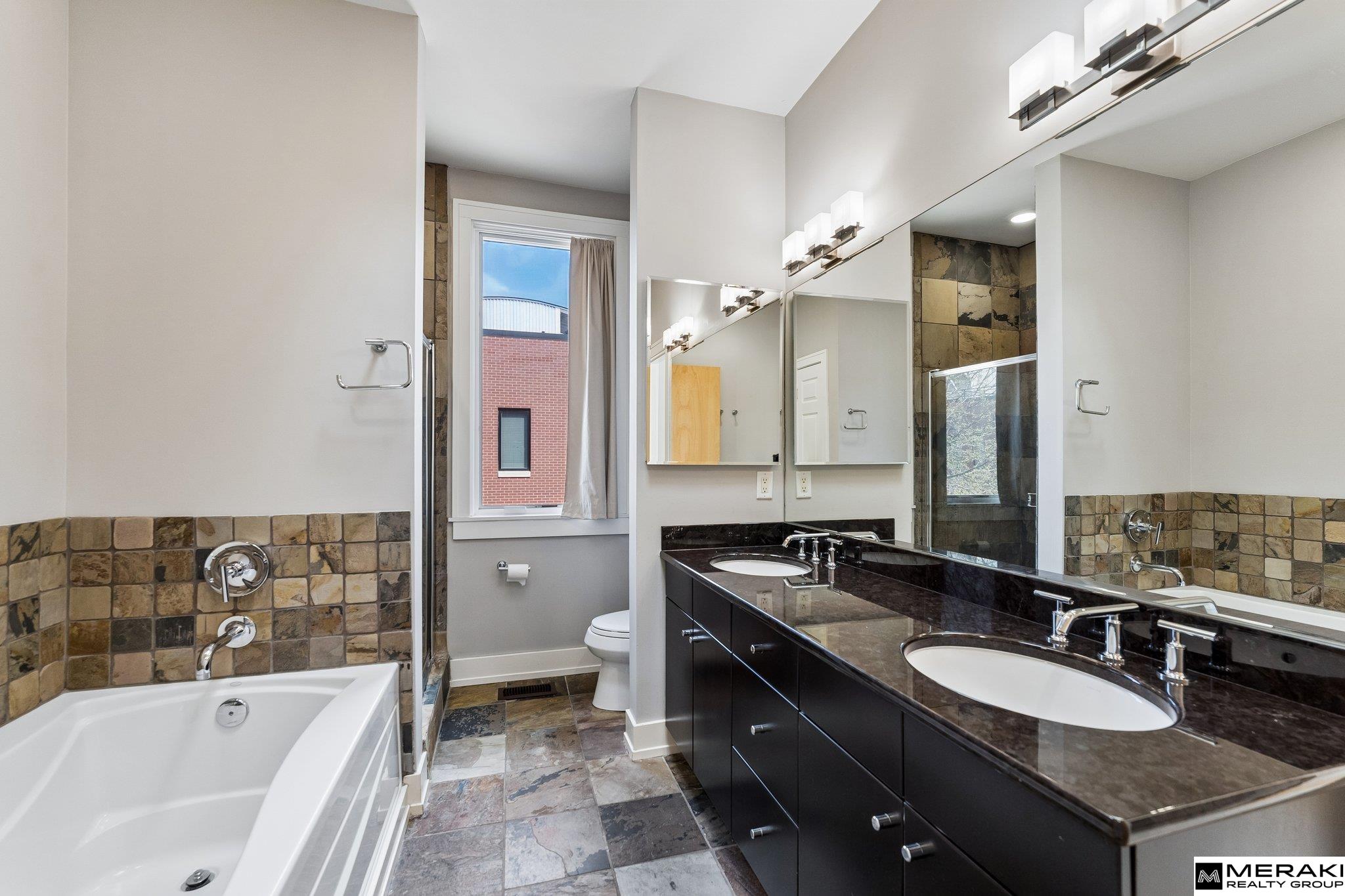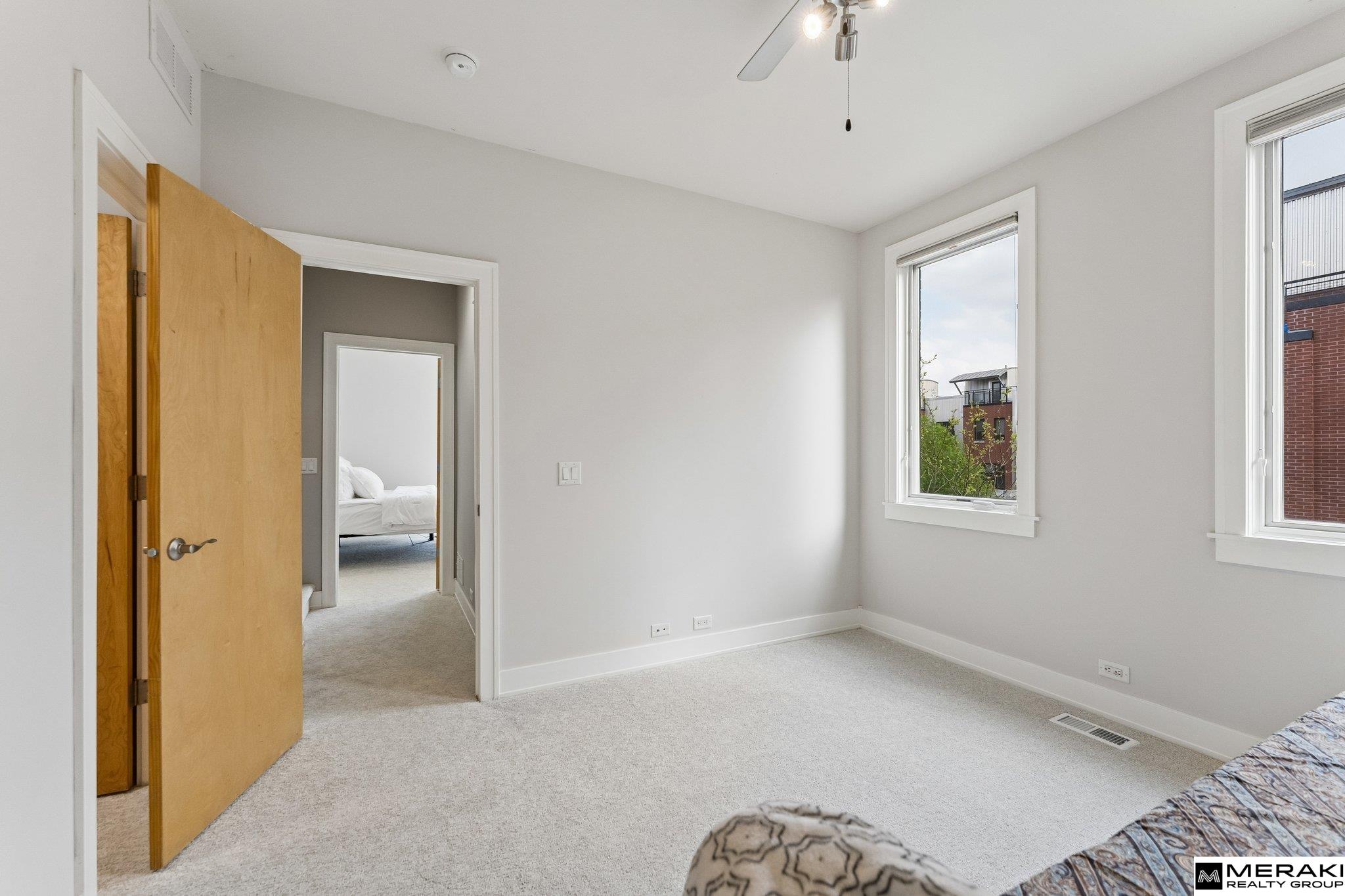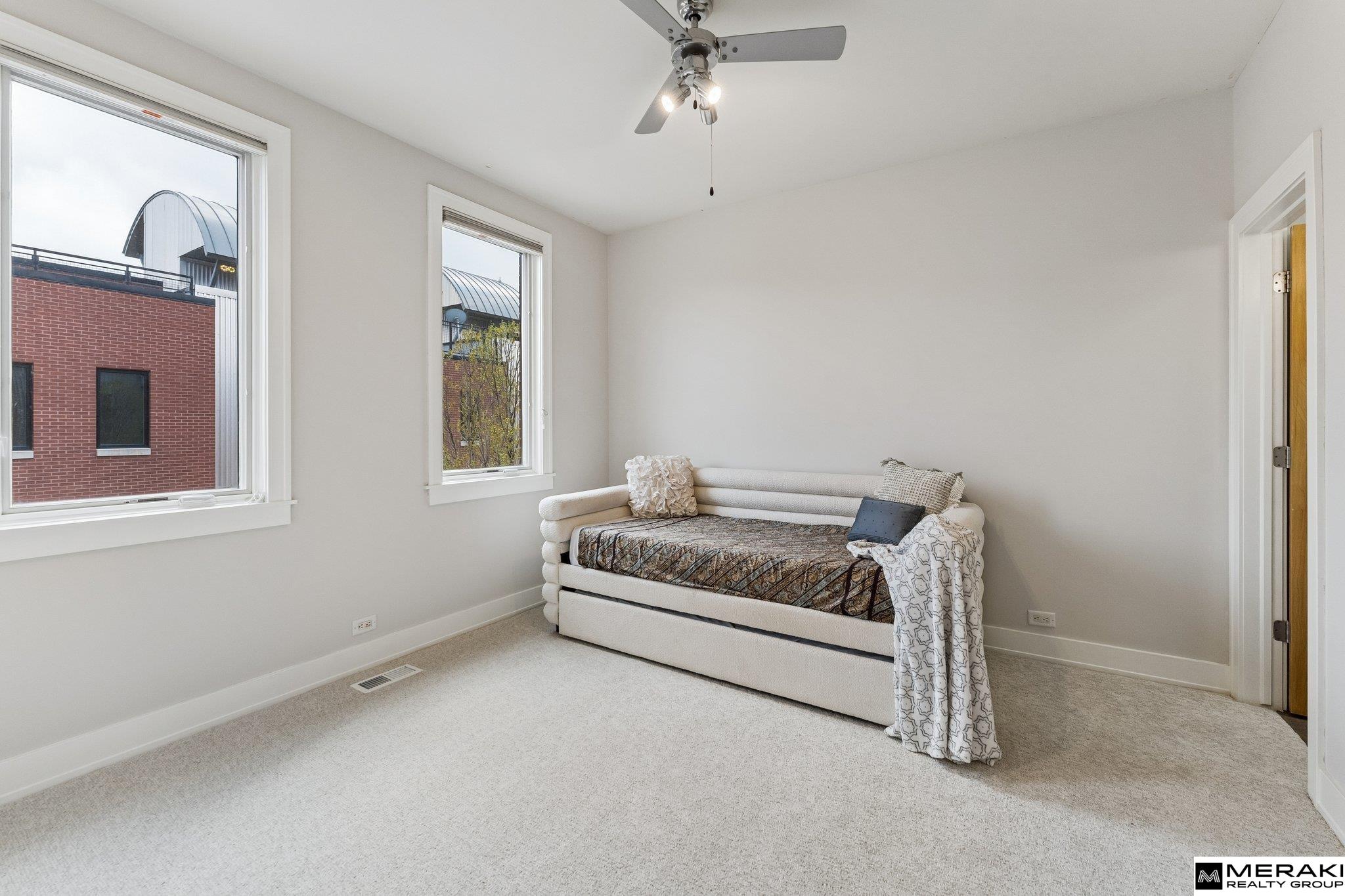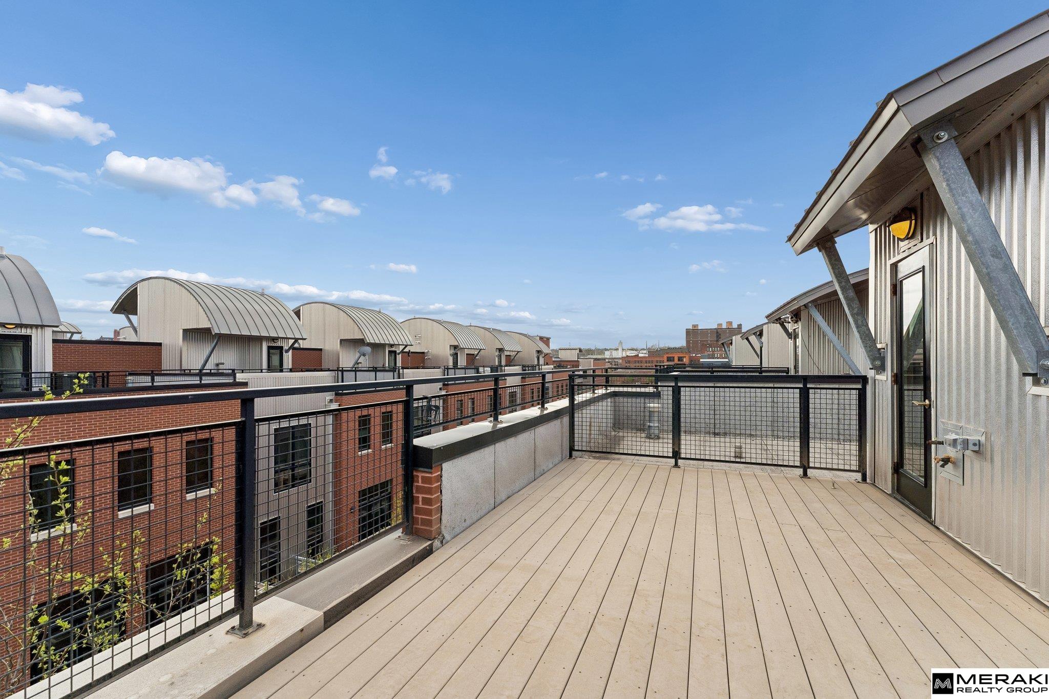 VERY RARE corner unit in highly sought-after Soma Townhomes in Downtown Omaha, just steps from the Old Market! This stunning 1,914 sqft townhome blends luxury with convenience. The 1st floor features a 1/2 bath, office/den with hardwood floors & direct access to your 2-car attached garage. The light & bright 2nd floor living space boasts an open layout, huge corner windows, 9'+ ceilings, built-ins & a cozy gas fireplace. Enjoy the large dining area w/ sliding doors to a private balcony, & a beautiful kitchen w/ granite, SS apps & a massive pantry/laundry rm. The spacious 2 bedrooms, each feature their own walk-in closet & adjoining full bath with tub! The primary suite boasts wrap-around windows, a soaking tub, separate shower, double vanity & skylight. The crown jewel is your own private rooftop deck w/ spectacular views of the downtown Omaha skyline! Fresh interior paint & Brand New carpet throughout. Easy living downtown, make this home yours! Seller is related to listing agent.