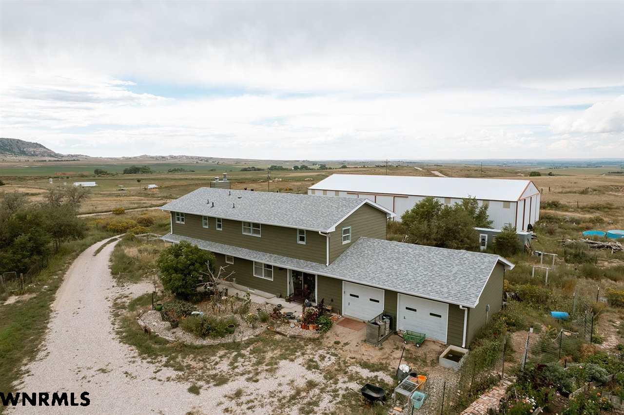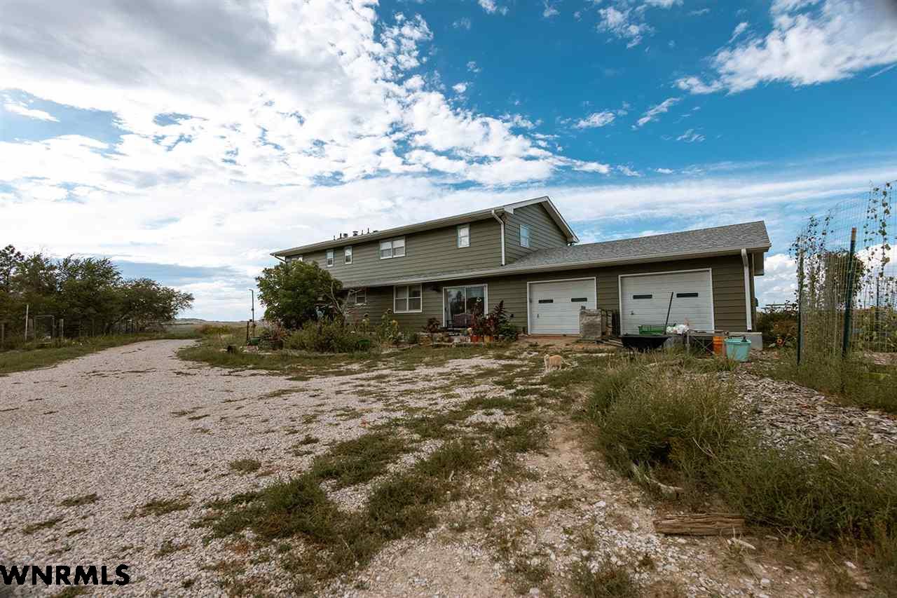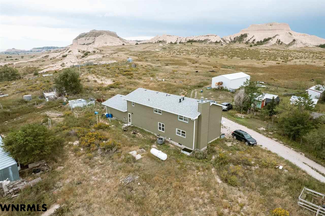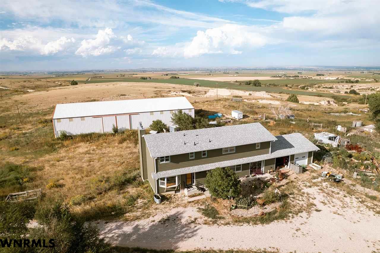 Looking for space, views, and a home with character? This multi-level property offers just that, with tasteful and artistic touches throughout that make it truly one-of-a-kind. Featuring 5 bedrooms, 3.5 bathrooms, and an attached 2-car garage, this home offers plenty of space for family living, entertaining, or hosting guests. Its unique style gives it a warm and inviting feel, blending creativity with comfort. The home has an updated exterior, including siding and roof, and new HVAC and a newer hot water heater. Set just southwest of Gering on 143+/- acres, the land itself is every bit as impressive as the home. A stunning bluff rises from the property, framed by rolling hills, valleys, and natural foliage that provide both beauty and privacy. The surrounding landscape delivers year-round views that are hard to match, offering a peaceful escape just minutes from town. The acreage is well-equipped for a wide range of uses. A massive 54’x120’ metal shop provides endless space for projects or storage. A 60’x28’ metal equipment storage building adds even more functionality, while a metal horse barn with tack room, a loafing shed, chicken coop and several other outbuildings make the property ideal for horses, livestock, or hobbies. Whether you’re dreaming of a hobby farm, a horse property, or simply a wide-open space with unbeatable views, this property brings together functionality, space, and artistry to deliver it all. View the video walk-thru at https://youtu.be/0q1WEOVh2Iw