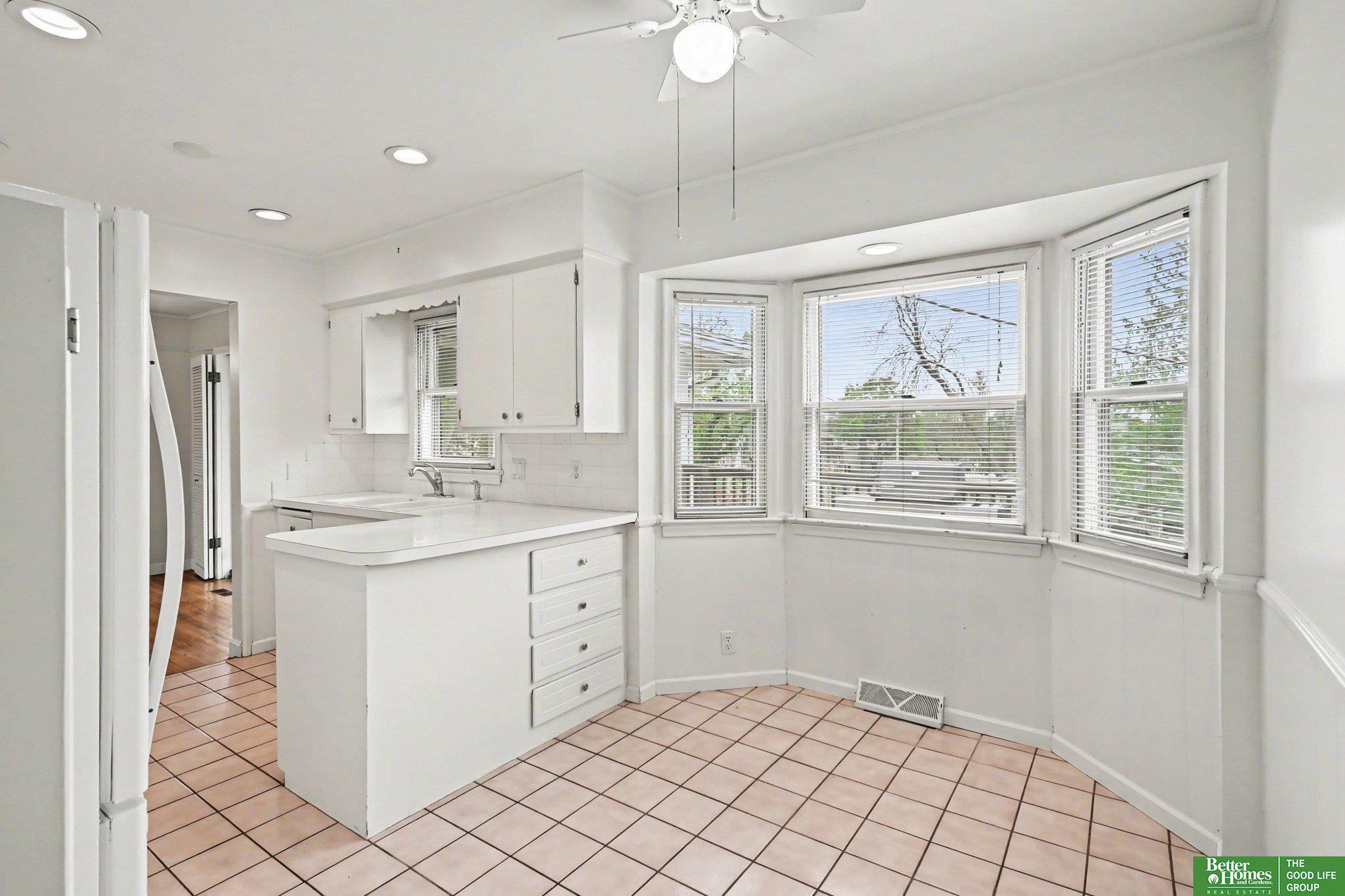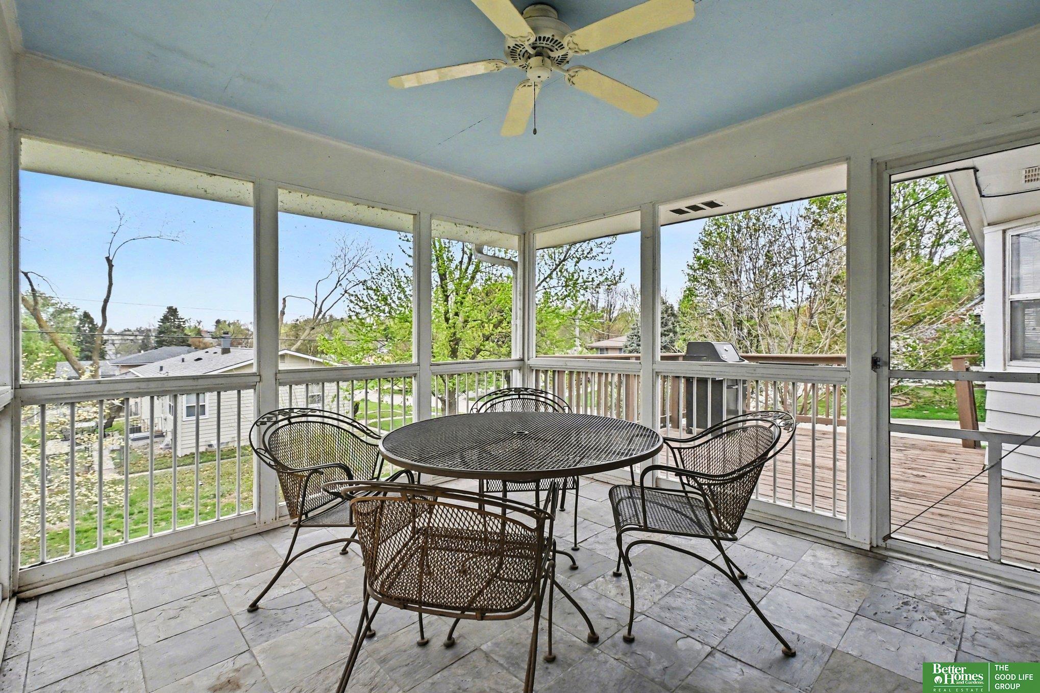 Discover exceptional charm and abundant natural light in this beautifully maintained home, perfectly situated in a central Omaha neighborhood. The inviting main floor features hardwood floors, a striking stone fireplace, and a bright kitchen updated with modern appliances, classic white cabinetry, and a cozy bayed dining area. You can relax in the lovely enclosed sunroom or retreat to the finished walkout lower level, which offers a second fireplace, an additional bathroom, and a spacious laundry room. Complete with fresh paint throughout the main level, an elevated deck, and a desirable walkout lot, this property blends timeless character with comfortable living spaces.