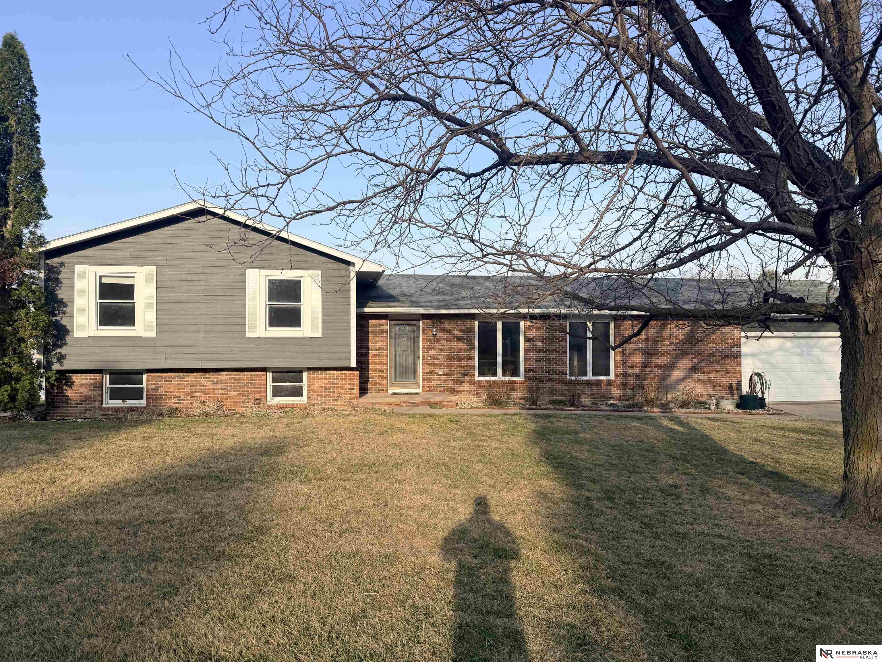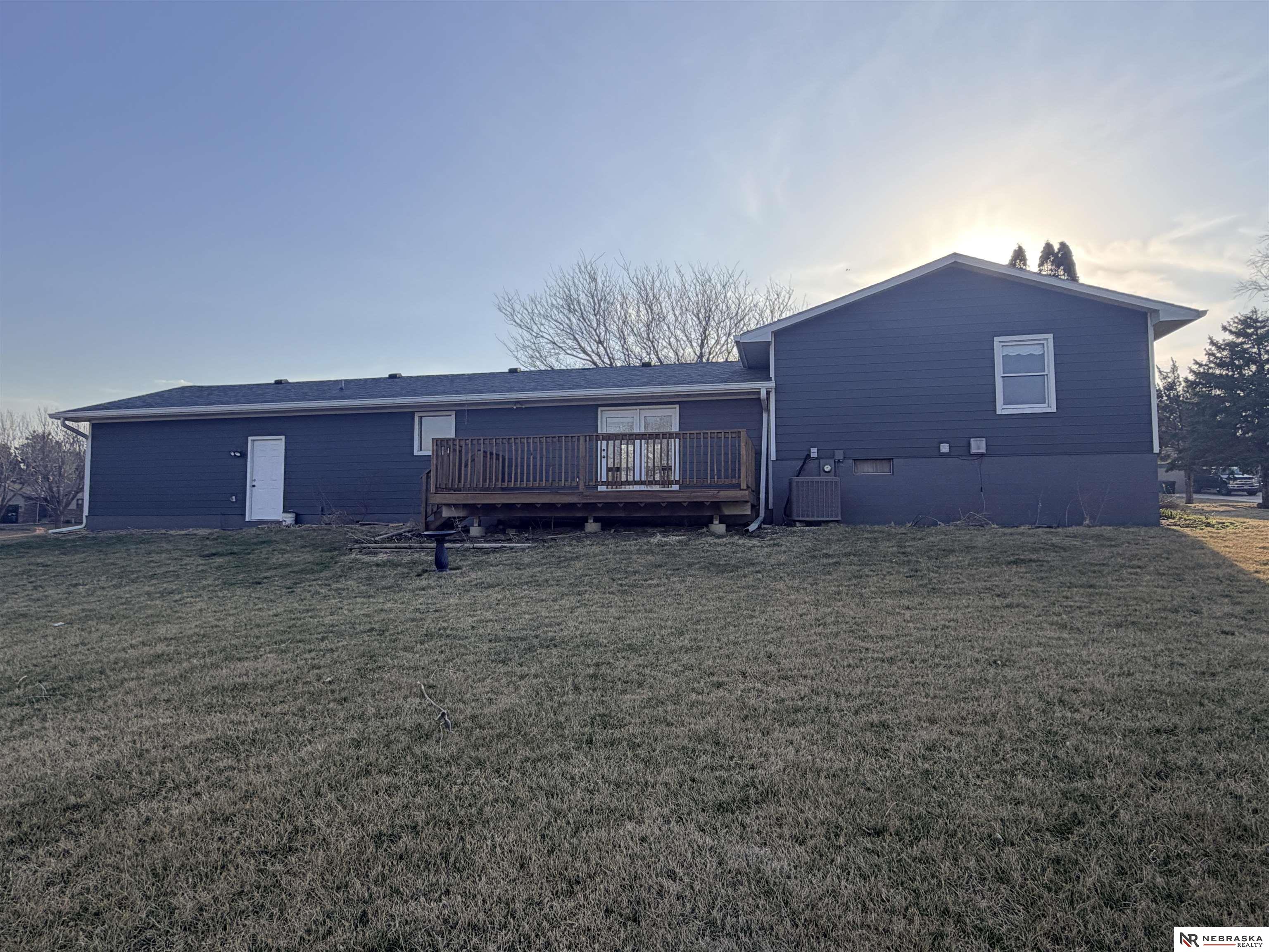 This beautifully updated acreage offers the perfect blend of comfort and space. Recent improvements include a newer HVAC system, roof, siding, and a brand-new deck, providing peace of mind and modern appeal. Inside, you’ll find fresh carpet and paint throughout, making this home truly move-in ready. The main level features an open-concept kitchen, dining, and living area that flows seamlessly to the backyard—ideal for enjoying stunning Nebraska sunsets. An attached two-car garage and a detached shop offer ample storage and workspace. The lower level includes a second living area and bathroom, ready for your personal finishing touches.