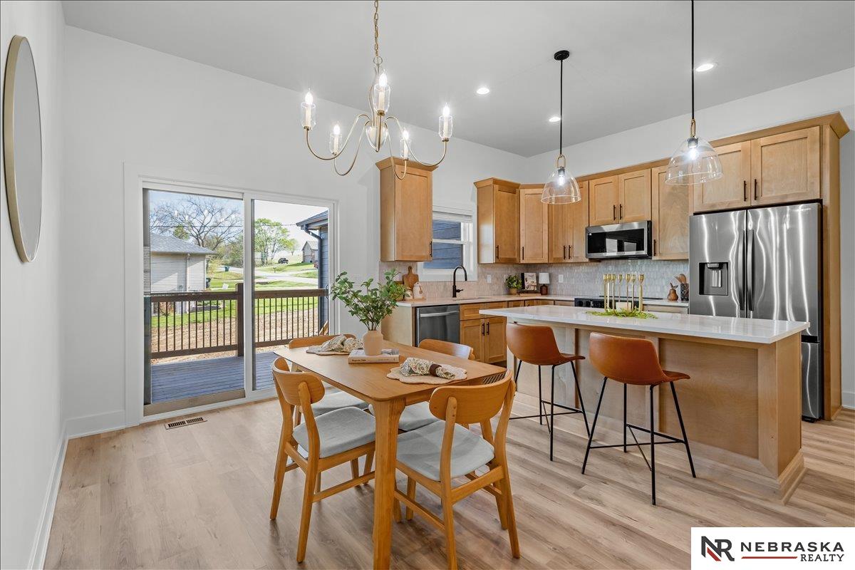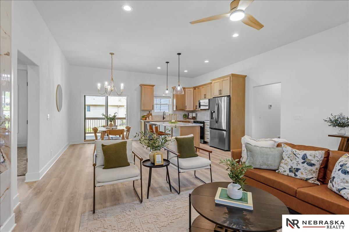 Welcome to this stunning new construction ranch-style home offering 4 bedrooms, 4 bathrooms, and a 2-car garage, thoughtfully designed with an open-concept layout for modern living. The spacious main living area seamlessly connects the kitchen, dining, and living spaces, creating an inviting atmosphere perfect for entertaining or everyday comfort. High-quality finishes and attention to detail are evident throughout. Located in the highly desirable Beaver Lake community within the Conestoga School District, this home offers more than just beautiful design—it delivers an exceptional lifestyle. Enjoy lake access, outdoor recreation, and a peaceful setting year-round. With convenient access to nearby four-lane highways, commuting to Omaha is quick and easy. Plus, Lake Ridge Golf Course is just minutes away, adding even more appeal. Experience the perfect blend of luxury, location, and lake living. AMA