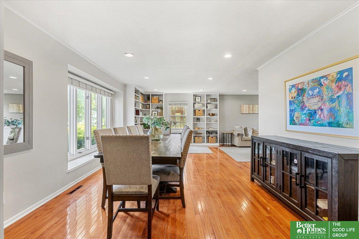 4-bed, 4-bath home on a corner lot just minutes from Westroads Mall, Topgolf, and Omaha’s best dining and coffee spots. Nearly 3,000 sqft of living space with a fenced backyard, patio lighting for evenings outdoors, and a two-car garage. The primary suite is oversized with room for additional seating or work-from-home space. Multiple dining areas offer flexibility for everyday meals or hosting. A finished basement provides additional living space plus storage. Updates throughout the home add modern touches while keeping maintenance easy. Quick interstate access puts you close to everything Omaha has to offer. This is a rare combination of size, location, and lot in a neighborhood that's hard to match!