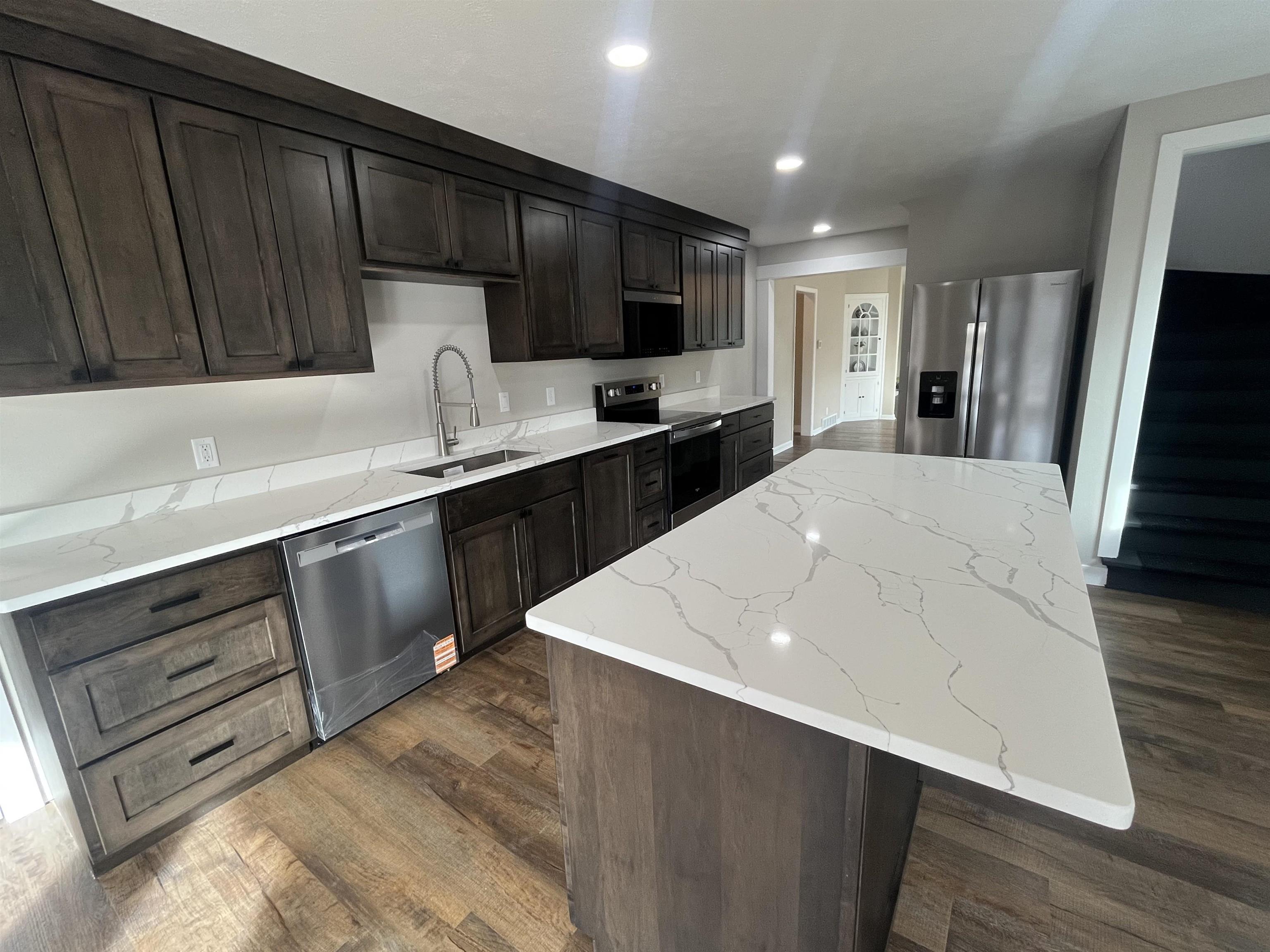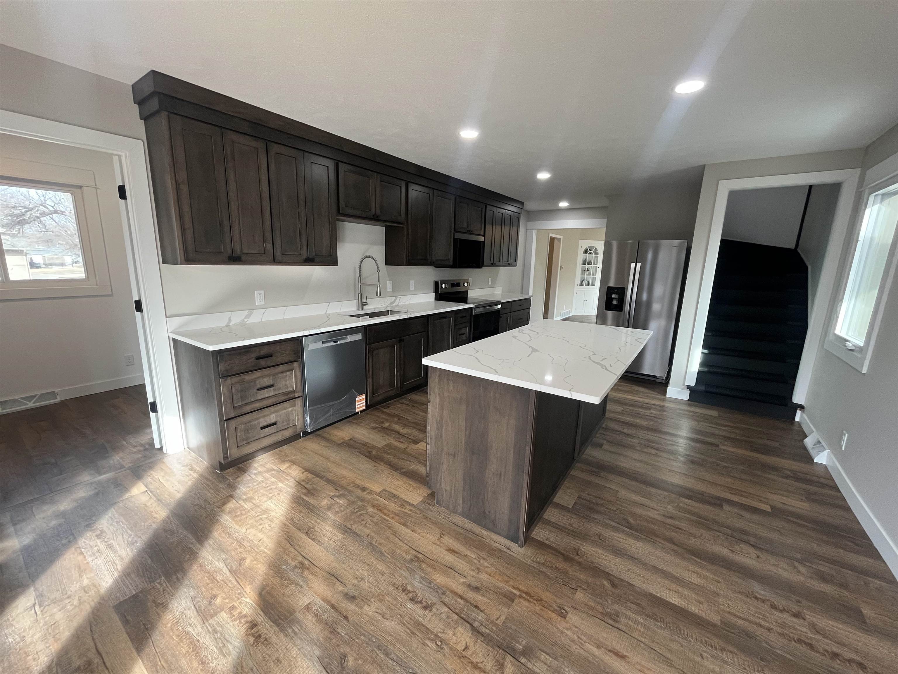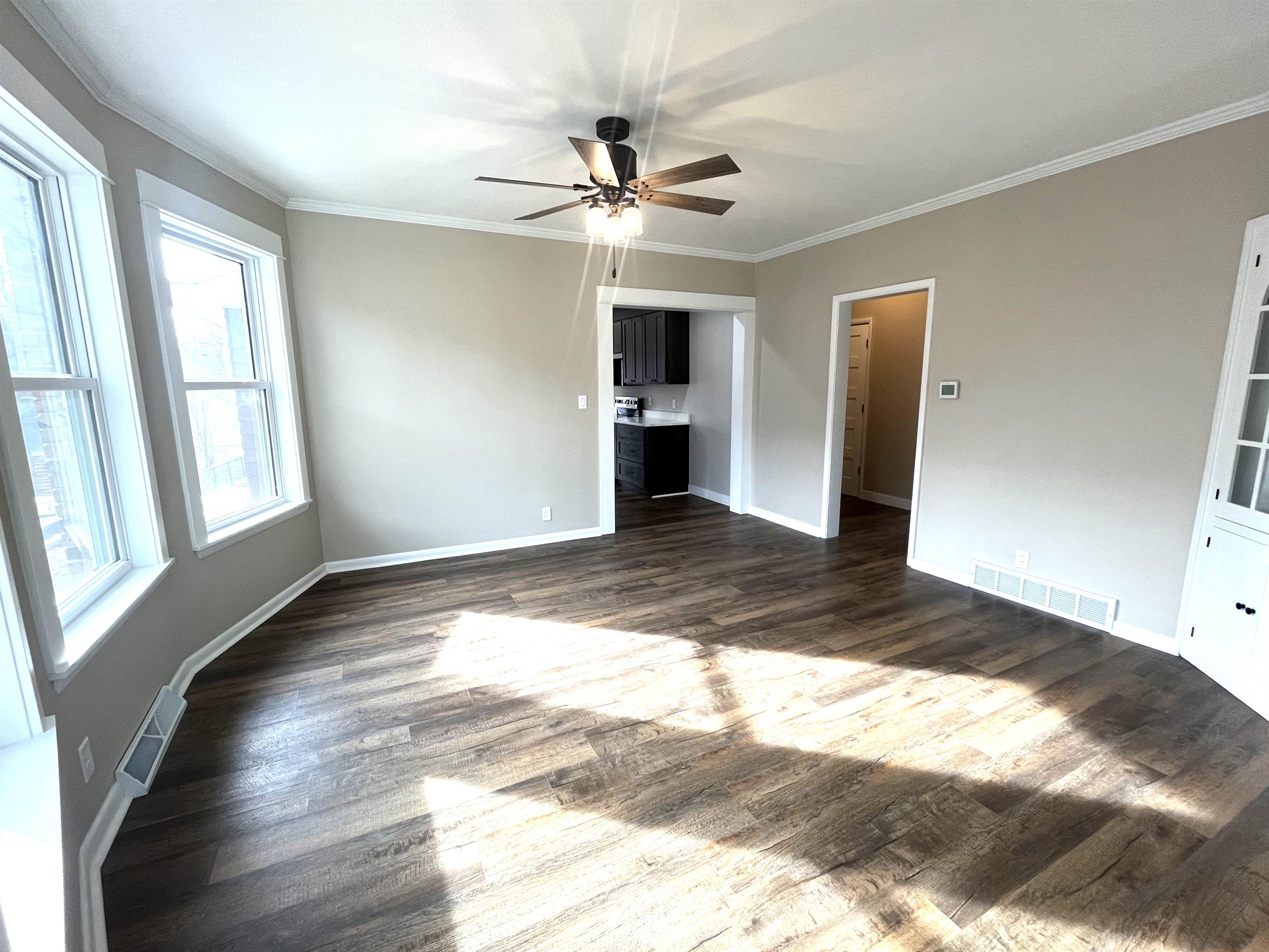 Step into timeless elegance blended seamlessly with modern luxury in this extensively remodeled 5 bedroom, 3.5 bath home. Thoughtfully updated from top to bottom, this residence offers both impressive space and high-end finishes designed for today's lifestyle. The main floor features a spacious primary suite complete with a walk-in closet and a stunning brand-new bathroom showcasing an onyx shower, double sink vanity, and a bluetooth enabled exhaust fan for a spa-like experience. Two bedrooms are conveniently located on the main level, with three additional bedrooms upstairs. The very large eat-in kitchen is a true showpiece, offering custom cabinetry, a spacious center island, and direct access to the patio overlooking the backyard-ideal for entertaining or day to day activity. The main floor laundry room is just off of the kitchen with generous cabinet space. Abundant natural light pours through the brand-new windows on the main floor. Upstairs, you'll find 3 generously sized bedrooms with large closets, refinished wood floors, and a completely brand-new bathroom. The basement has endless potential to finish for additional living space or leave as is for great storage space. There is a 2 car attached garage and a detached 1 car garage with convenient alley access.
