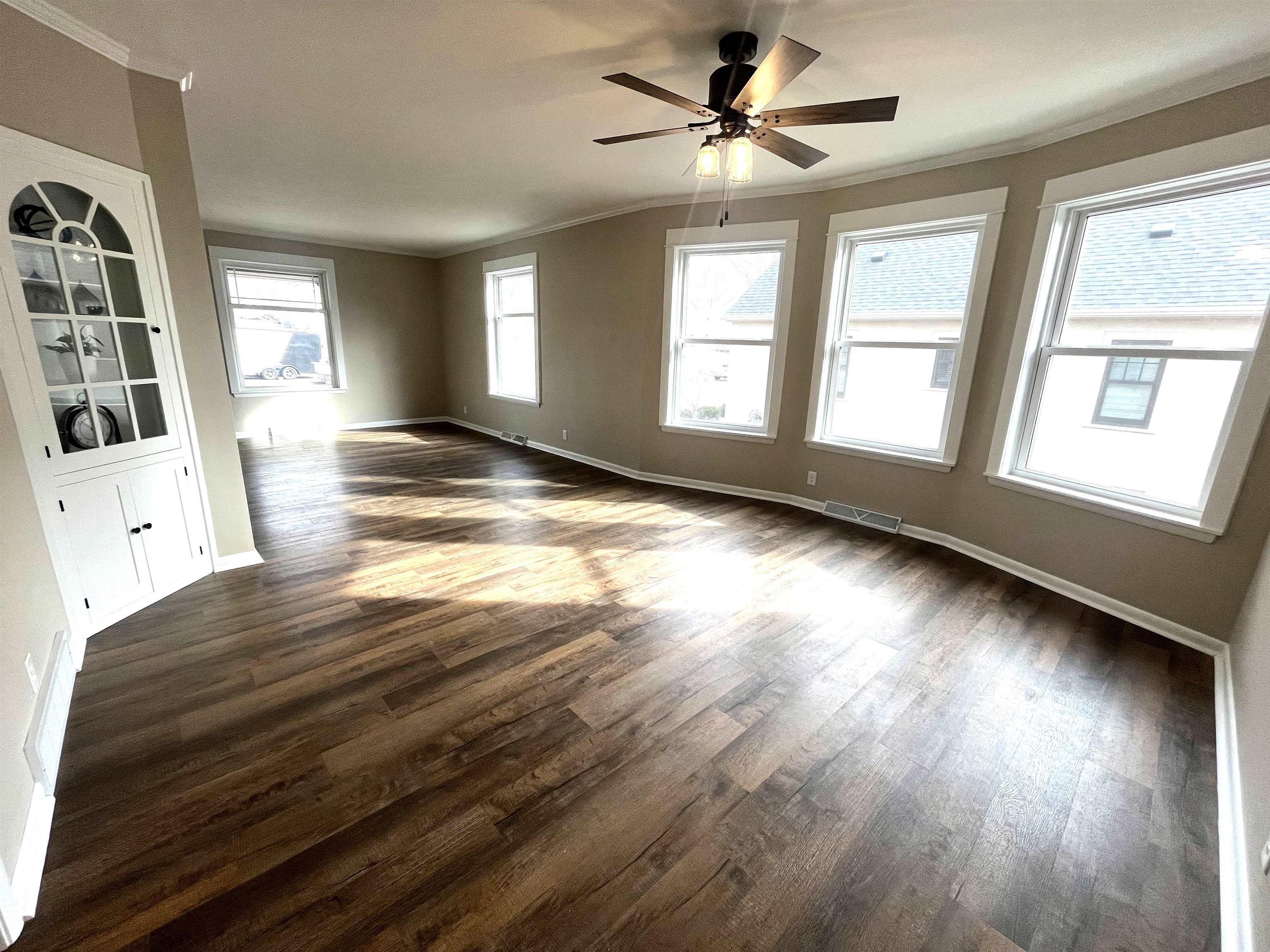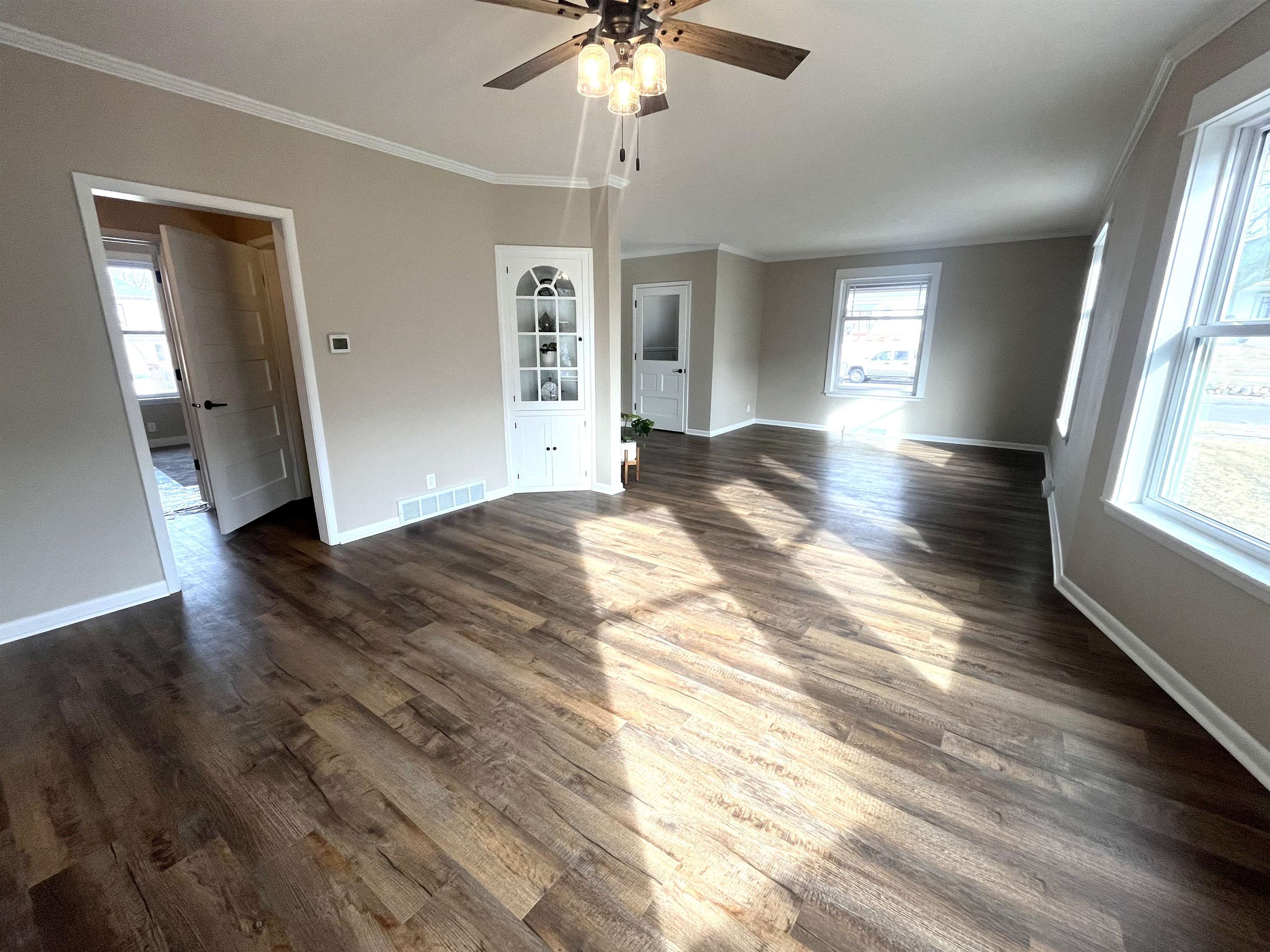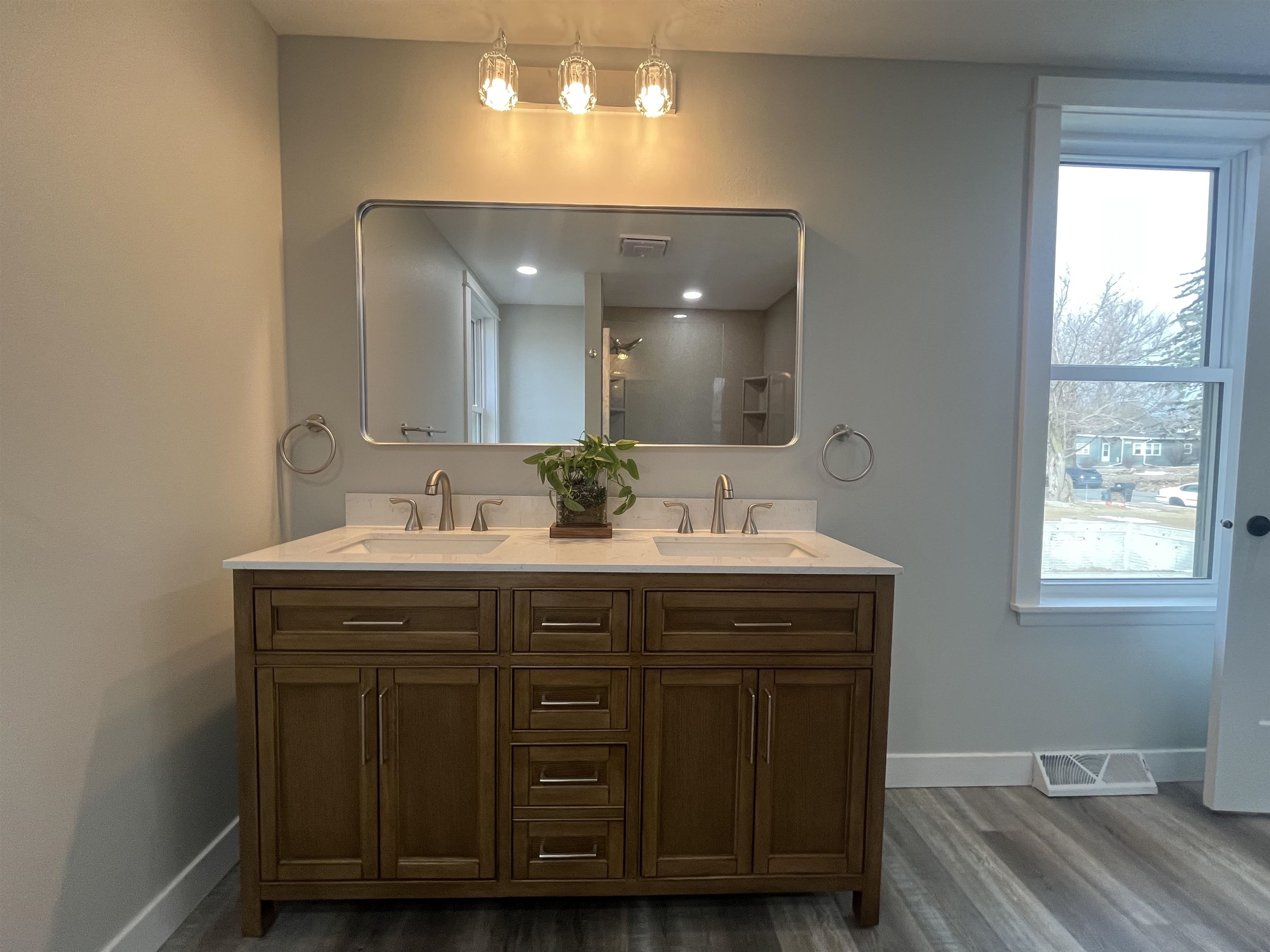 Step into timeless elegance blended seamlessly with modern luxury in this extensively remodeled 5 bedroom, 3.5 bath home. Thoughtfully updated from top to bottom, this residence offers both impressive space and high-end finishes designed for today's lifestyle. The main floor features a spacious primary suite complete with a walk-in closet and a stunning brand-new bathroom showcasing an onyx shower, double sink vanity, and a bluetooth enabled exhaust fan for a spa-like experience. Two bedrooms are conveniently located on the main level, with three additional bedrooms upstairs. The very large eat-in kitchen is a true showpiece, offering custom cabinetry, a spacious center island, and direct access to the patio overlooking the backyard-ideal for entertaining or day to day activity. The main floor laundry room is just off of the kitchen with generous cabinet space. Abundant natural light pours through the brand-new windows on the main floor. Upstairs, you'll find 3 generously sized bedrooms with large closets, refinished wood floors, and a completely brand-new bathroom. The basement has endless potential to finish for additional living space or leave as is for great storage space. There is a 2 car attached garage and a detached 1 car garage with convenient alley access.