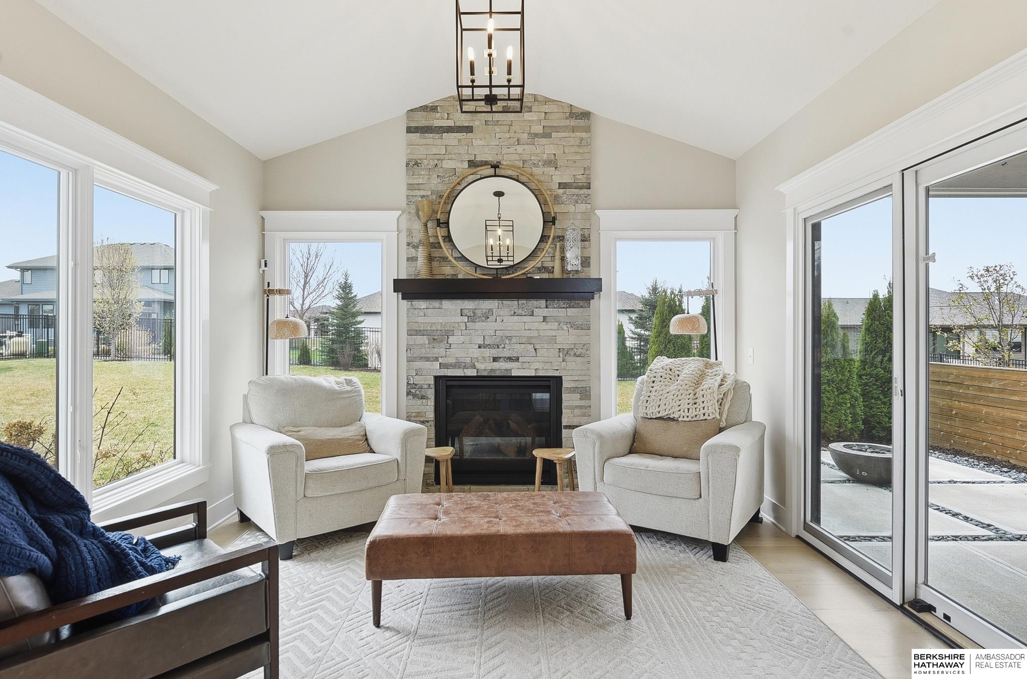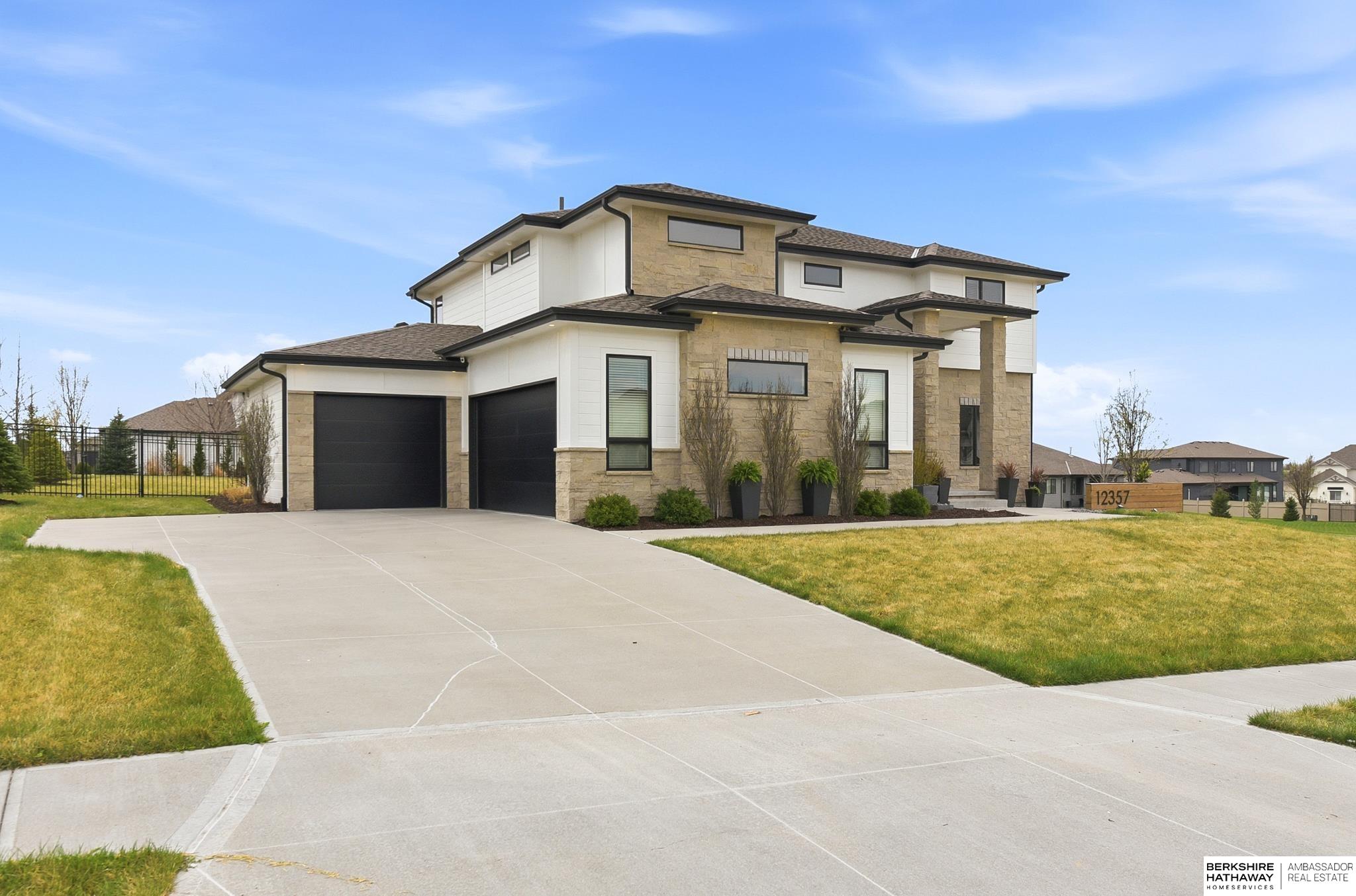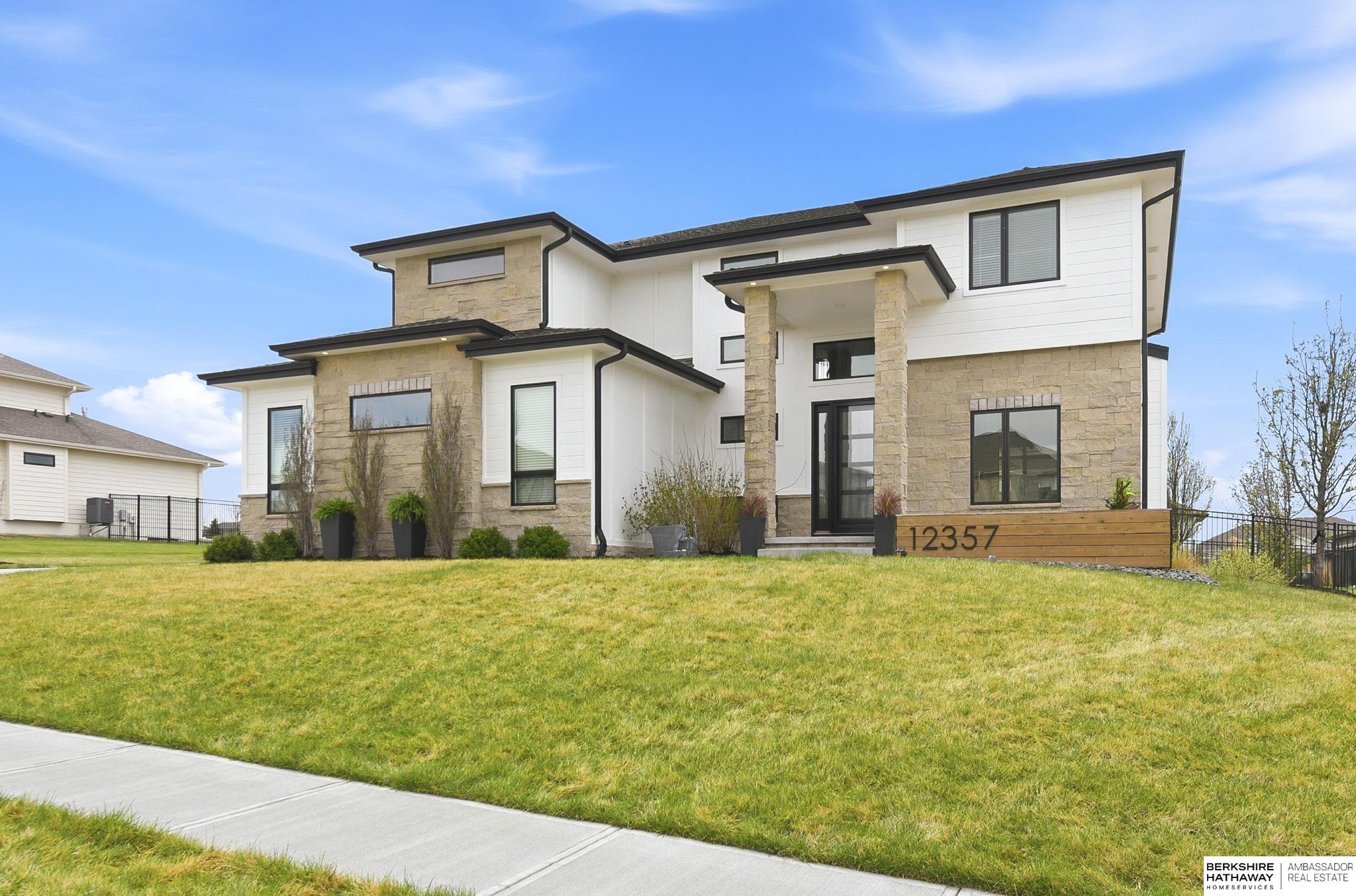 OPEN Sunday 12-2! Contemporary and luxurious defines this five-year-young 2 home in Papillion's-Ashbury Farm. The curb appeal, front patio, and grand pillars pave the way to 10' ceilings, white oak floors, and large open concept. Two large fireplaces add the coziness, while the kitchen features floor-to-ceiling cabinets and designer contemporary finishes throughout. 4 large bedrooms/primary suite upstairs, finished bsmt w bar, and a sideload heated garage provides year-round utility. This property sits on a fully fenced and landscaped .4-acre lot; the ideal spot to add a pool. Outdoor living is a priority, with covered patio, privacy wall, built-in kitchen/grill, and a firepit. You walking distance to Werner Park and the trails at Prairie Queen and Walnut Creek. Quick access to Hwy 370, I-80, and Offutt AFB makes any commute easy, while Shadow Lake Mall is just a short drive away. Building this home new w/ the upgrades would be 100k more! Pre-Inspected! 12357 Cooper is a showstopper!