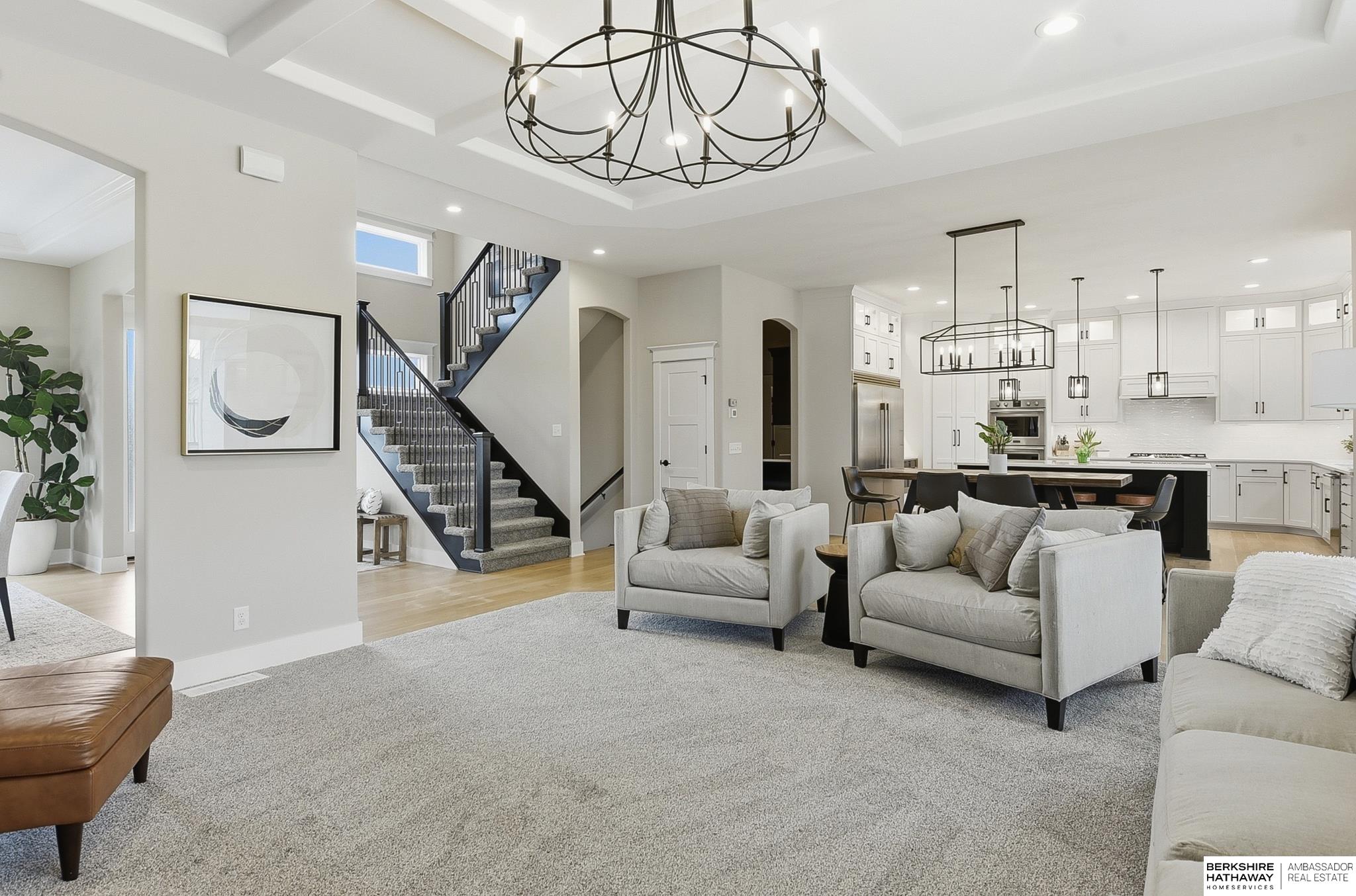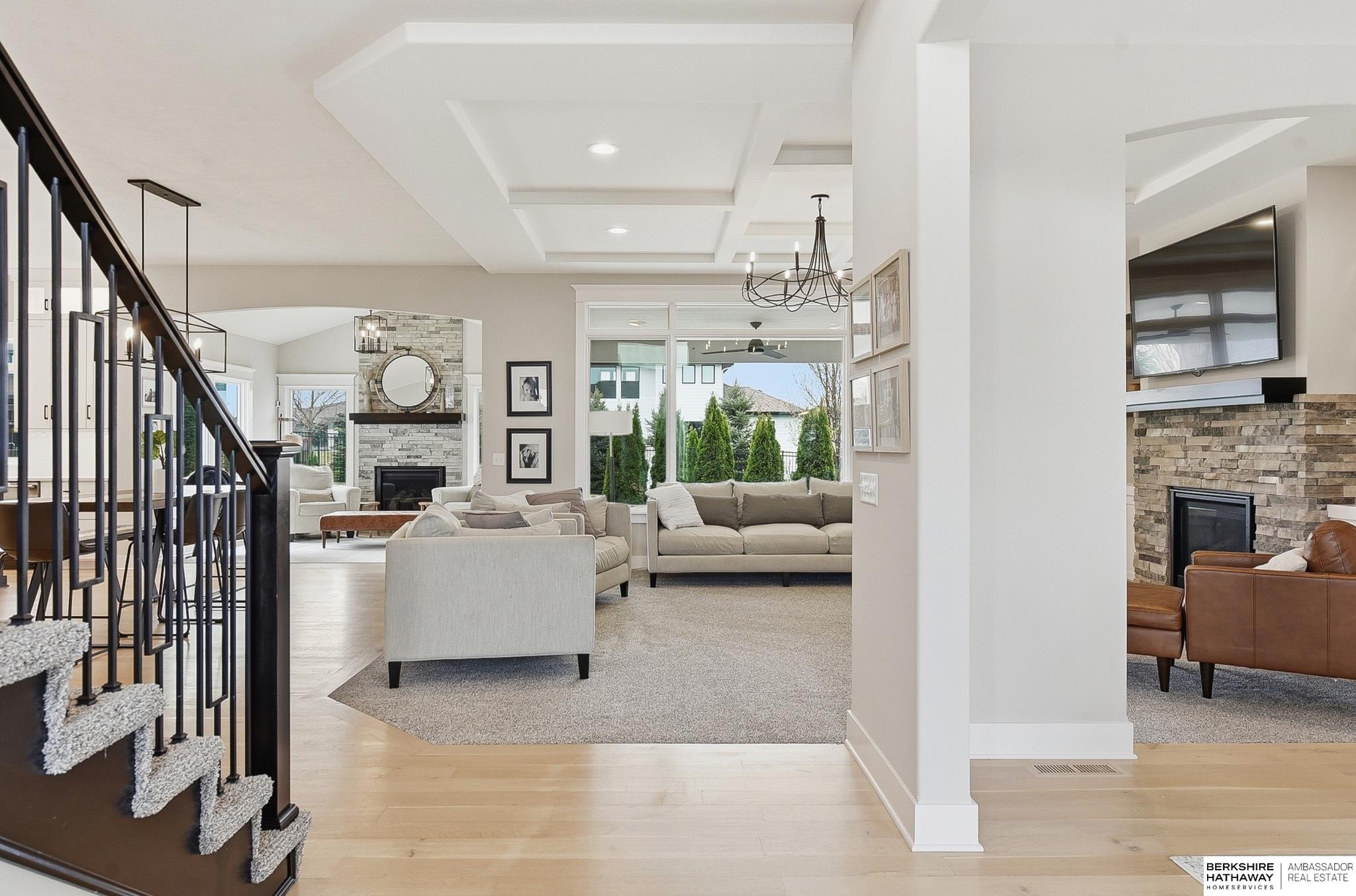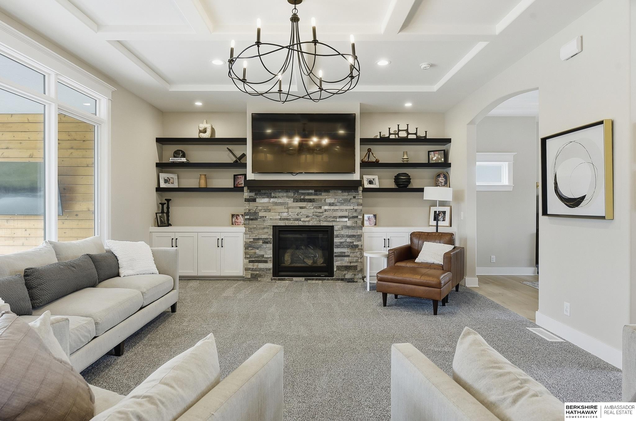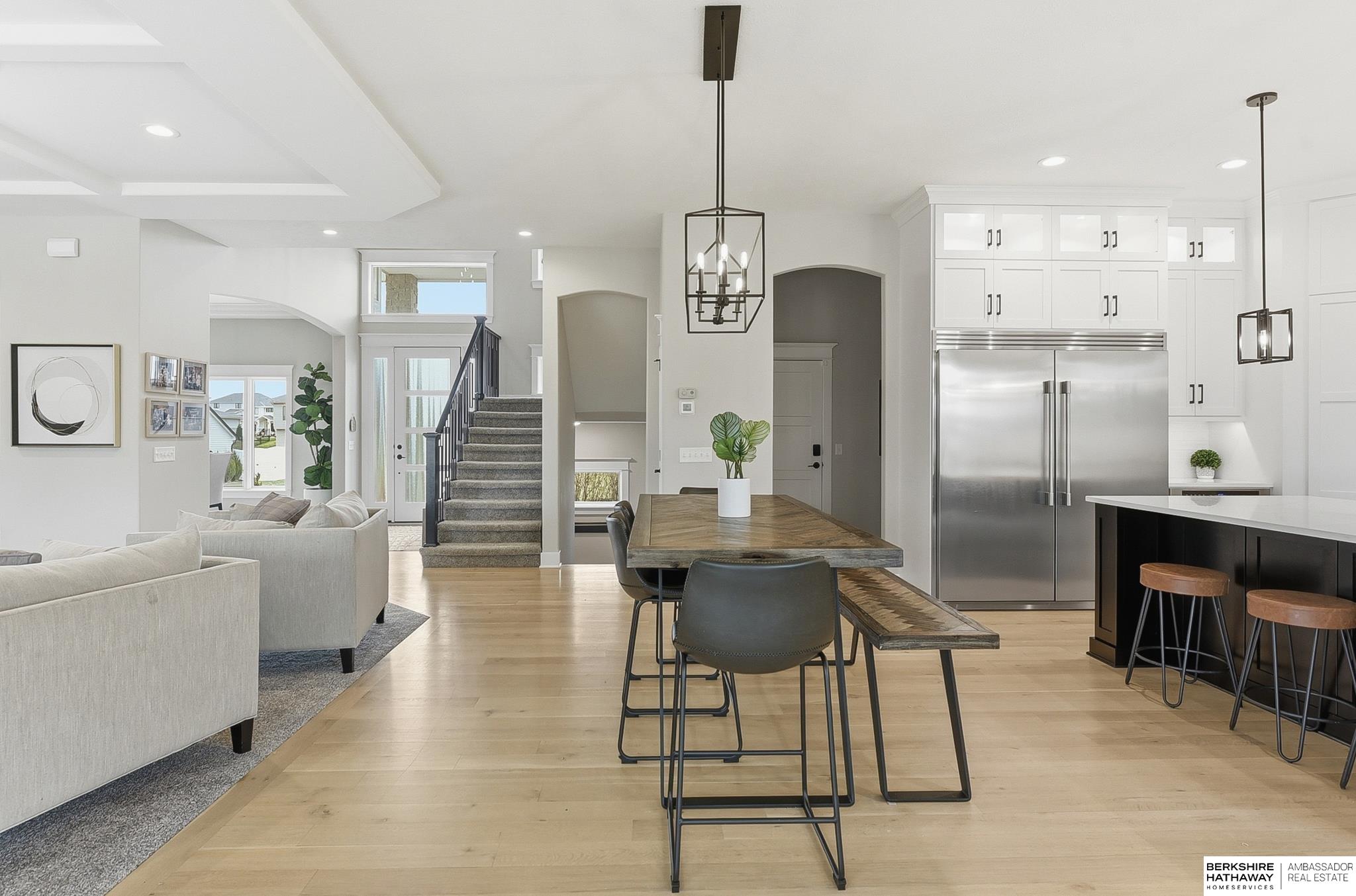 OPEN Sunday 12-2! Contemporary and luxurious defines this five-year-young 2 home in Papillion's-Ashbury Farm. The curb appeal, front patio, and grand pillars pave the way to 10' ceilings, white oak floors, and large open concept. Two large fireplaces add the coziness, while the kitchen features floor-to-ceiling cabinets and designer contemporary finishes throughout. 4 large bedrooms/primary suite upstairs, finished bsmt w bar, and a sideload heated garage provides year-round utility. This property sits on a fully fenced and landscaped .4-acre lot; the ideal spot to add a pool. Outdoor living is a priority, with covered patio, privacy wall, built-in kitchen/grill, and a firepit. You walking distance to Werner Park and the trails at Prairie Queen and Walnut Creek. Quick access to Hwy 370, I-80, and Offutt AFB makes any commute easy, while Shadow Lake Mall is just a short drive away. Building this home new w/ the upgrades would be 100k more! Pre-Inspected! 12357 Cooper is a showstopper!