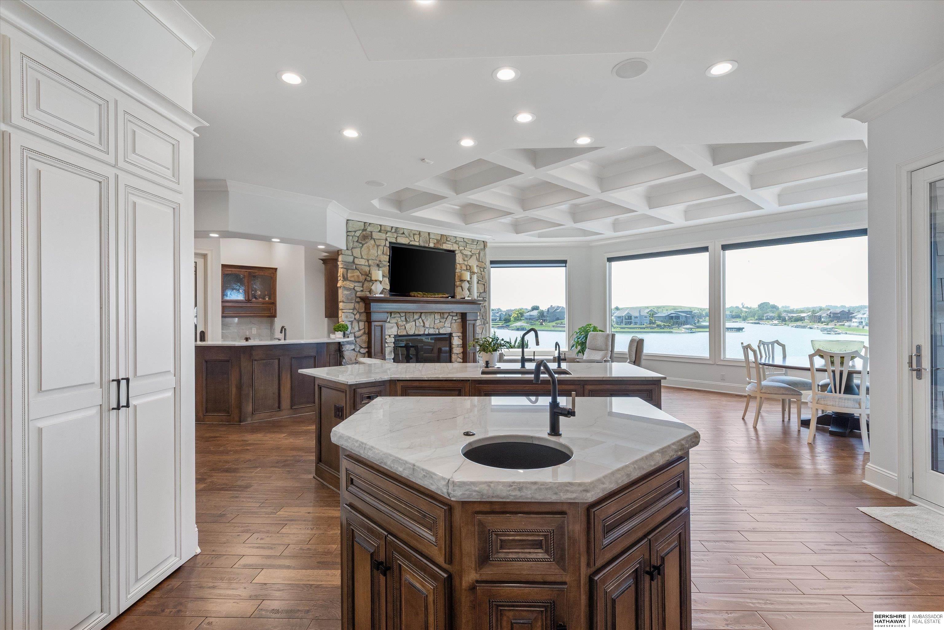 Well...Well...Well...Isn't this a pleasant surprise! Completely remodeled/restyled, inside & out, 1.5 story walk-out on premium point lot is nearing a 2 year professional transformation through Craig Tuttle Construction! Vaulted ceilings with floor to ceiling windows capture amazing main body water lake views throughout. New designer finishes. Retreat style primary suite with access to upper covered deck. Deluxe primary bath with heated floors, large soaker tub & walk thru shower & vaulted dream closet. The new moody home library from the pages of a magazine. Open concept kitchen with 2 islands, top of the line appliances, informal dining, hearth room, wetbar/pantry, & flex-use pocket office. Creative 2nd level suite boasts views for miles. Completely renovated LL with vaulted ceiling, 2nd kitchen, 2 bedrooms (1 is exercise room) & room to entertain. Salt water sports pool, hot tub, gas firepit & premium stationary dock system. Oversized 4 car upper garages & ll lake storage garage.