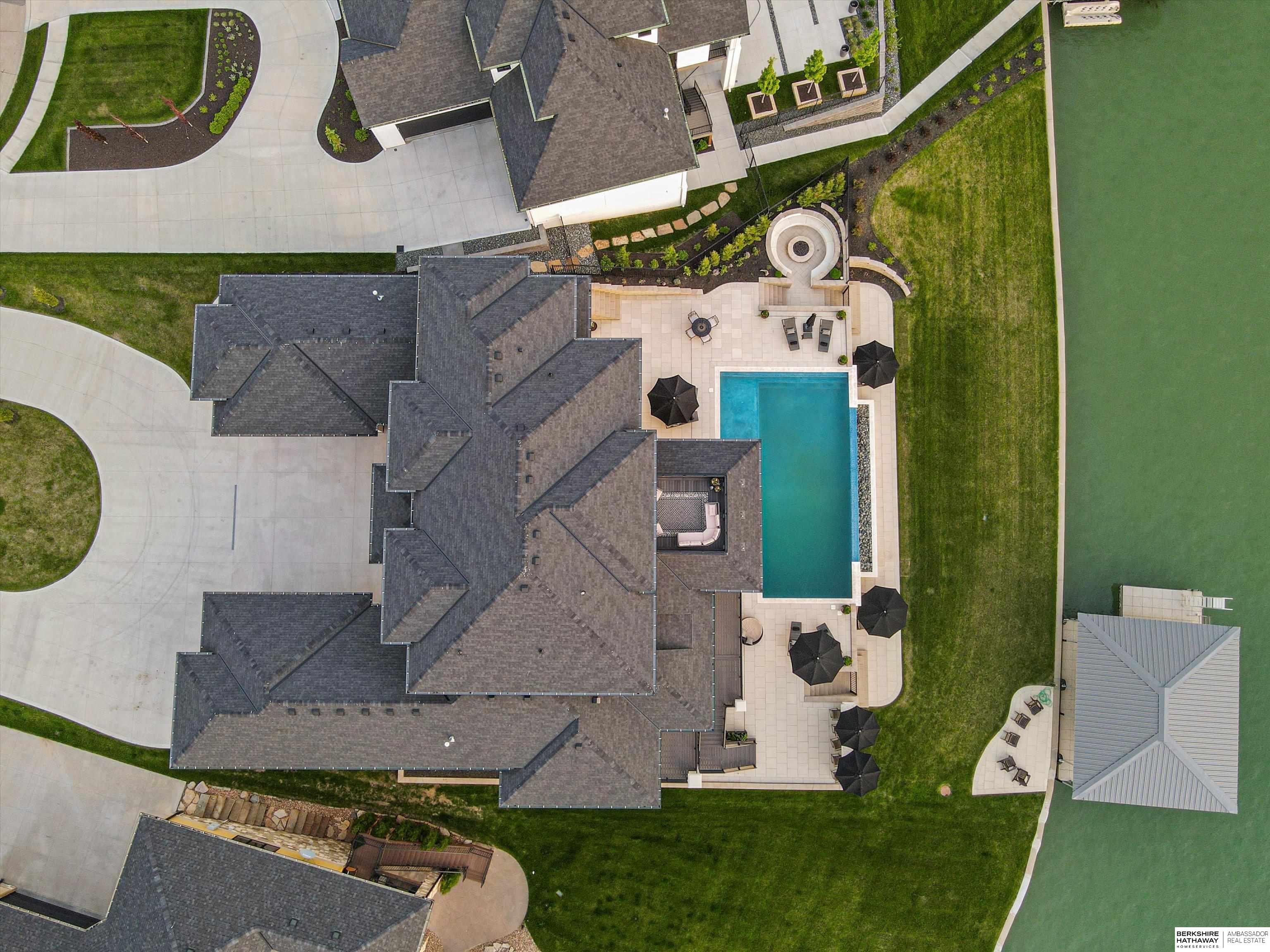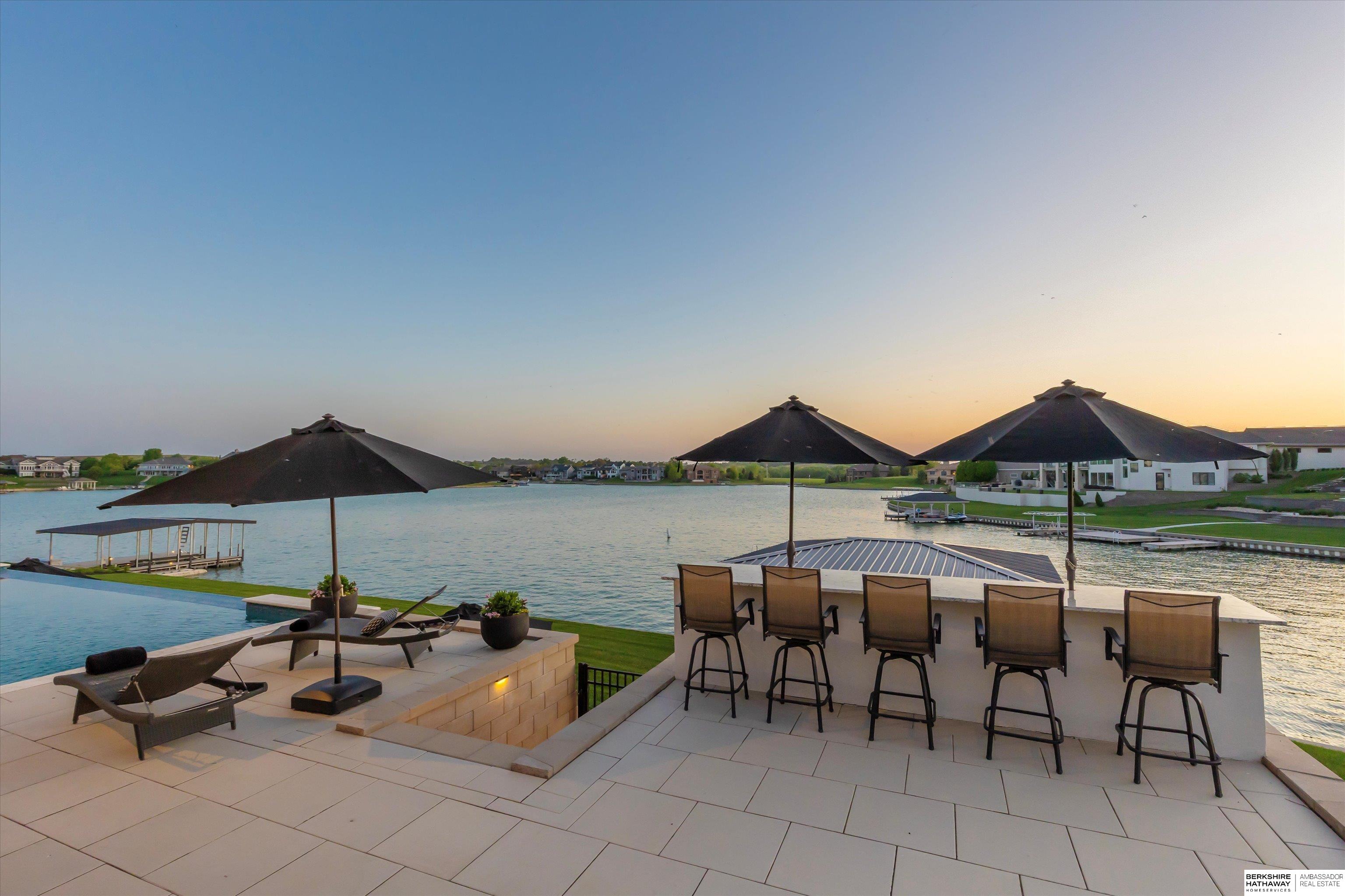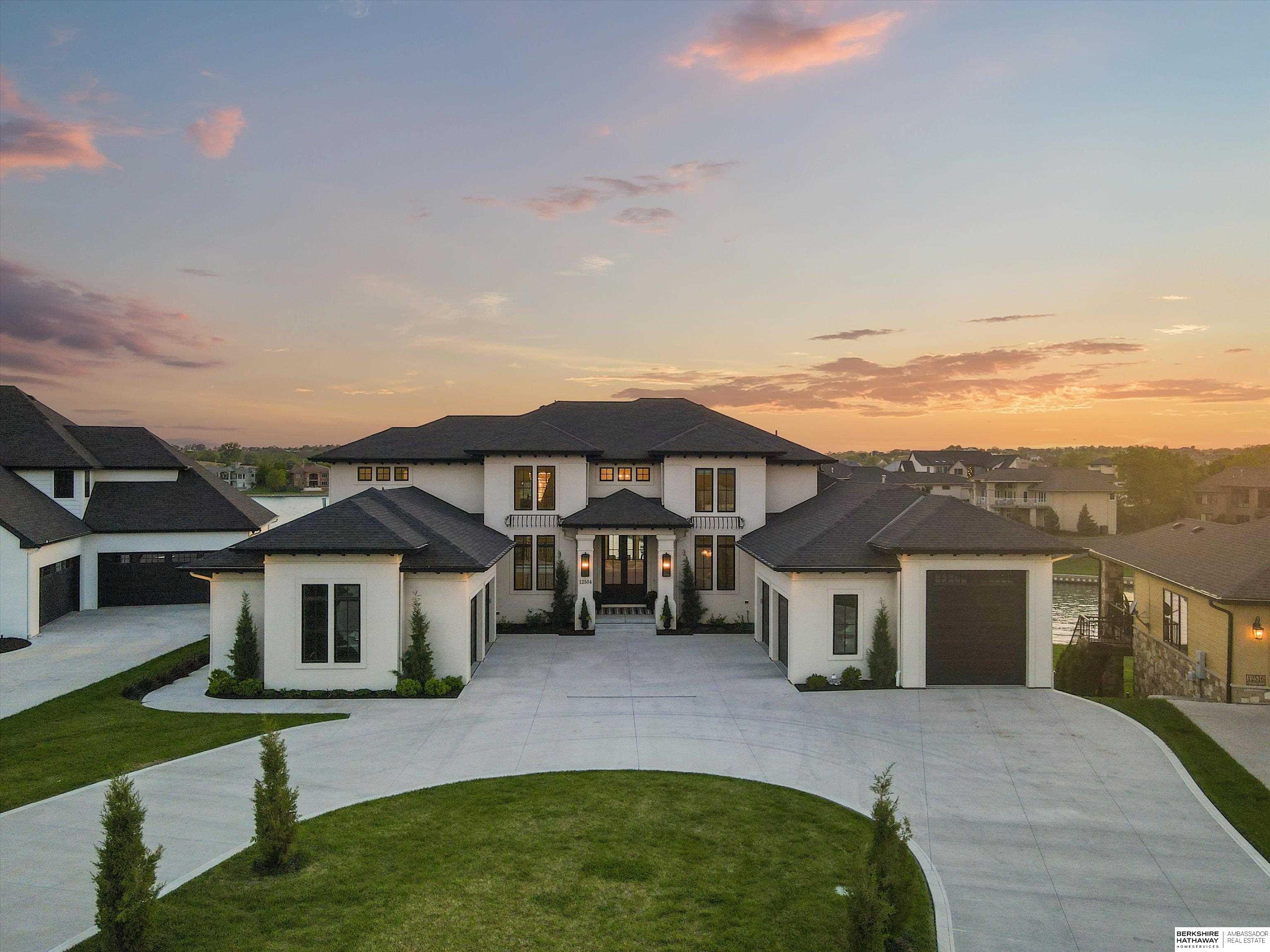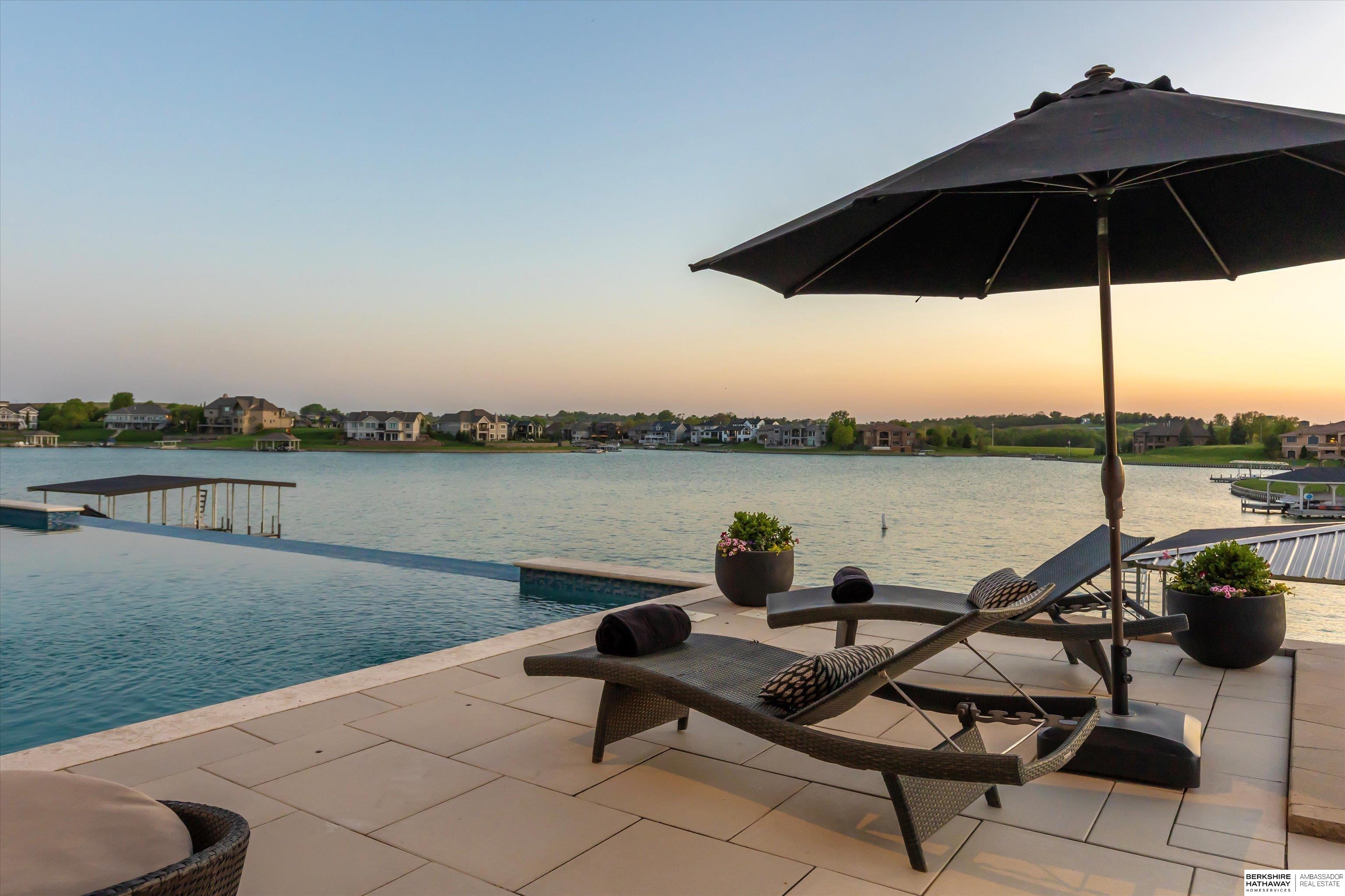 An exceptional custom lake home that delivers an elevated lifestyle where everyday living feels like a retreat. Designed for effortless entertaining & relaxed lake days, the French contemporary 1.5 story walkout features vaulted ceilings, architectural windows, custom millwork & designer finishes. An open functional floorplan with lake views through the great room & gourmet kitchen to dining areas, unique pantry/laundry/private office combo, private office, 2 drop zones, 6+ car split garages with boat storage & dog wash - perfect for lake life. Serene primary suite with spa bath & dream closet. Upstairs, a flexible loft with built in bunks opens to an expansive upper deck, 4 ensuite bedrooms & laundry. Inviting walkout LL perfectly designed for entertaining inside & out - wine room, oversized bar, gaming areas, exercise room, guest suite & lake storage. Outside, enjoy resort style living, infinity edge pool & spa, sunken firepit & main lake views tucked in a no wake zone. Perfection.