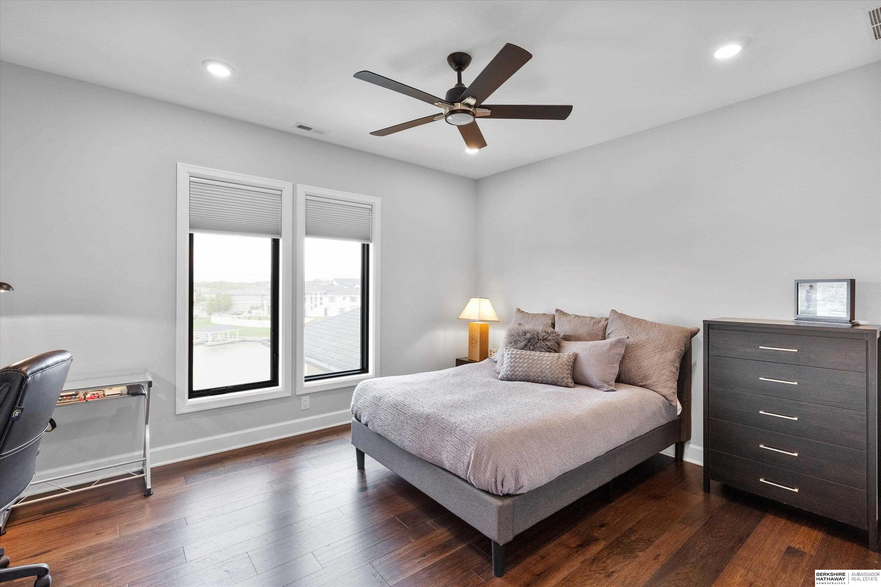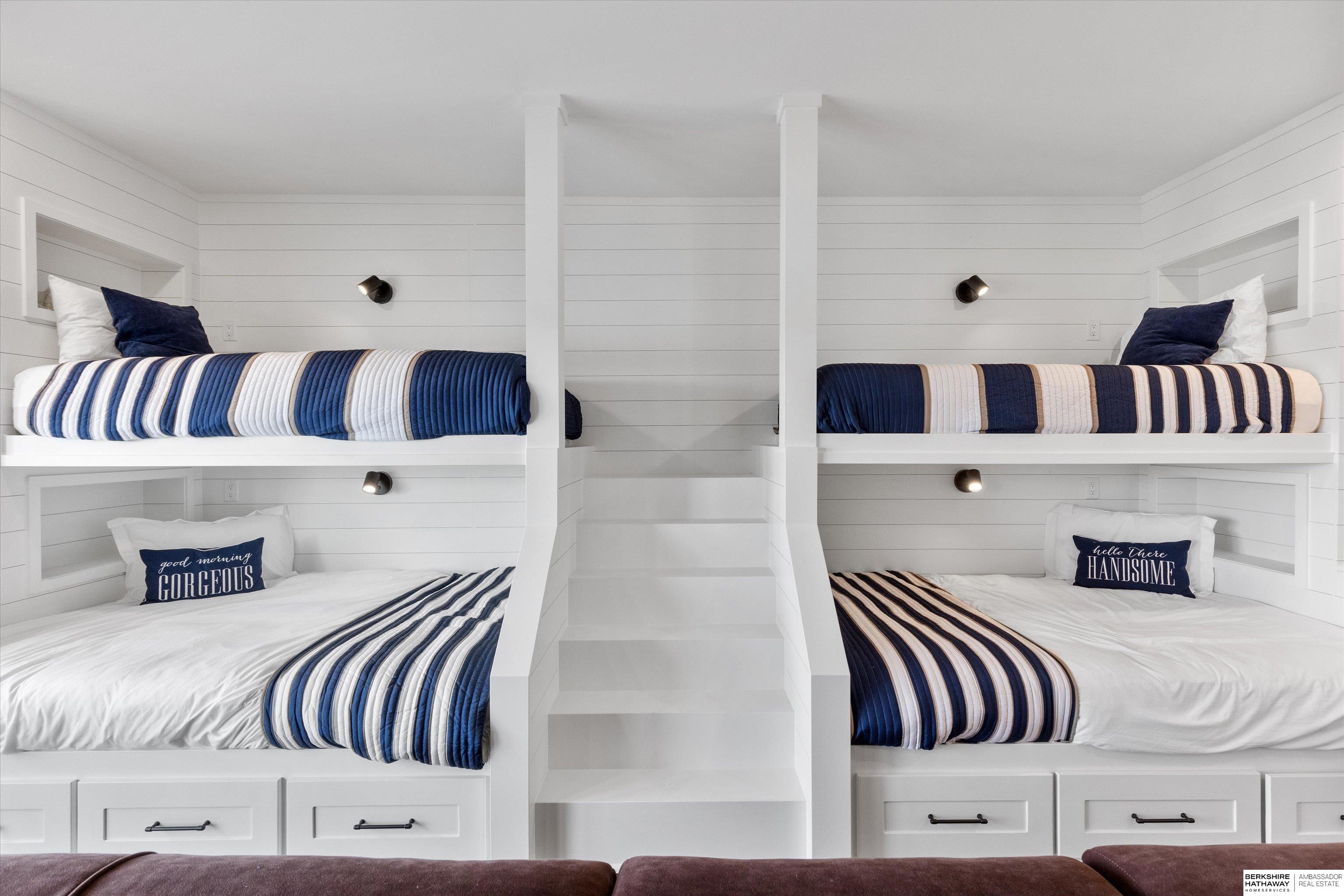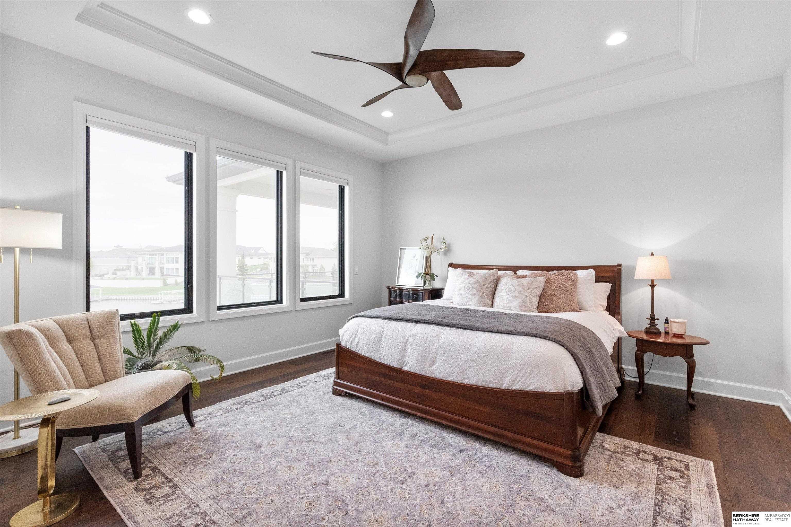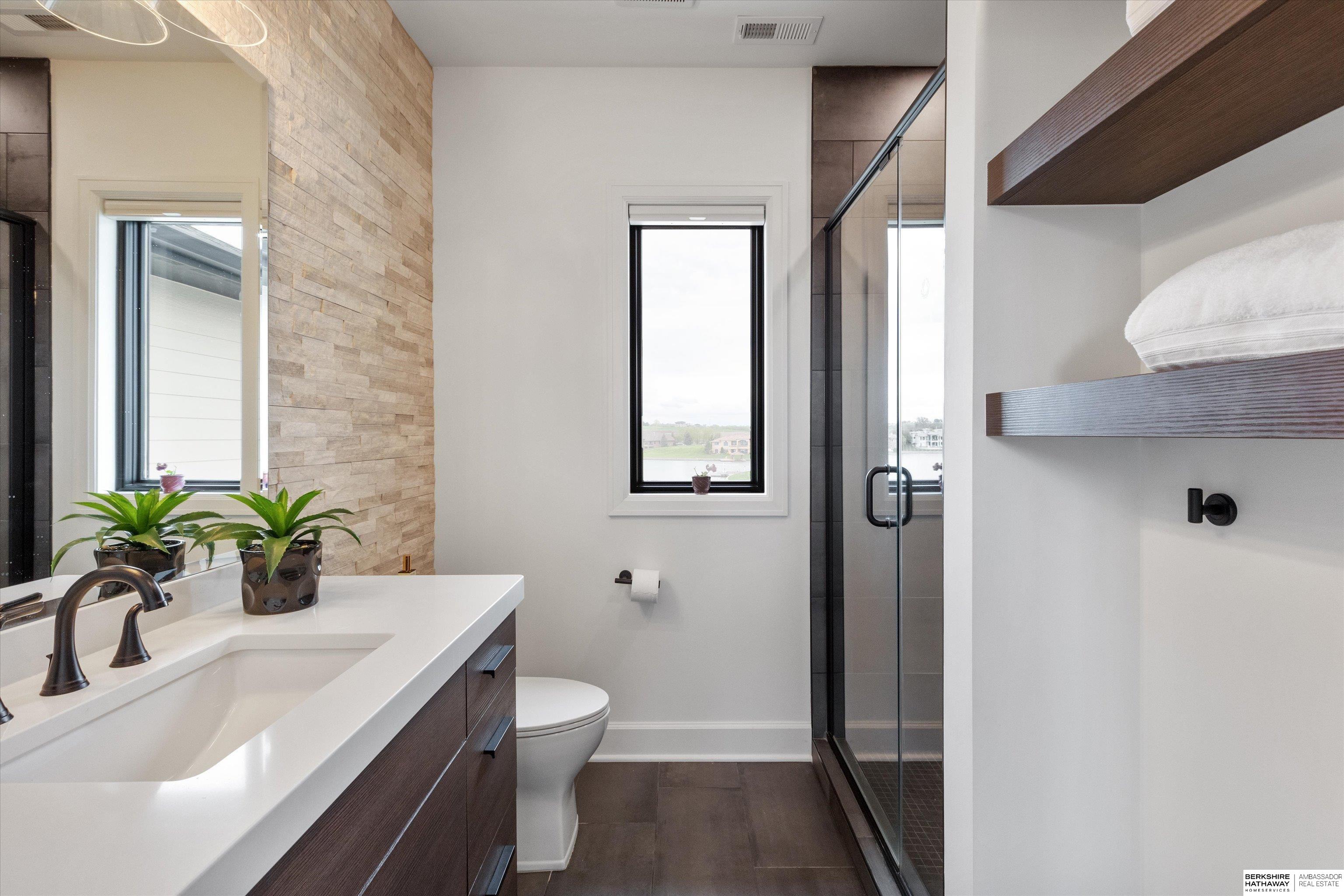 An exceptional custom lake home that delivers an elevated lifestyle where everyday living feels like a retreat. Designed for effortless entertaining & relaxed lake days, the French contemporary 1.5 story walkout features vaulted ceilings, architectural windows, custom millwork & designer finishes. An open functional floorplan with lake views through the great room & gourmet kitchen to dining areas, unique pantry/laundry/private office combo, private office, 2 drop zones, 6+ car split garages with boat storage & dog wash - perfect for lake life. Serene primary suite with spa bath & dream closet. Upstairs, a flexible loft with built in bunks opens to an expansive upper deck, 4 ensuite bedrooms & laundry. Inviting walkout LL perfectly designed for entertaining inside & out - wine room, oversized bar, gaming areas, exercise room, guest suite & lake storage. Outside, enjoy resort style living, infinity edge pool & spa, sunken firepit & main lake views tucked in a no wake zone. Perfection.
