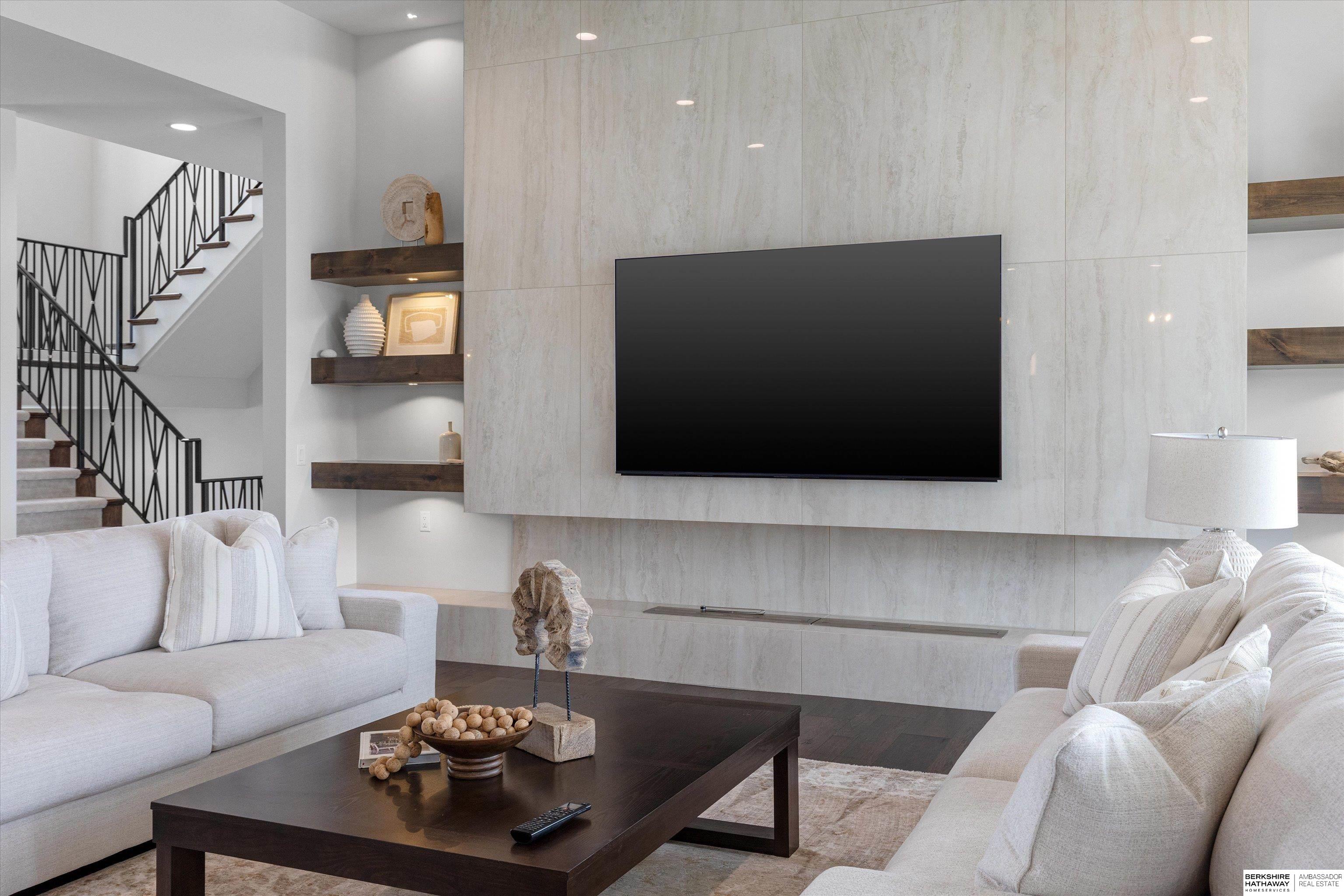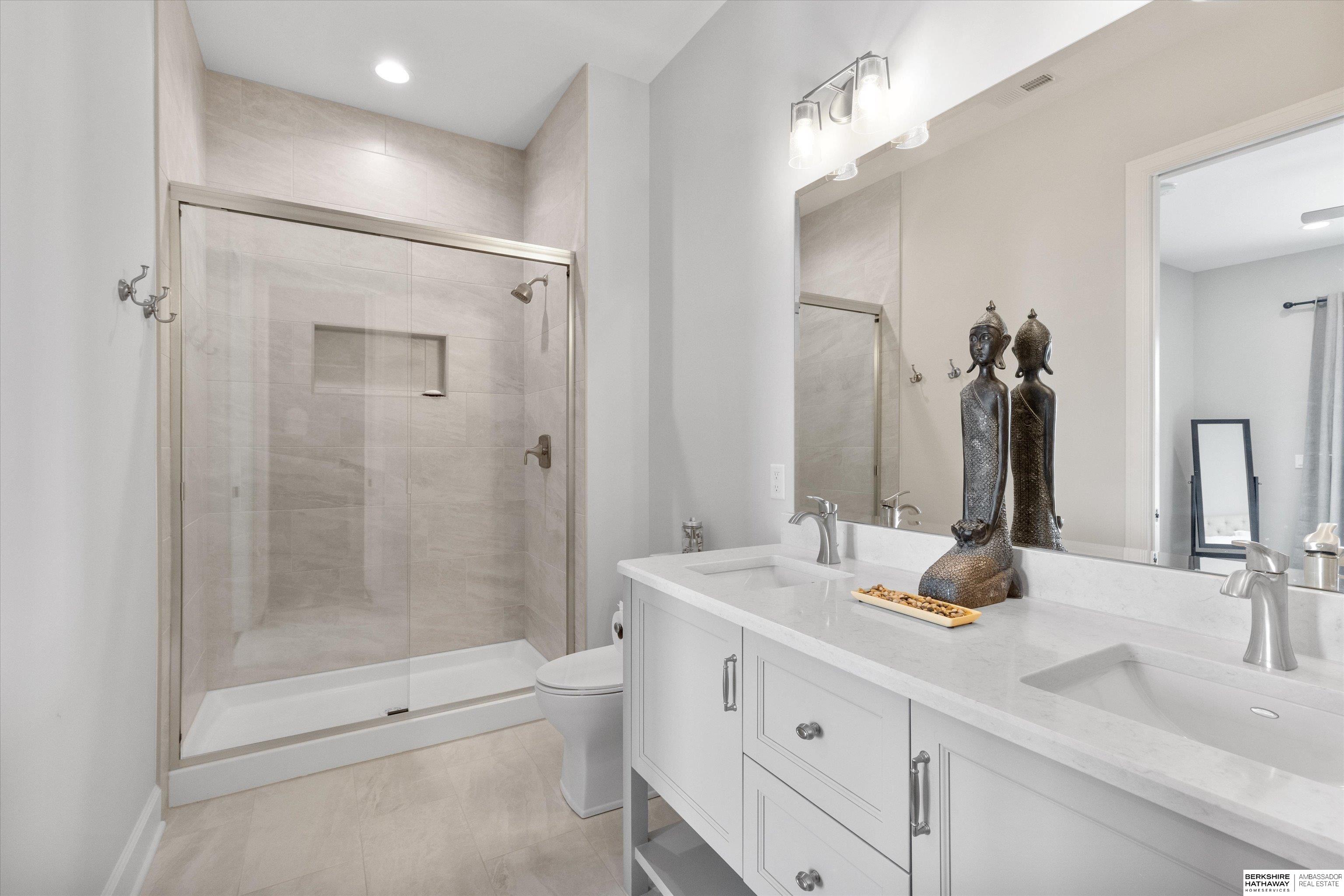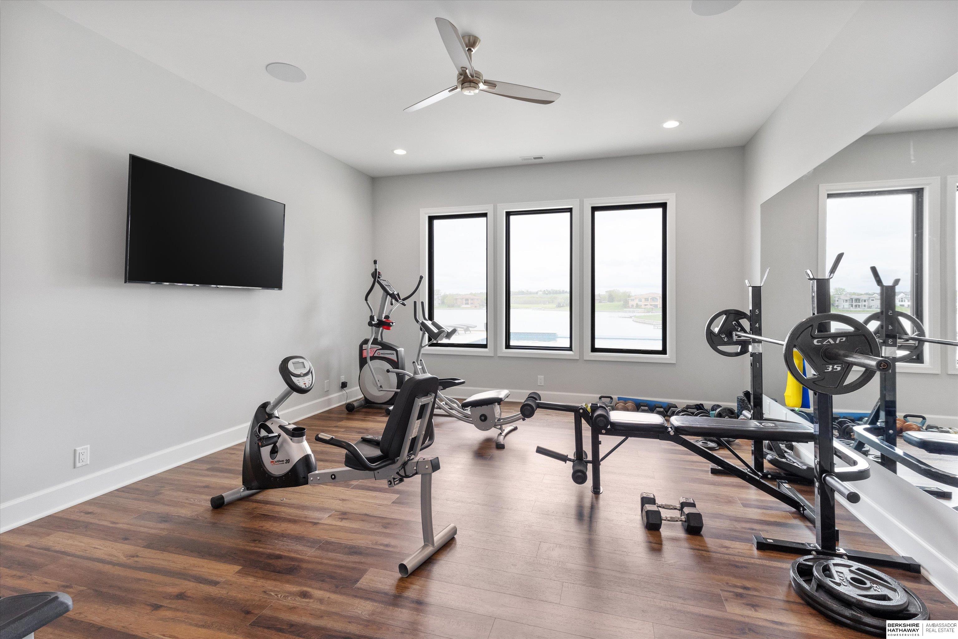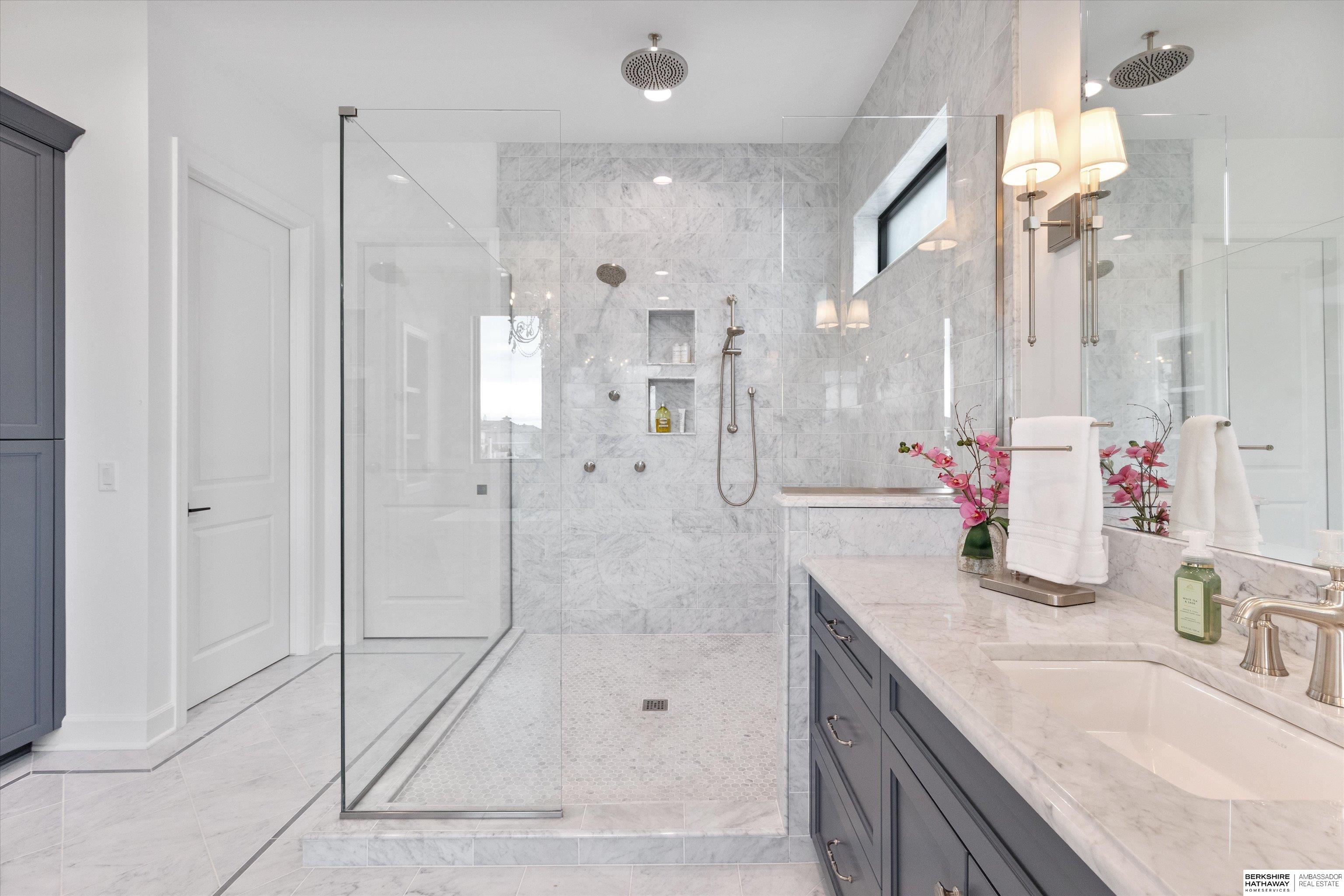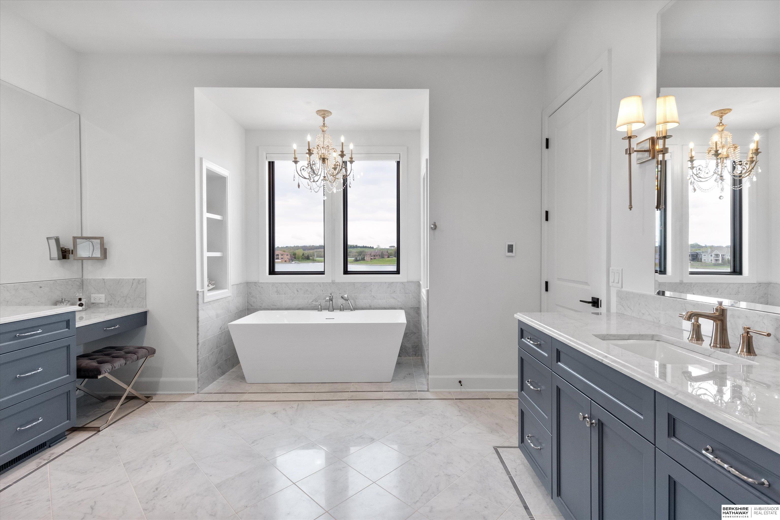 An exceptional custom lake home that delivers an elevated lifestyle where everyday living feels like a retreat. Designed for effortless entertaining & relaxed lake days, the French contemporary 1.5 story walkout features vaulted ceilings, architectural windows, custom millwork & designer finishes. An open functional floorplan with lake views through the great room & gourmet kitchen to dining areas, unique pantry/laundry/private office combo, private office, 2 drop zones, 6+ car split garages with boat storage & dog wash - perfect for lake life. Serene primary suite with spa bath & dream closet. Upstairs, a flexible loft with built in bunks opens to an expansive upper deck, 4 ensuite bedrooms & laundry. Inviting walkout LL perfectly designed for entertaining inside & out - wine room, oversized bar, gaming areas, exercise room, guest suite & lake storage. Outside, enjoy resort style living, infinity edge pool & spa, sunken firepit & main lake views tucked in a no wake zone. Perfection.