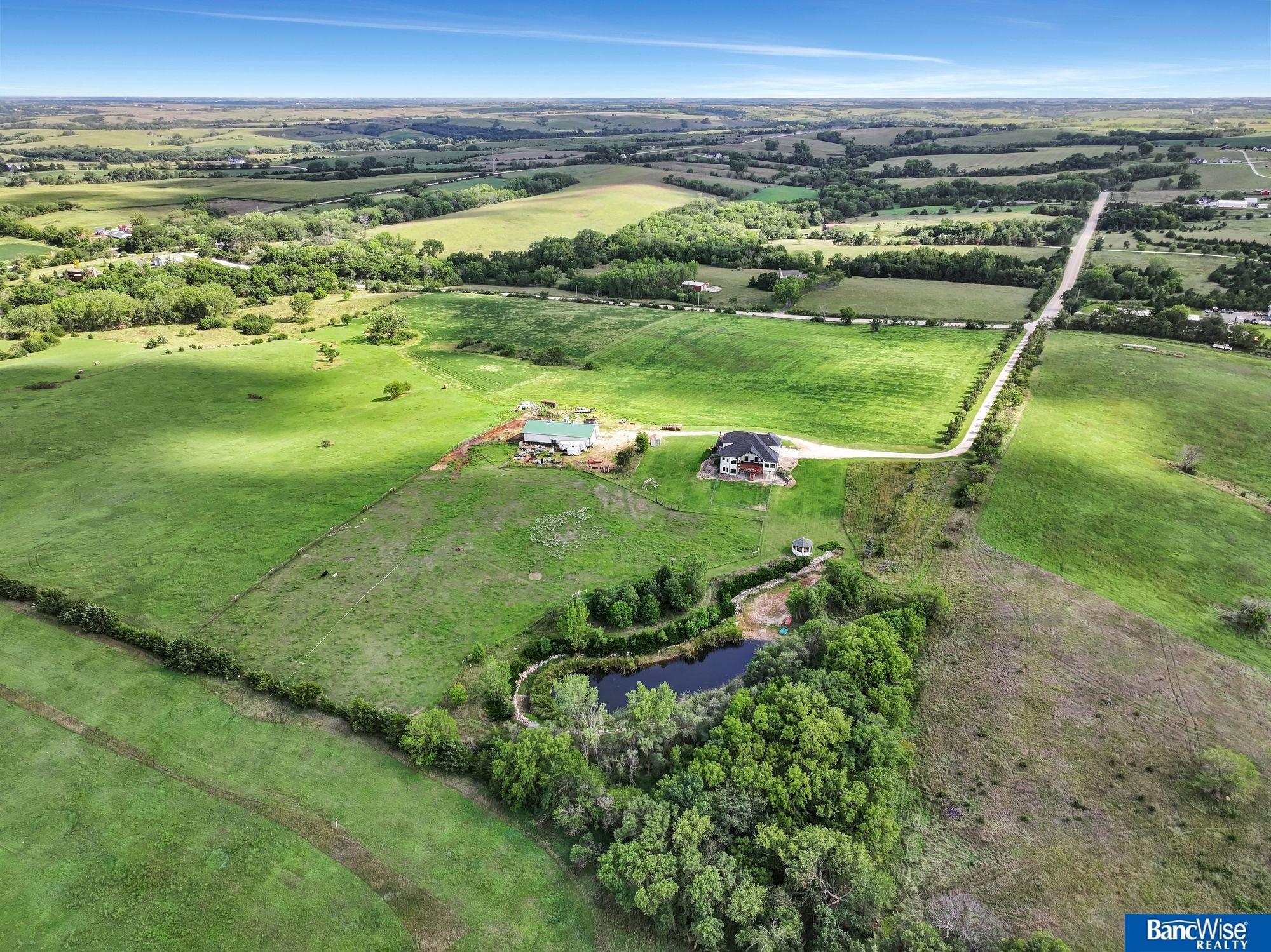 Escape to your private retreat on this stunning 20-acre acreage! This 4-bedroom home offers nearly 6,000 sq. ft. of quality finish across three levels, with vaulted ceilings, walls of windows, fresh paint, and stylish updates throughout. Efficiency meets comfort with geothermal heating & cooling, reverse osmosis water, a newer roof, and a brand-new well pump. Entertain indoors or out with open spaces designed for gathering and relaxing. Outdoors, enjoy a peaceful pond with a waterfall, income producing pastures are already fenced for livestock. A second well serves the pond, while the 42x80 outbuilding provides endless versatility with half bath, cabinets, concrete floor, electrical, insulation, and lofted space above. Quiet, private, and beautiful—this property offers the perfect blend of luxury, efficiency, and natural beauty! Pictures don't do this amazing property justice, come see it for yourself today!