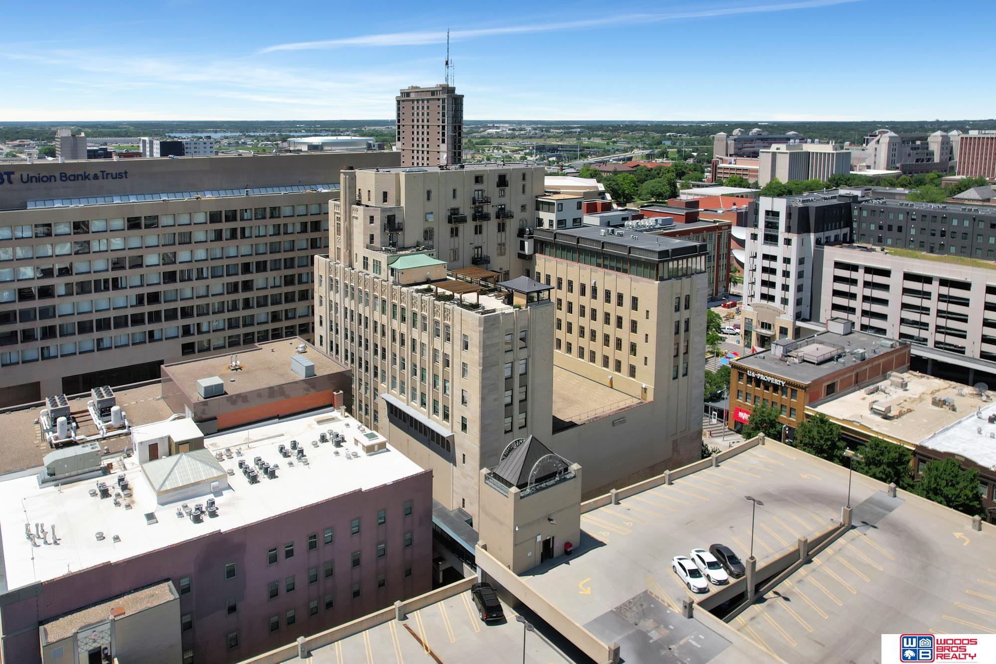 Excellent opportunity to purchase a retreat or home at sought after University Towers in the heart of downtown Lincoln. You'll be a short walk from UNL, The Lied Center, and Historic Haymarket perfectly situated to take in the arts, dining, and the sports scene! This 2 BR 2 BA condo has been updated with new carpet, window treatments, lighting and freshly painted walls. The bedrooms are nice sized and each has an en suite bath. Convenient in unit laundry, and generous closet space. University Towers offers a lovely, peaceful rooftop terrace with grills and amazing views of the Lincoln skyline. Convenient parking in attached garage with skywalk access, community rooms, and locked individual storage. HOA dues cover utilities except electric bill, parking space, common area maintenance.