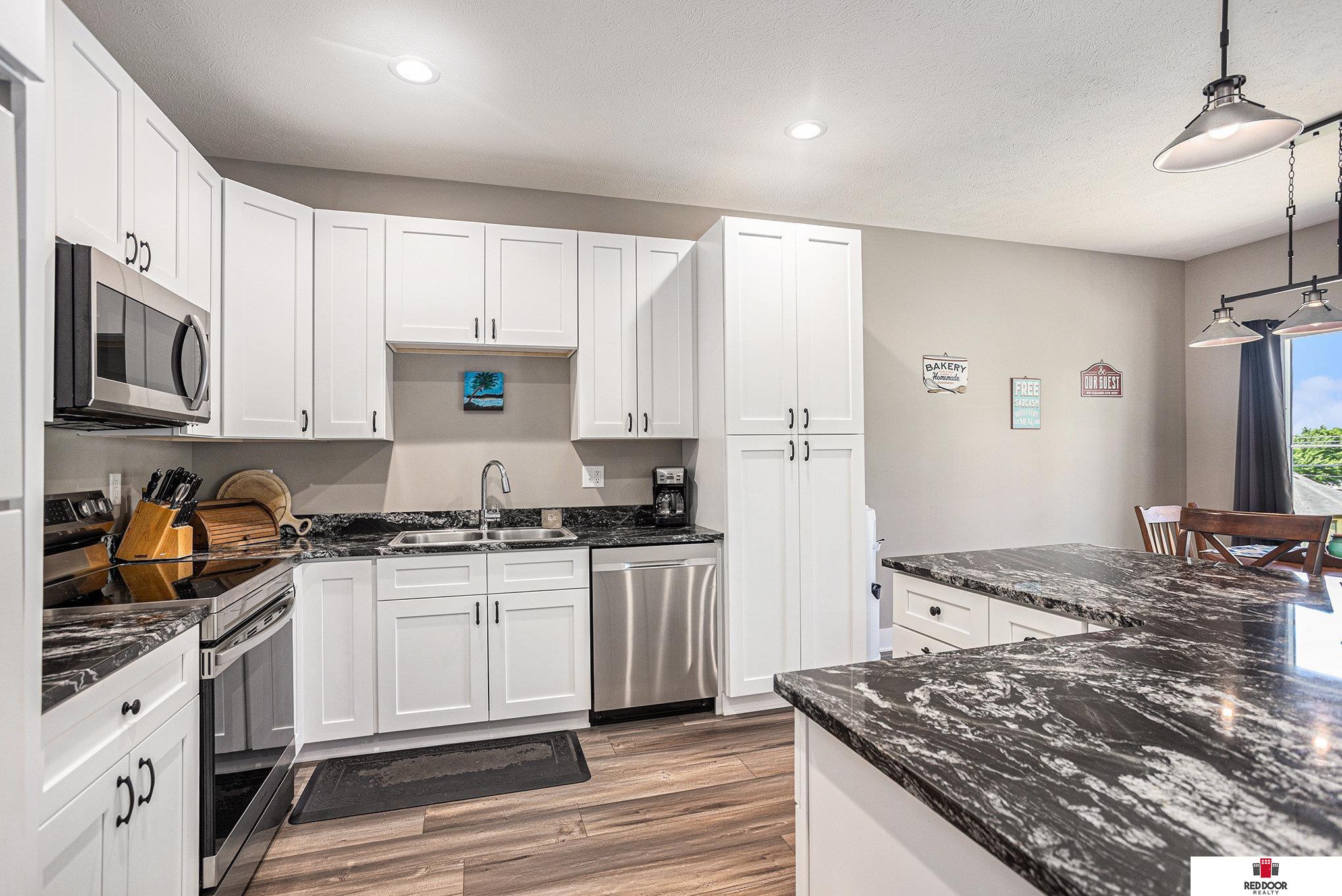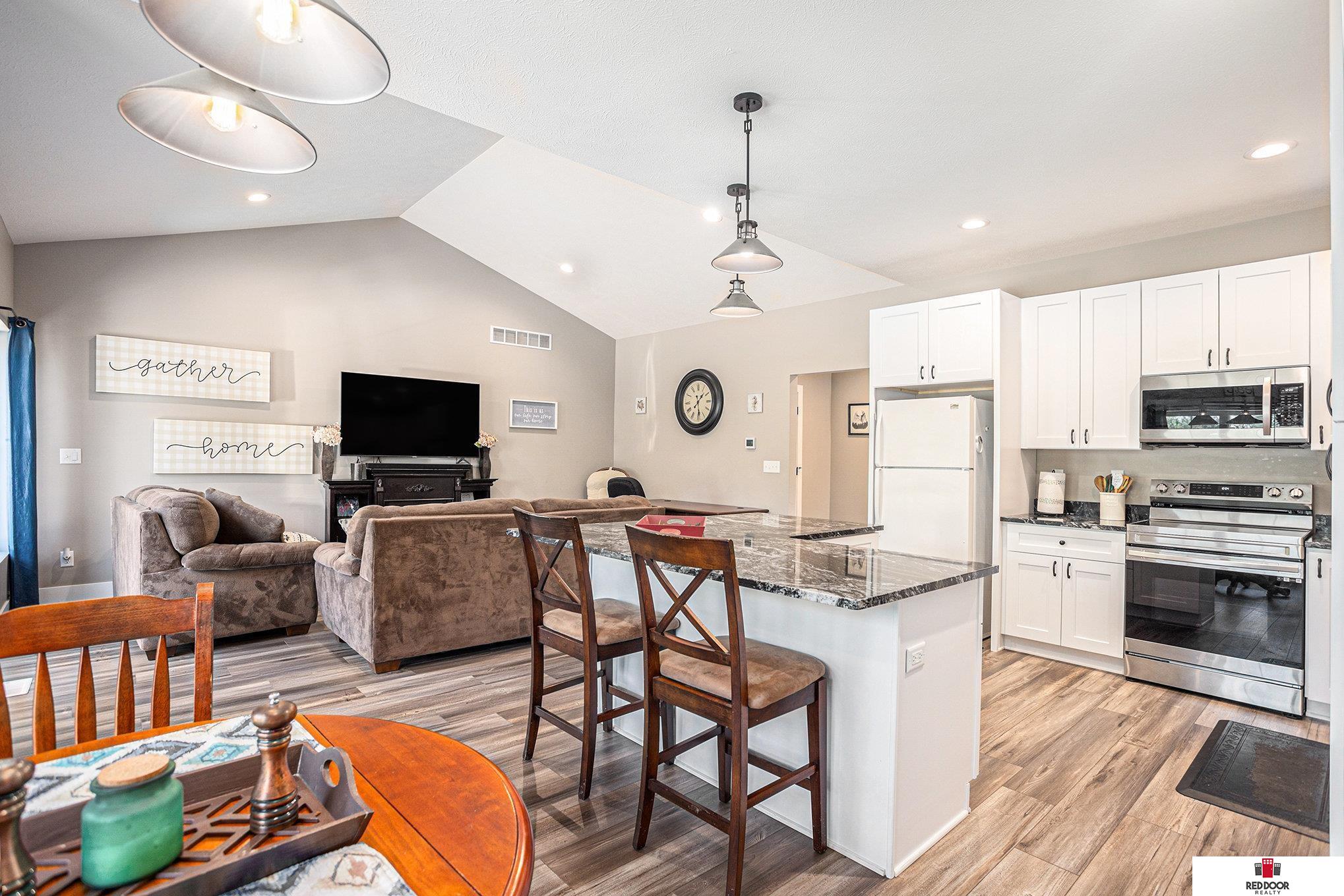 **3 BEDS, 3 BATHS, 2 CAR ATTACHED GARAGE, GOOD-AS-NEW 2022 BUILT RANCH!** Don't miss this opportunity to own this darling, good-as-new, ranch home on a corner lot in the heart of Beatrice! Step through the front door into the dedicated entry and on into the spacious open concept living room, dining room, and kitchen with soaring vaulted celings, beautiful LVT flooring, granite countertops, white cabinetry, and plenty of natural light. The primary en suite boasts dual sinks, shower with glass doors, and large walk-in closet. Main floor laundry for your convenience, a second bedroom, and another full hall-bath round out the main floor. The basement is partially finished (won't take much to finish it off) & accomodates a 3rd bedroom, yet another full bathroom (sink plumbed but not installed), a family/rec room, and additional storage. Roof features class-3 impact resistant shingles - ask your insurance agent about a discount and come to see this gem for yourself!