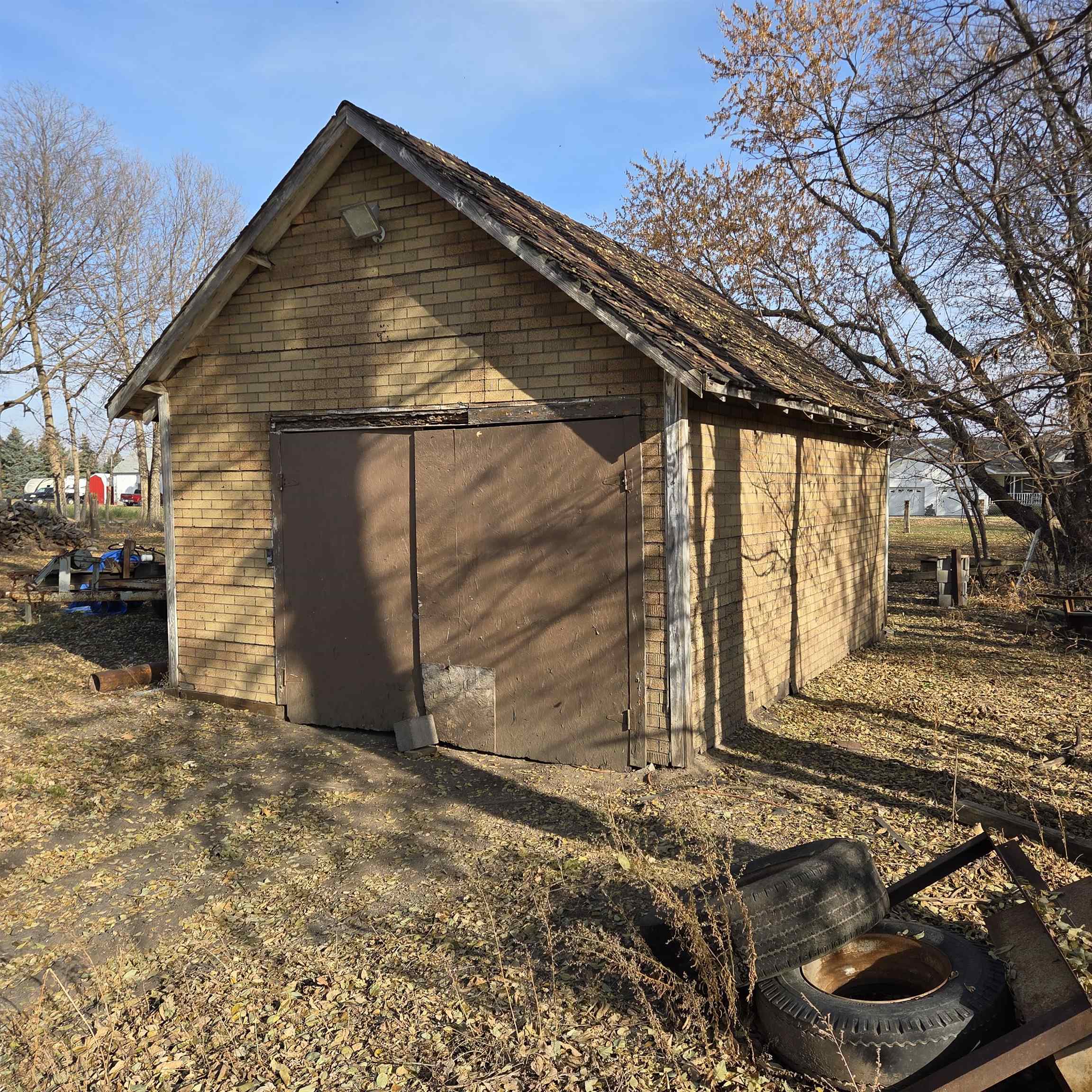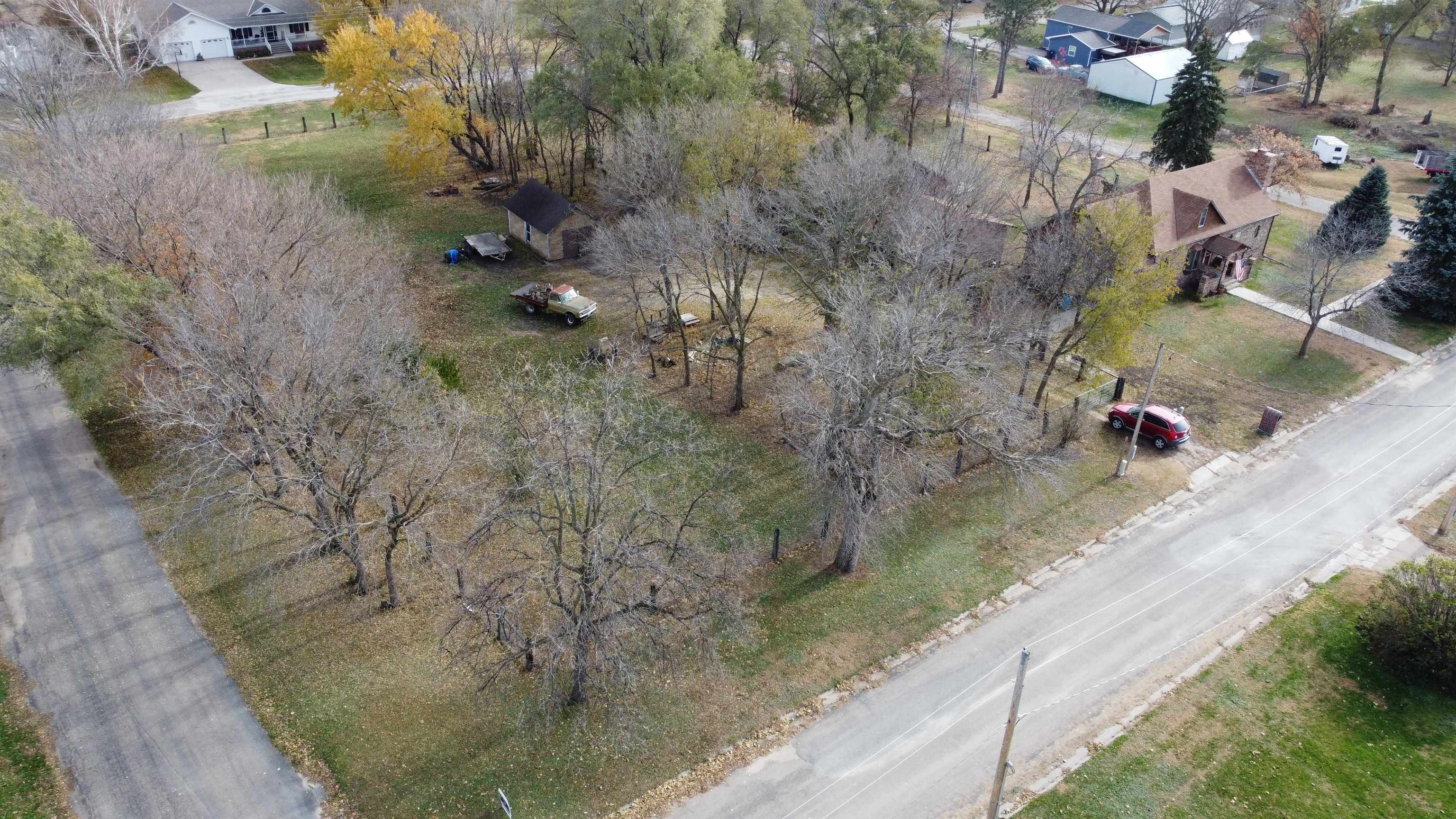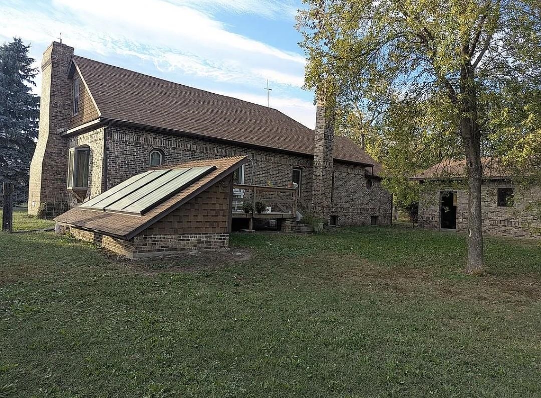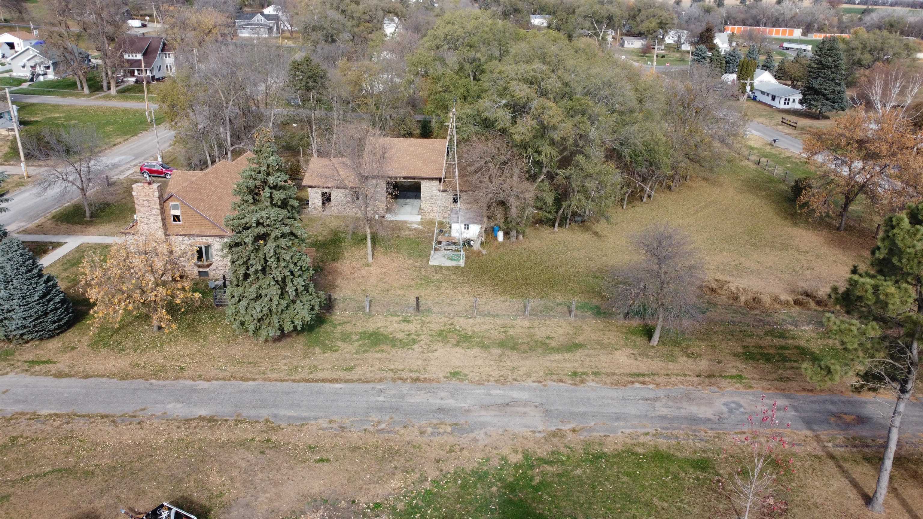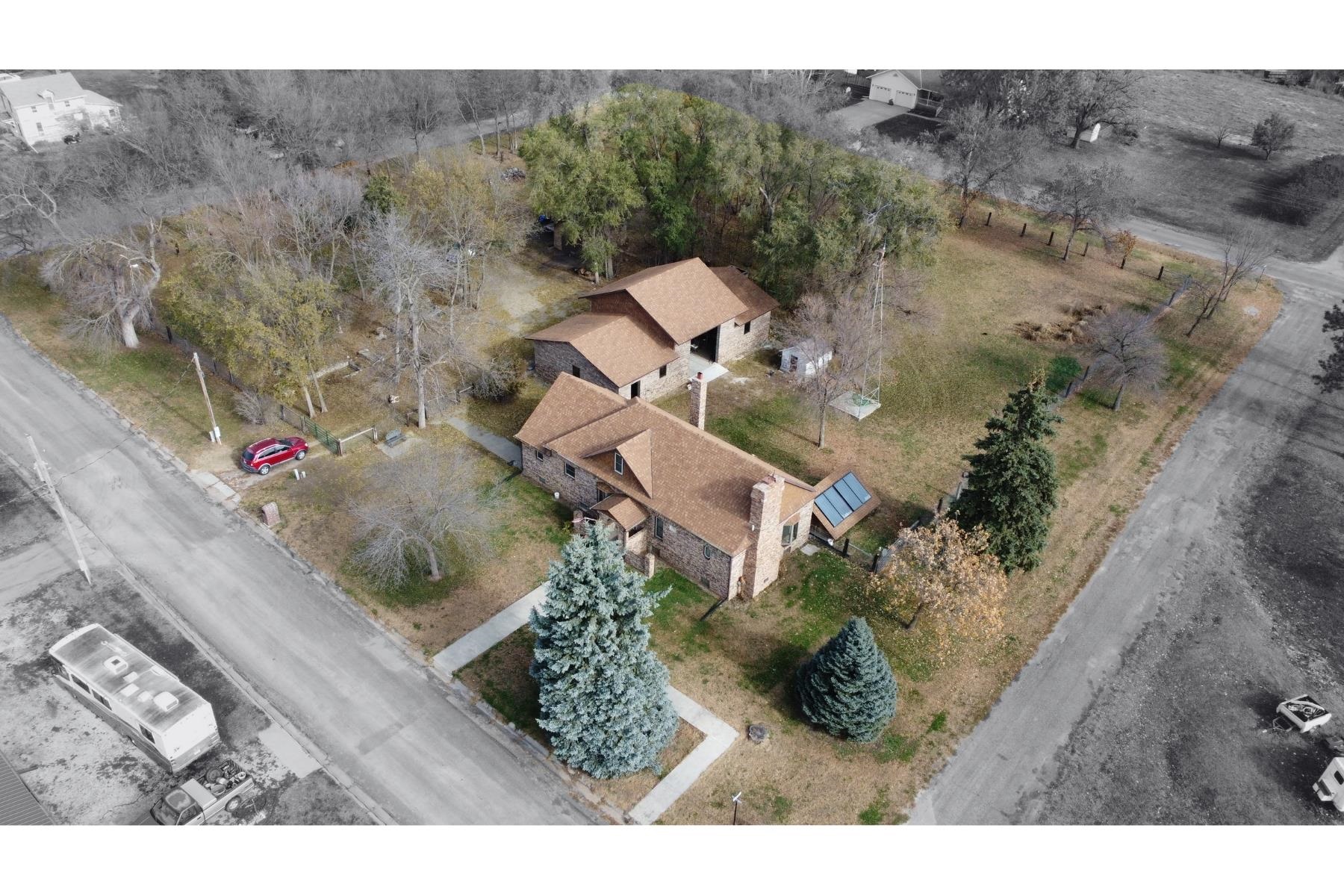 Own an Acreage in Town! Own 1.3 Acres and this solid brick 2 bed 2 bath home with detached 30' x 60' all brick garage. Updated shingles and heating system. Features electric (solar backup power) and wood heat with a wood fireplace on the main floor and a bonus wood burning furnace in the basement. Main floor bathroom has a jacuzzi tub. The 30 x60 garage features 3-stalls with 1 drive-through style garage (garage doors not yet installed) with space for vehicles, storage, or a workshop. The entire CITY BLOCK lot is completely fenced in! Current zoning permits a second home may be built on the property. A rare chance to own an entire block in town with room to expand or build. Disclosure: Images have been digitally decluttered for marketing purposes.